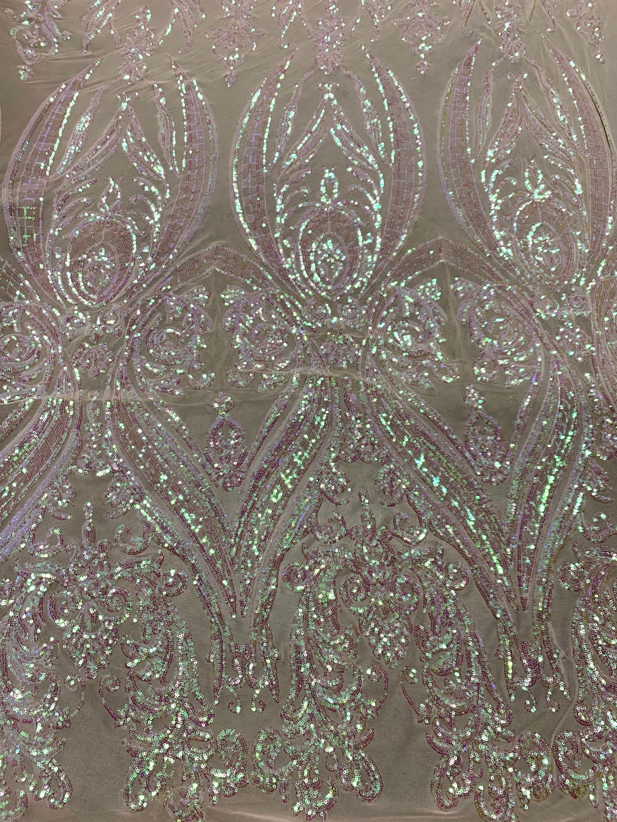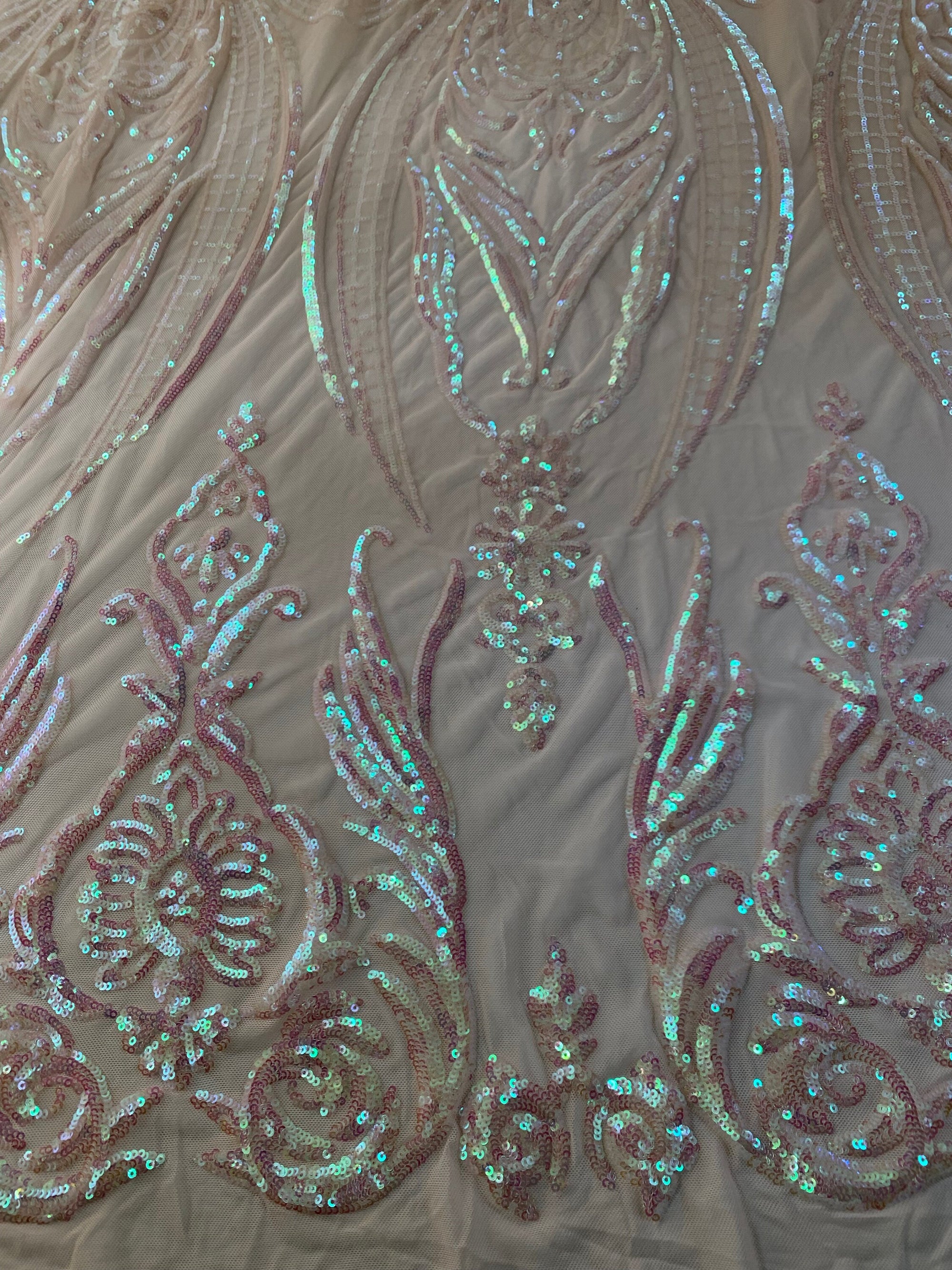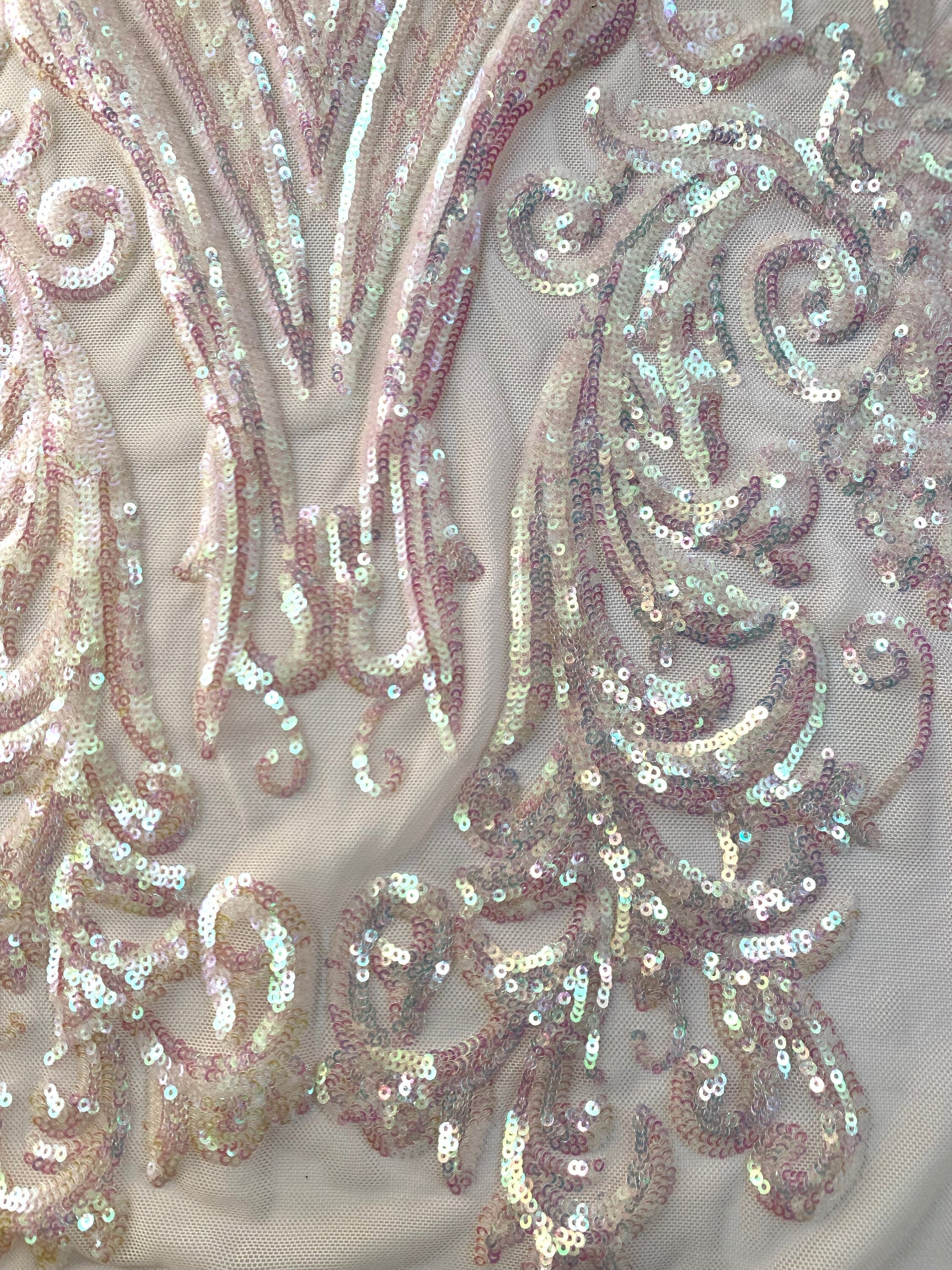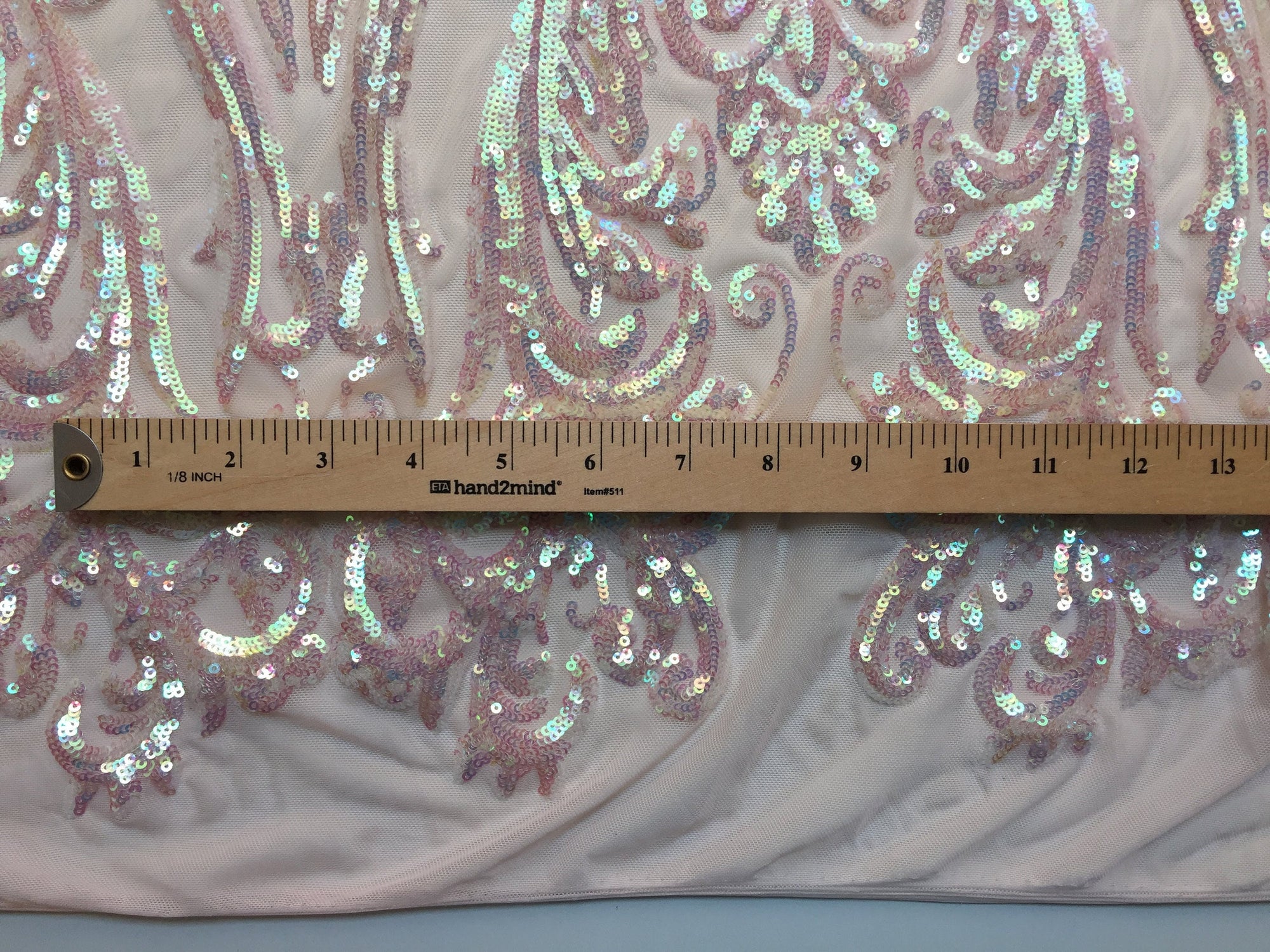 Alaina BLUSH PINK IRIDESCENT Curlicue Sequins on Mesh Lace Fabric by the Yard - 10018