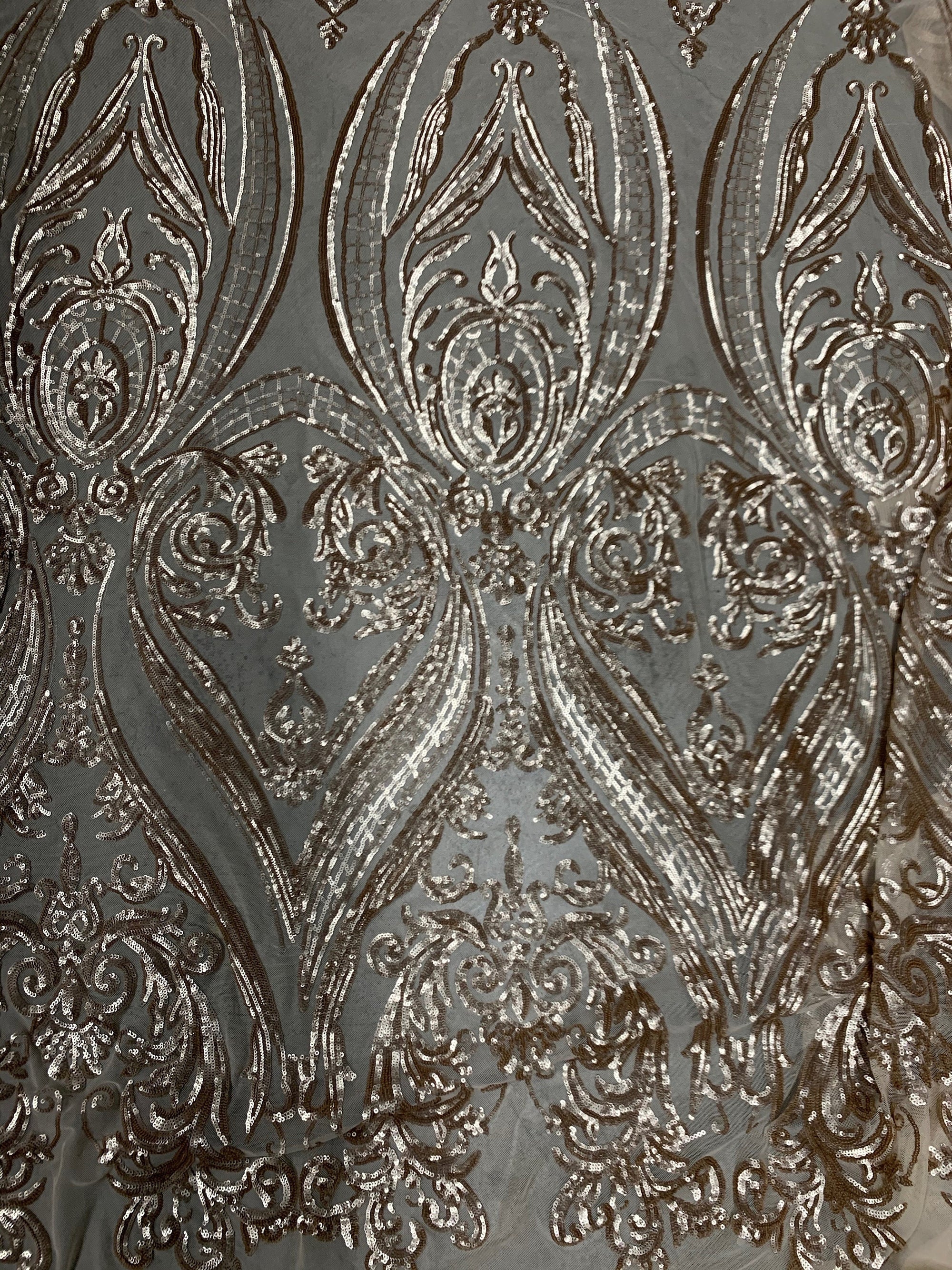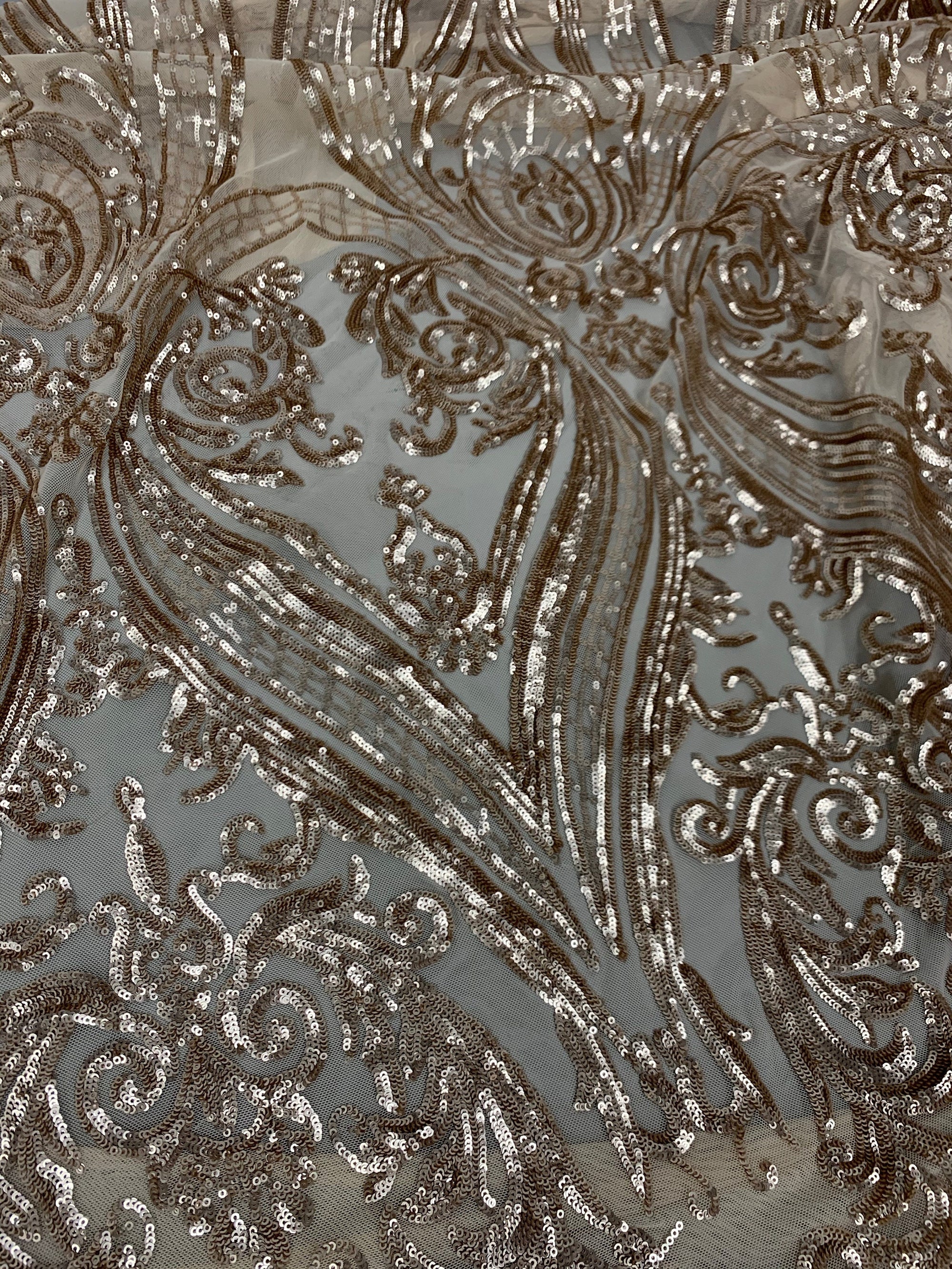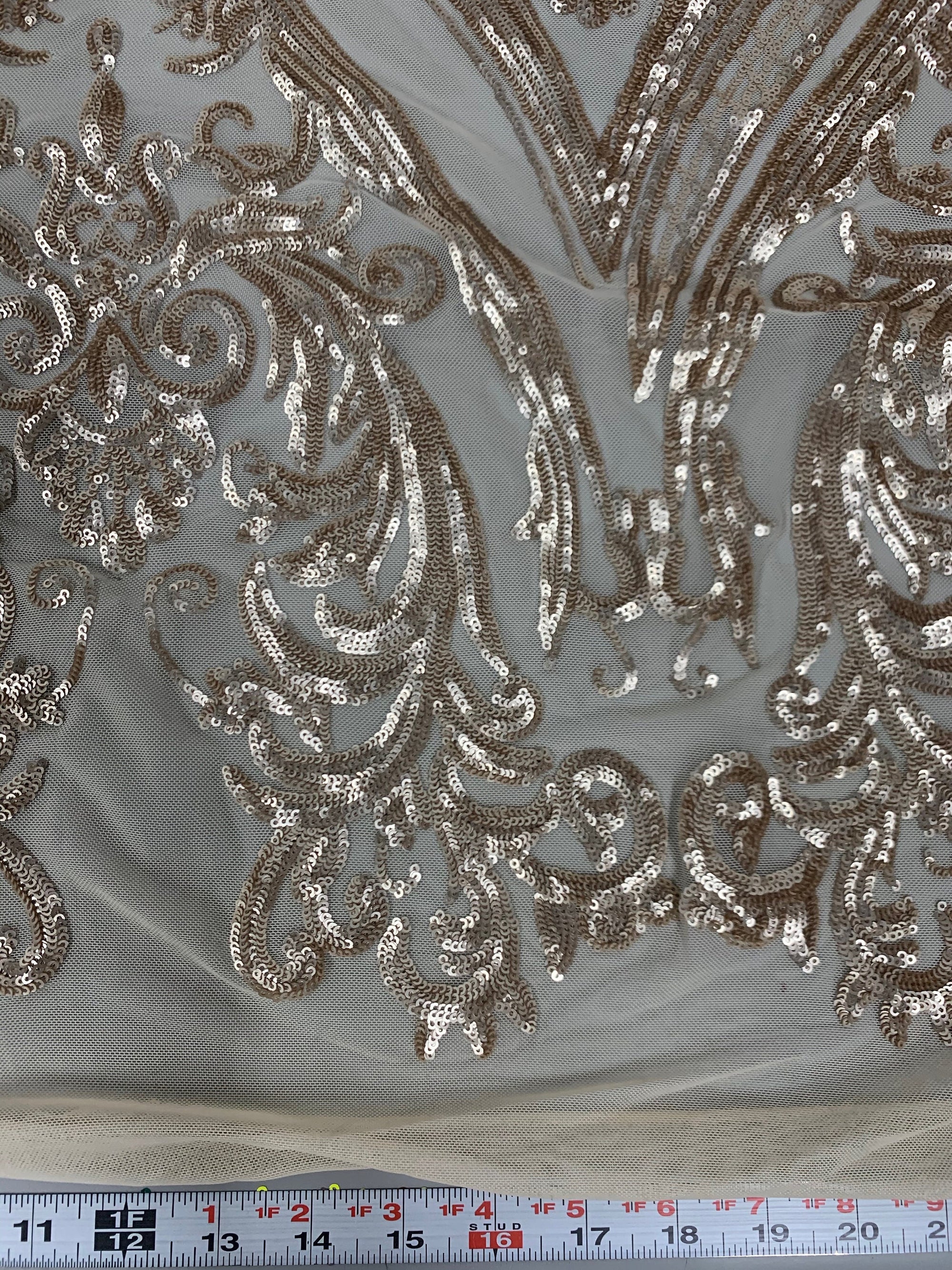 Alaina CHAMPAGNE Curlicue Sequins on Mesh Lace Fabric by the Yard - 10018