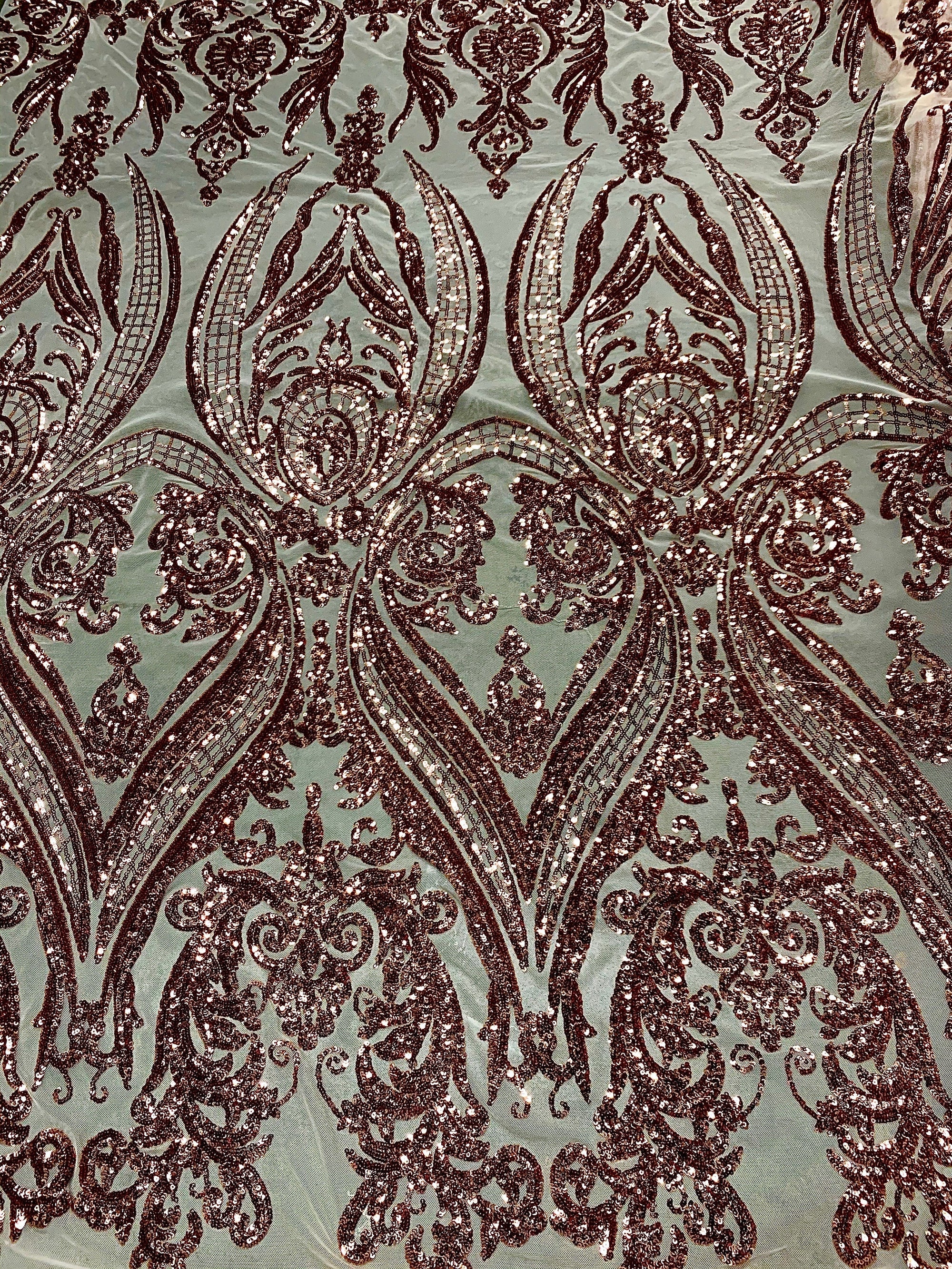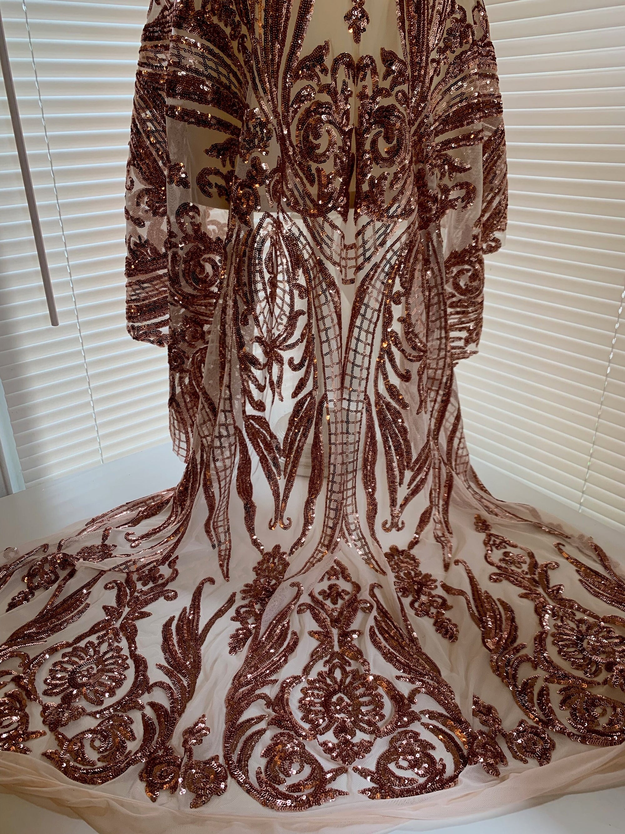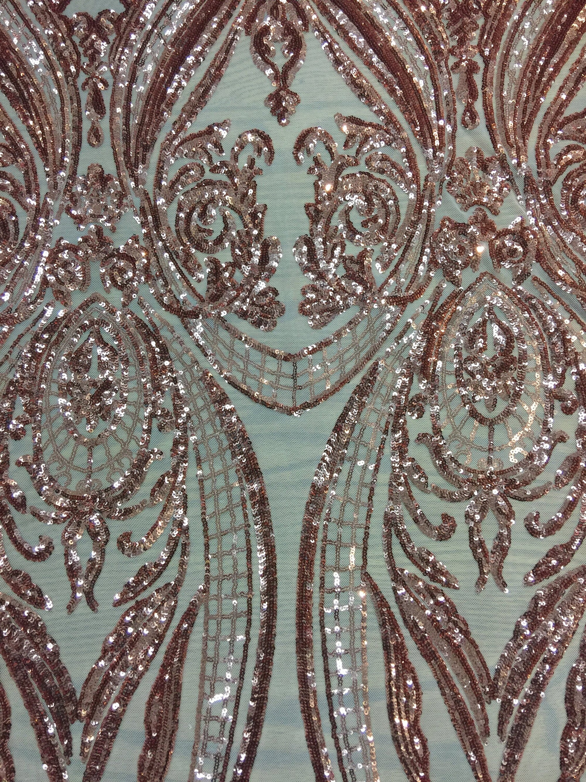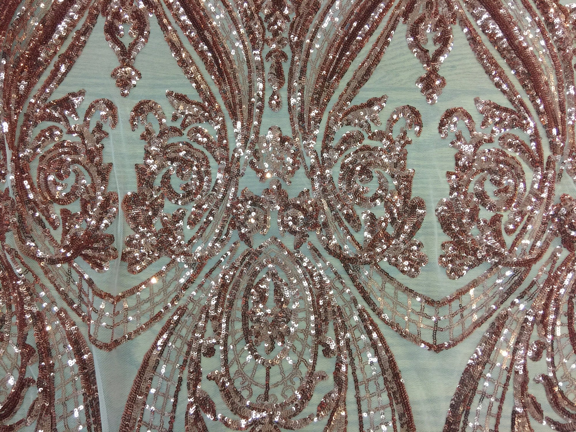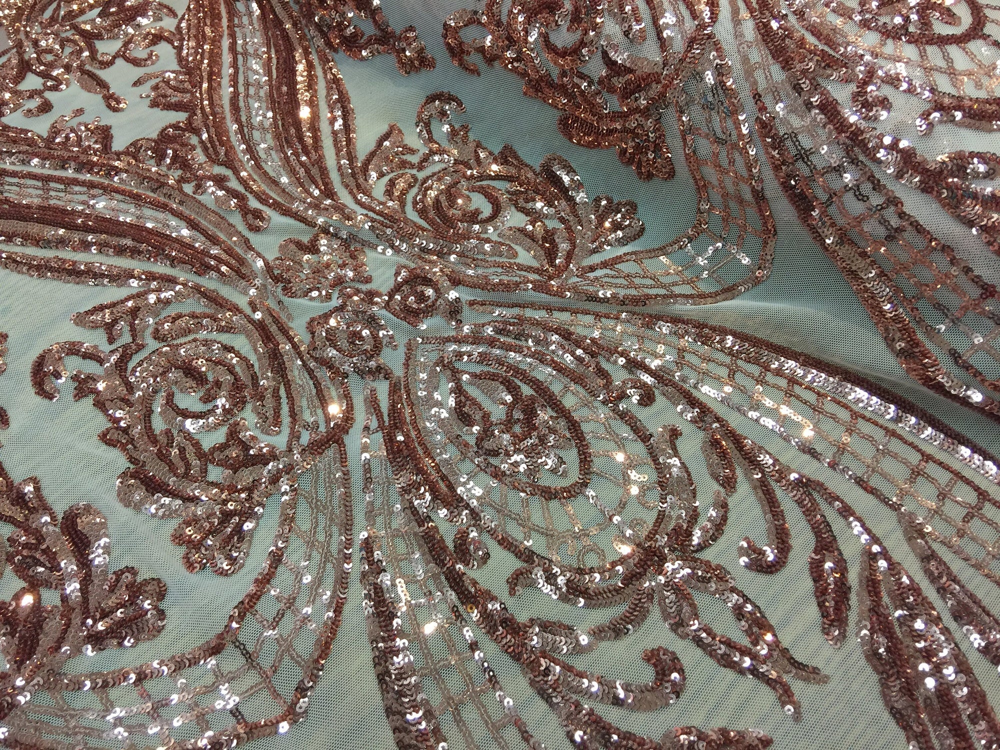 Alaina COPPER Curlicue Sequins on Mesh Lace Fabric by the Yard - 10018