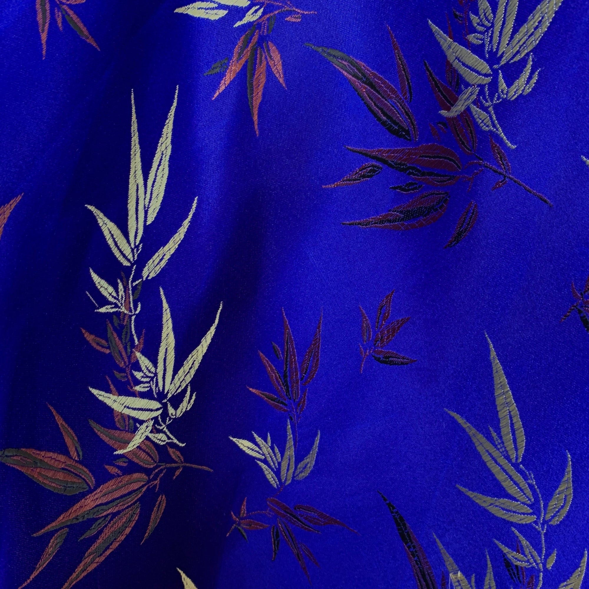Alondra ROYAL BLUE Leaves Brocade Chinese Satin Fabric by the Yard - 10095