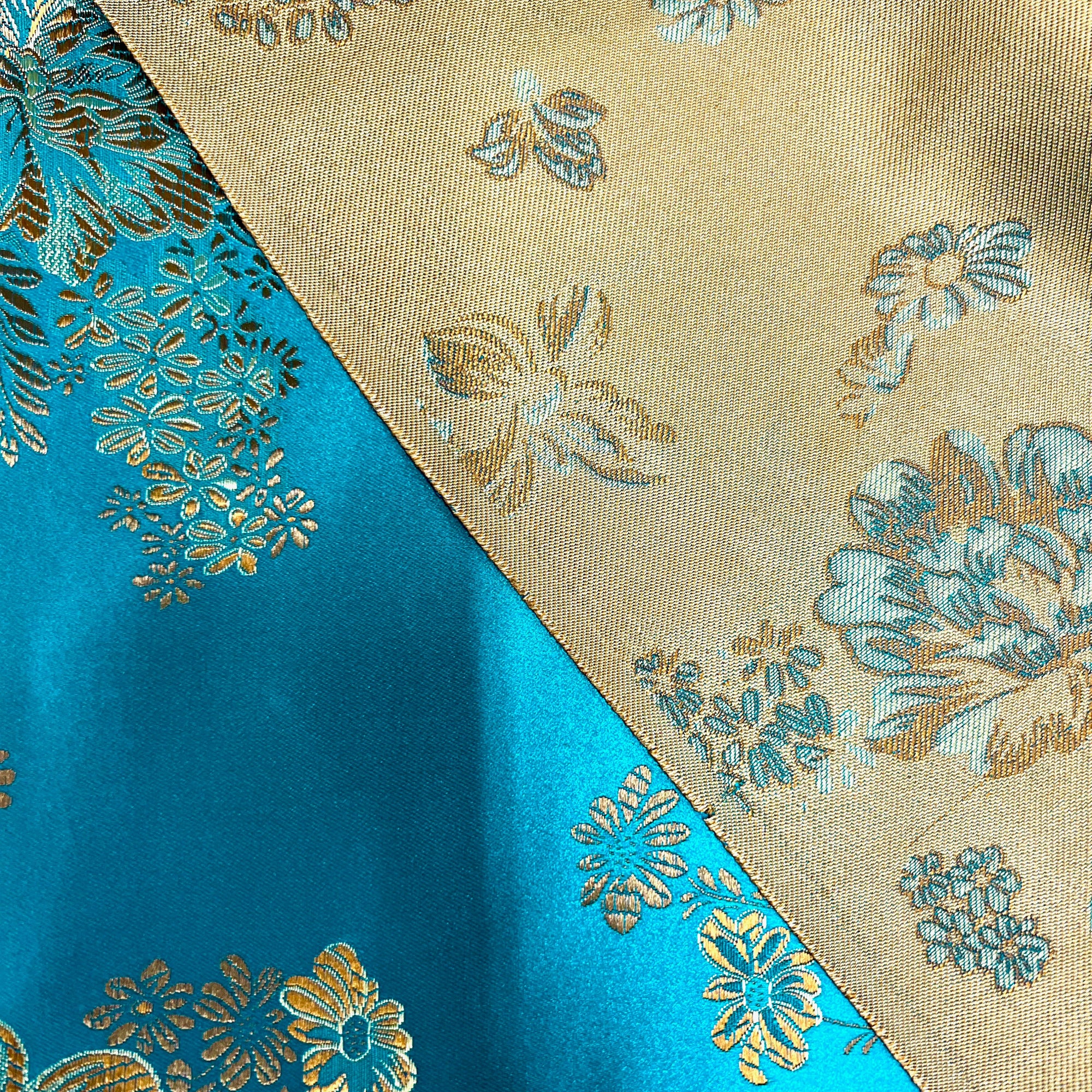 Anais TURQUOISE Floral Brocade Chinese Satin Fabric for Cheongsam/Qipao, Apparel, Costumes, Upholstery, Bags, Crafts - 10220