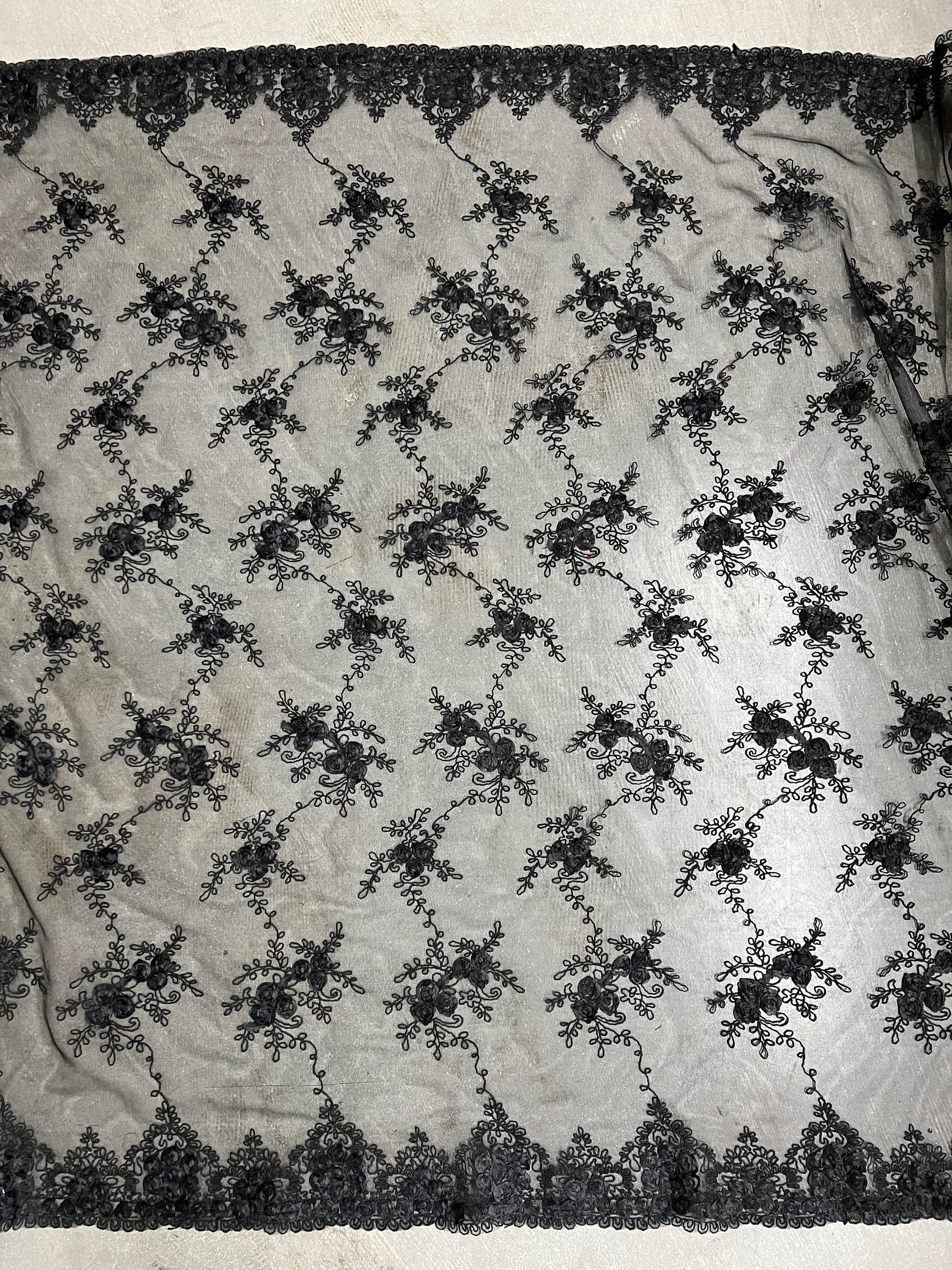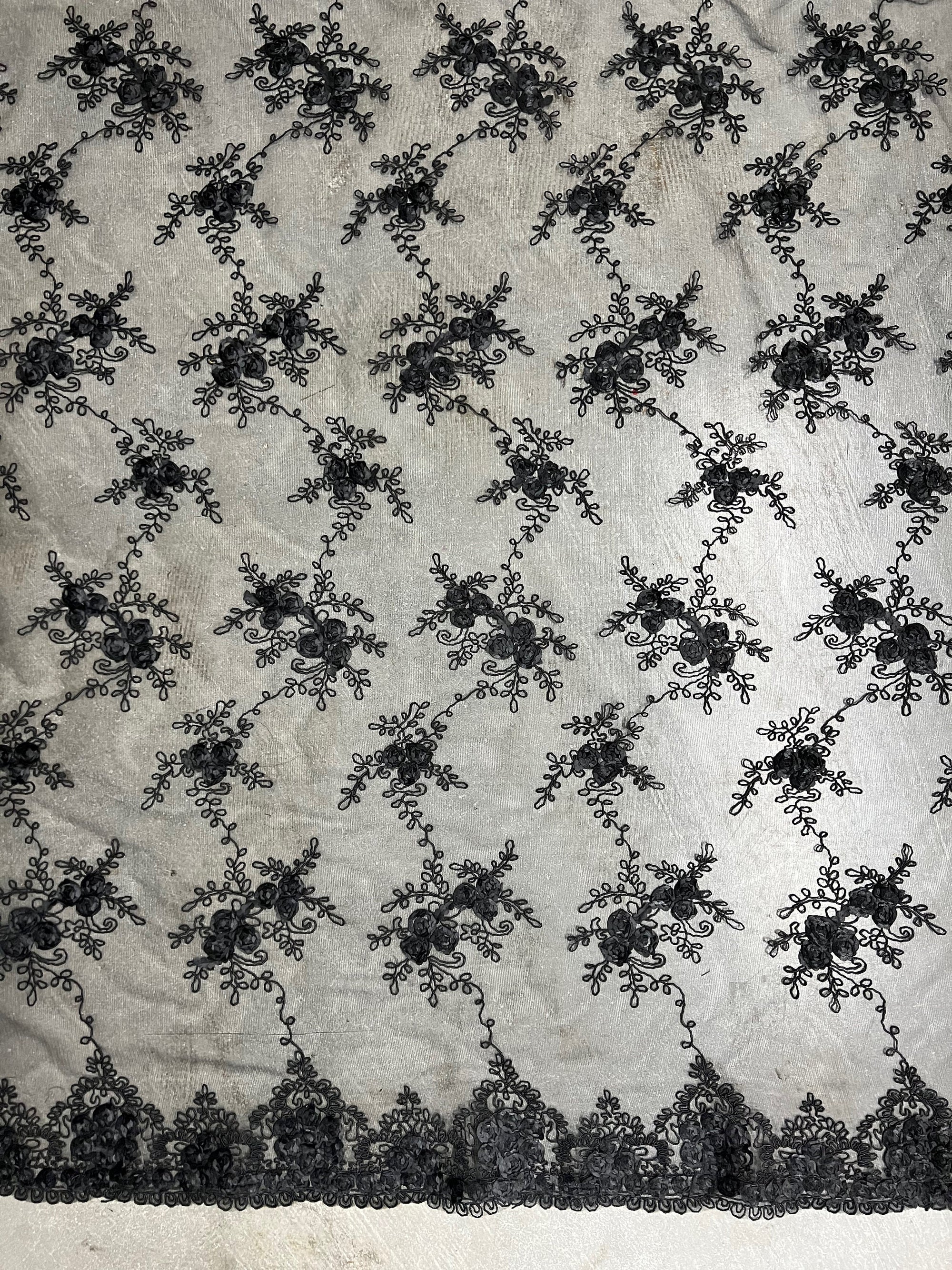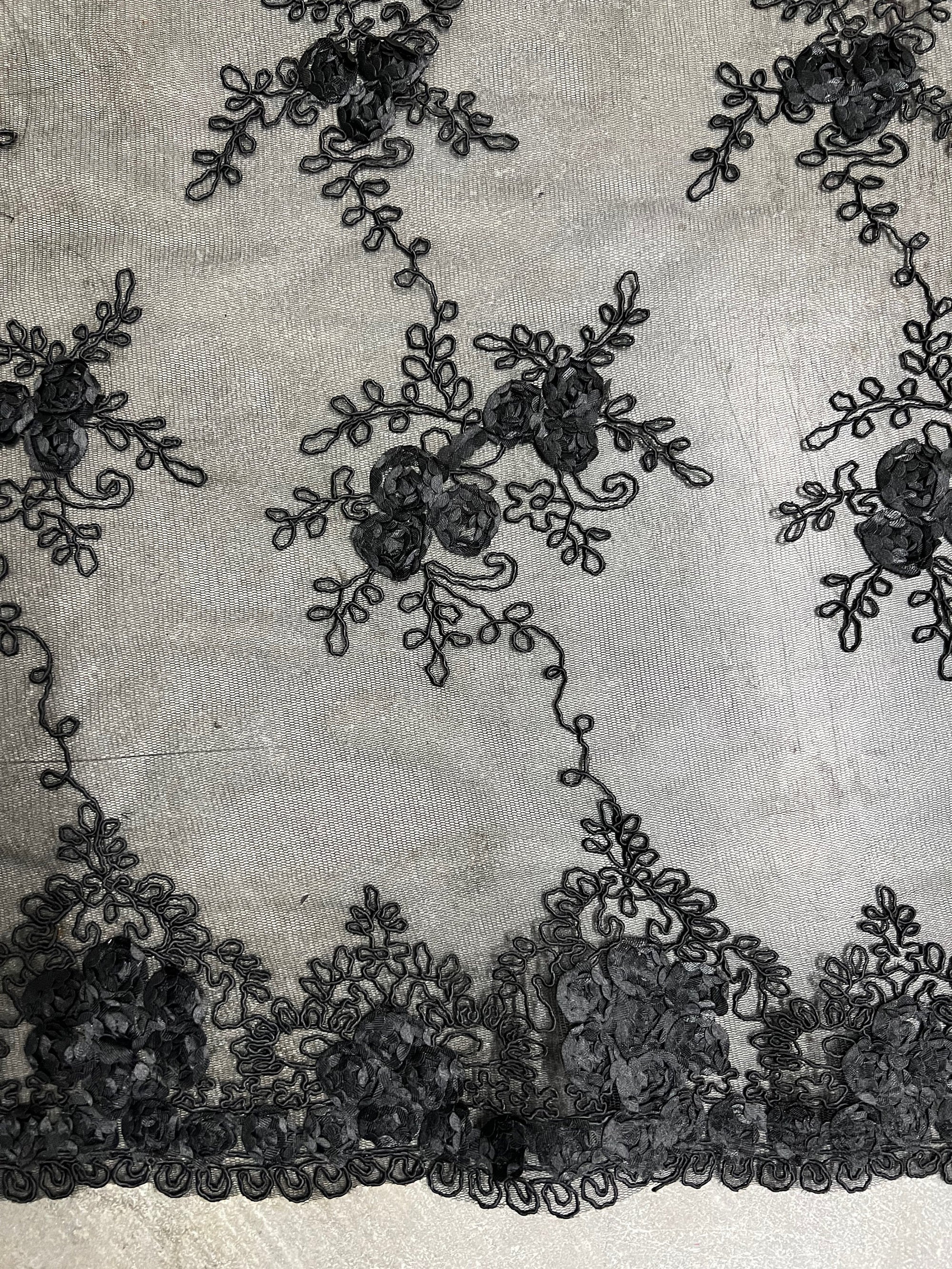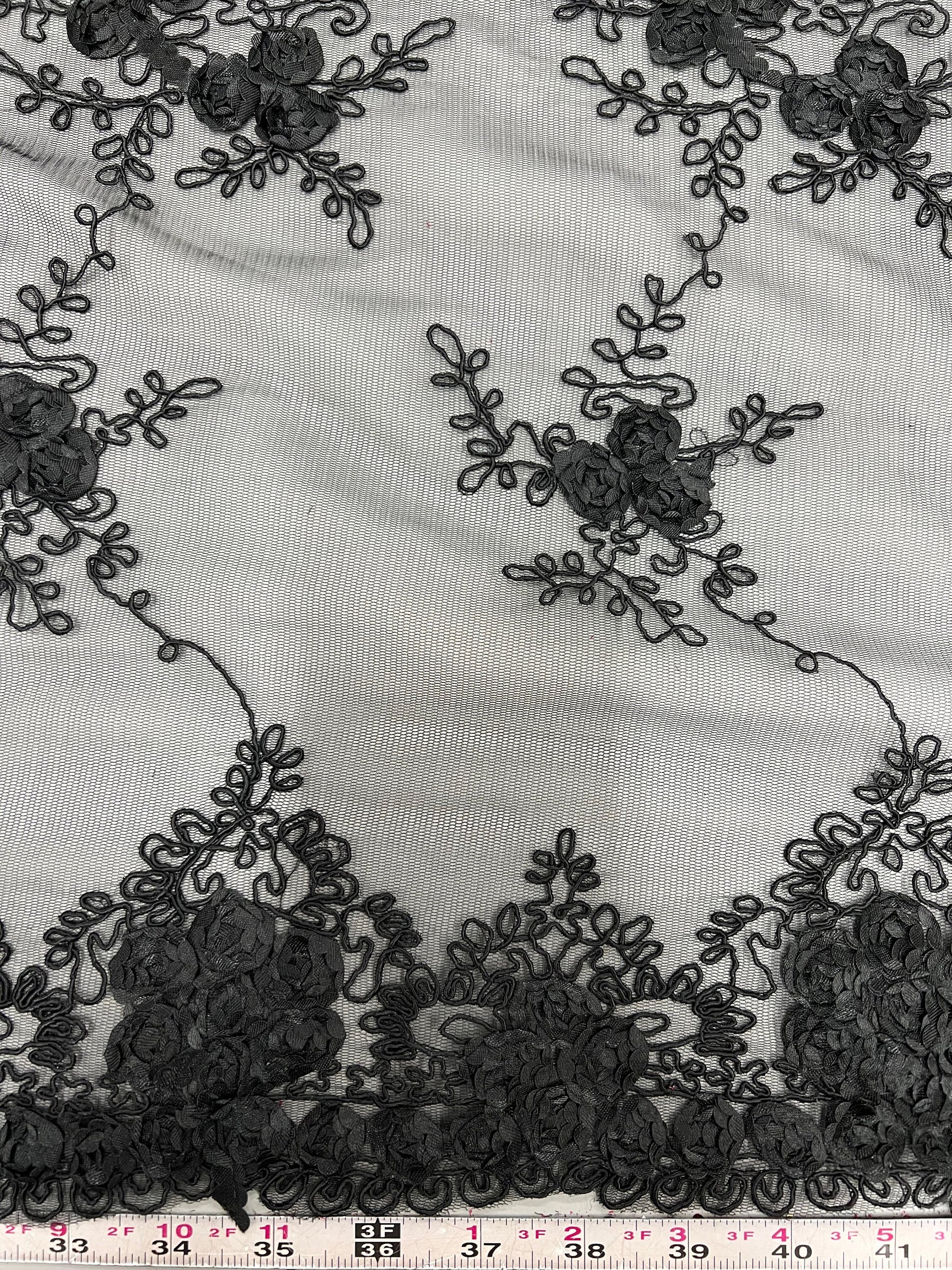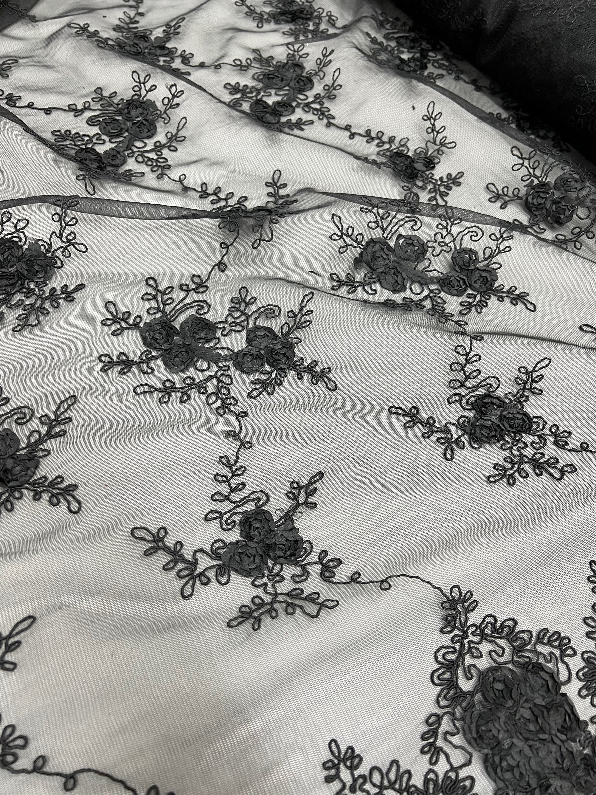 Andrea BLACK 3-D Floral Matte Corded Embroidery on Mesh Lace Fabric by the Yard - 10016