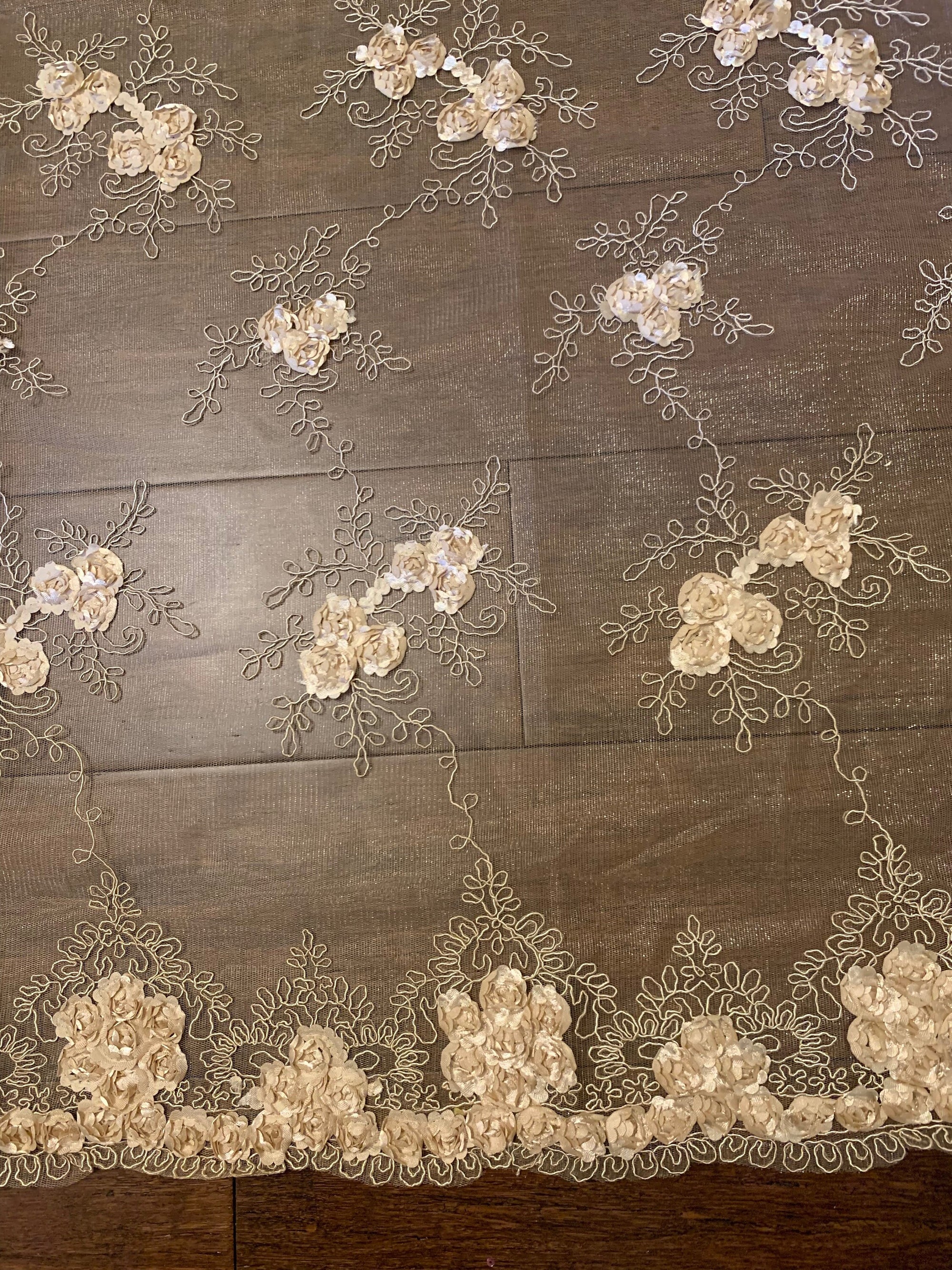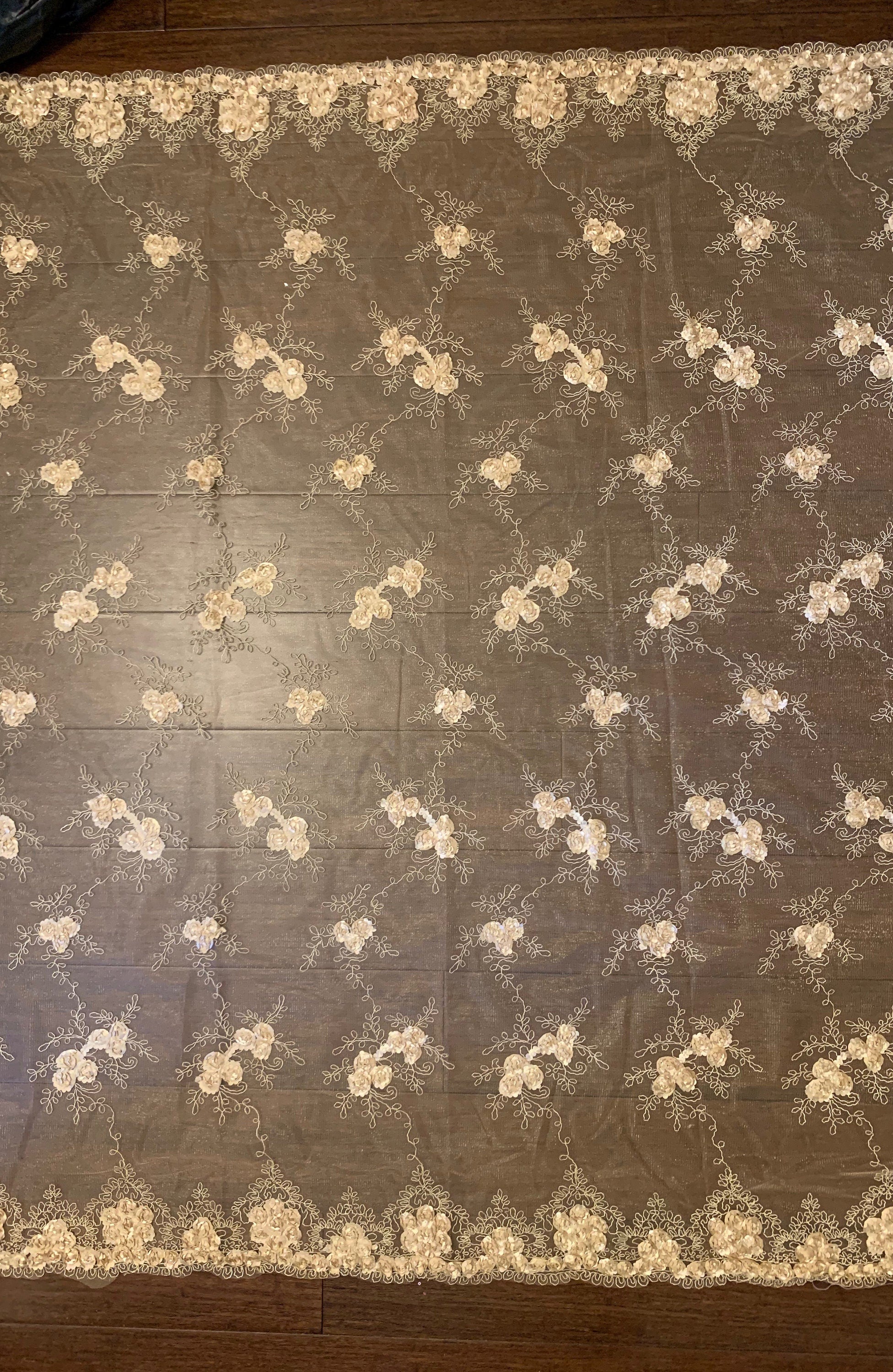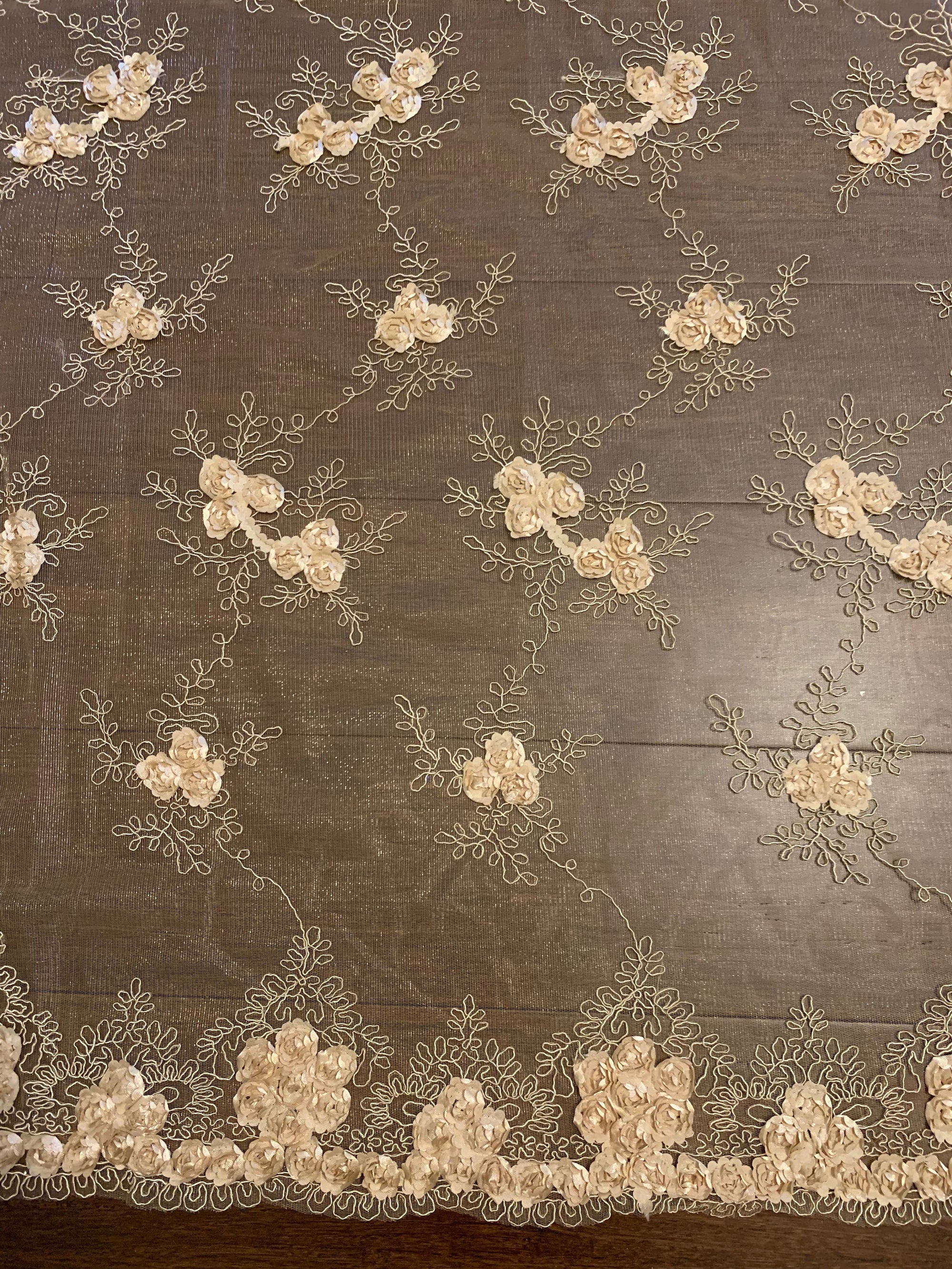 Andrea CHAMPAGNE 3-D Floral Matte Corded Embroidery on Mesh Lace Fabric by the Yard - 10016