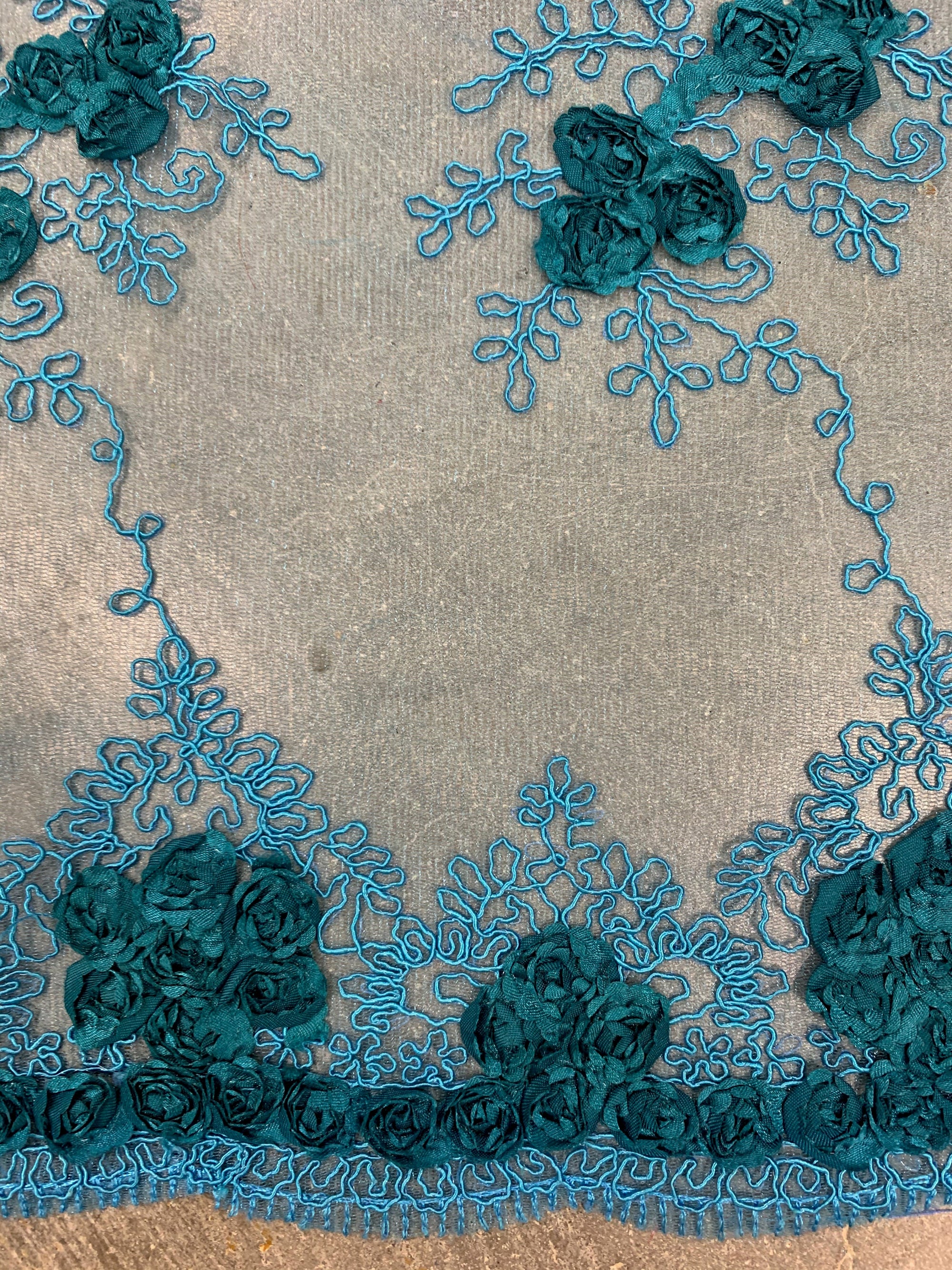 Andrea DARK TEAL 3-D Floral Matte Corded Embroidery on Mesh Lace Fabric by the Yard - 10016