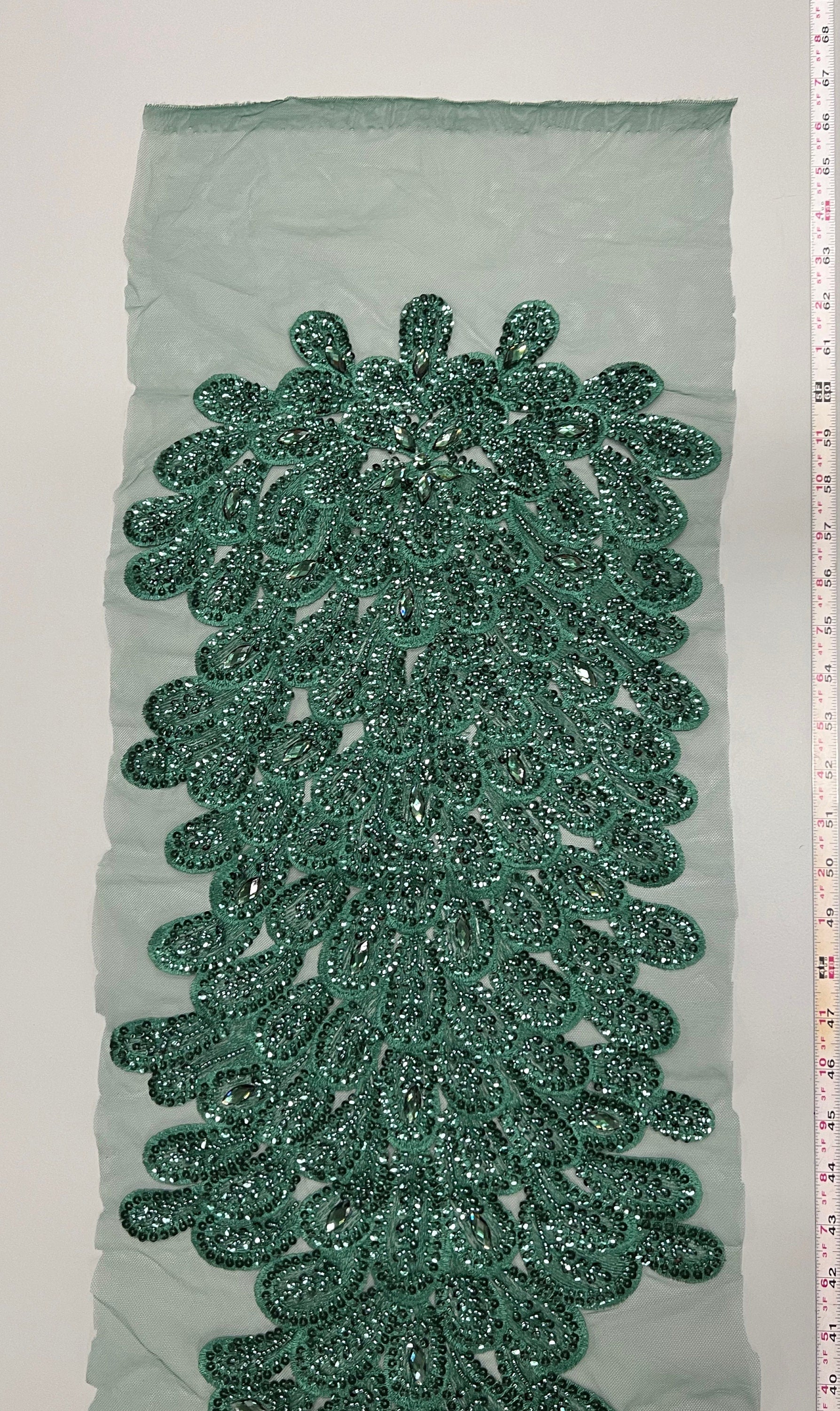 Angela HUNTER GREEN Vegas Peacock Beaded Sequins Embroidered on Mesh Lace Fabric by Panel - 10227