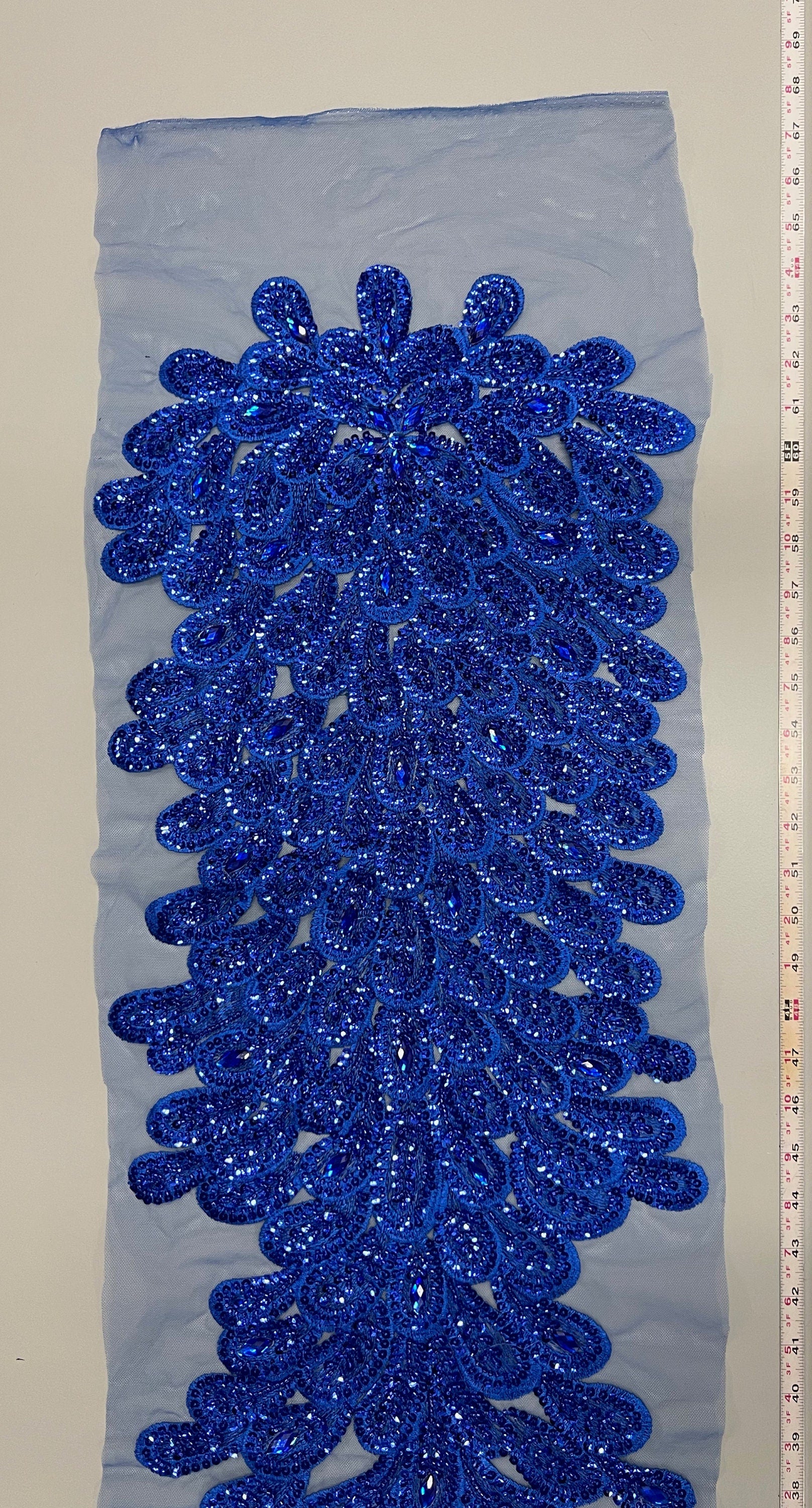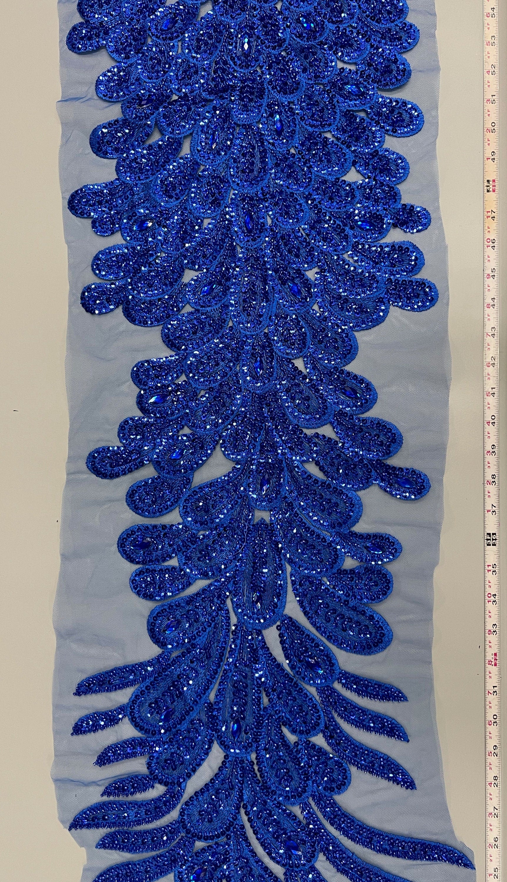 Angela ROYAL BLUE Vegas Peacock Beaded Sequins Embroidered on Mesh Lace Fabric by Panel - 10227