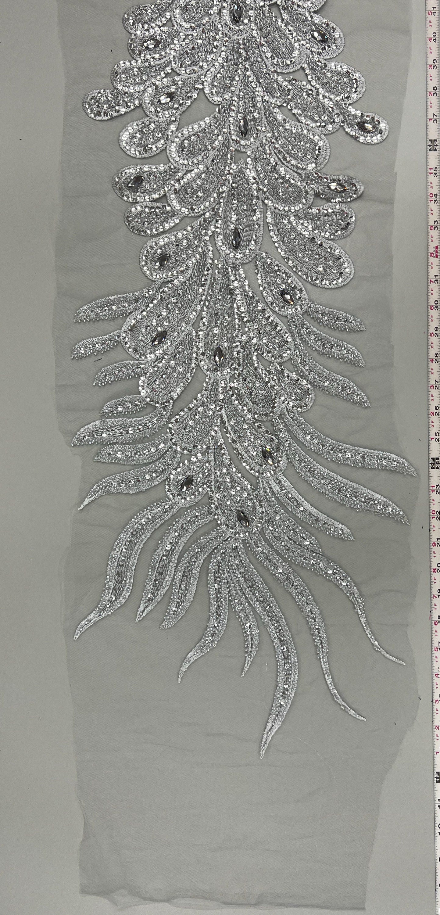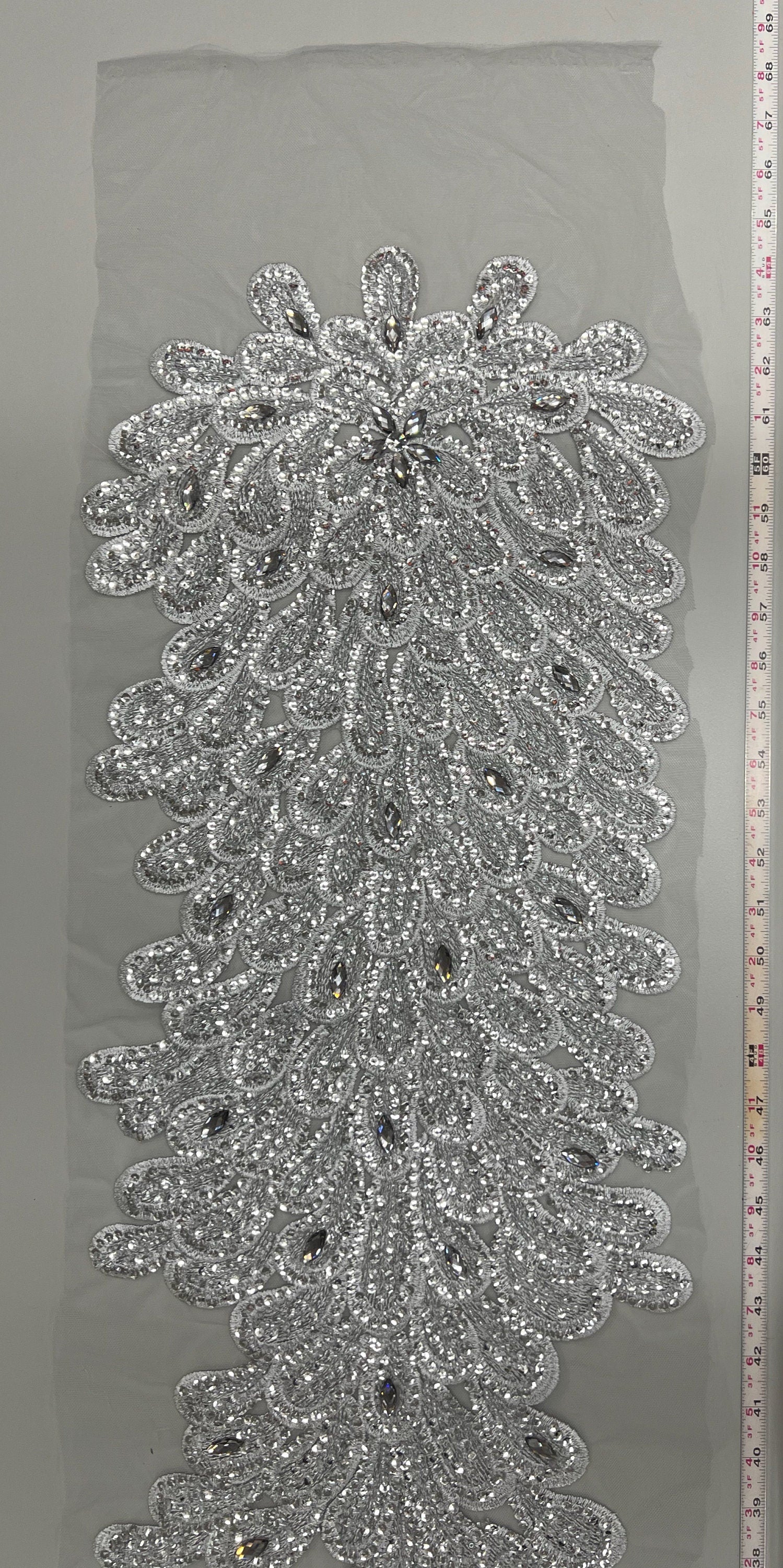 Angela SILVER Vegas Peacock Beaded Sequins Embroidered on Mesh Lace Fabric by Panel - 10227