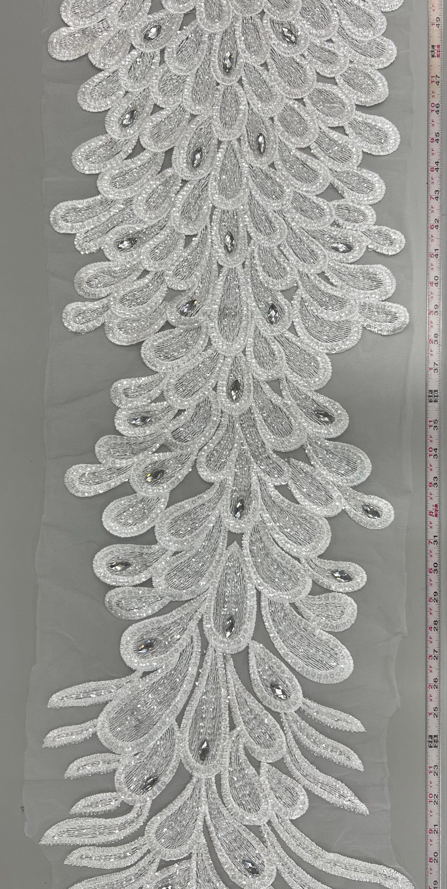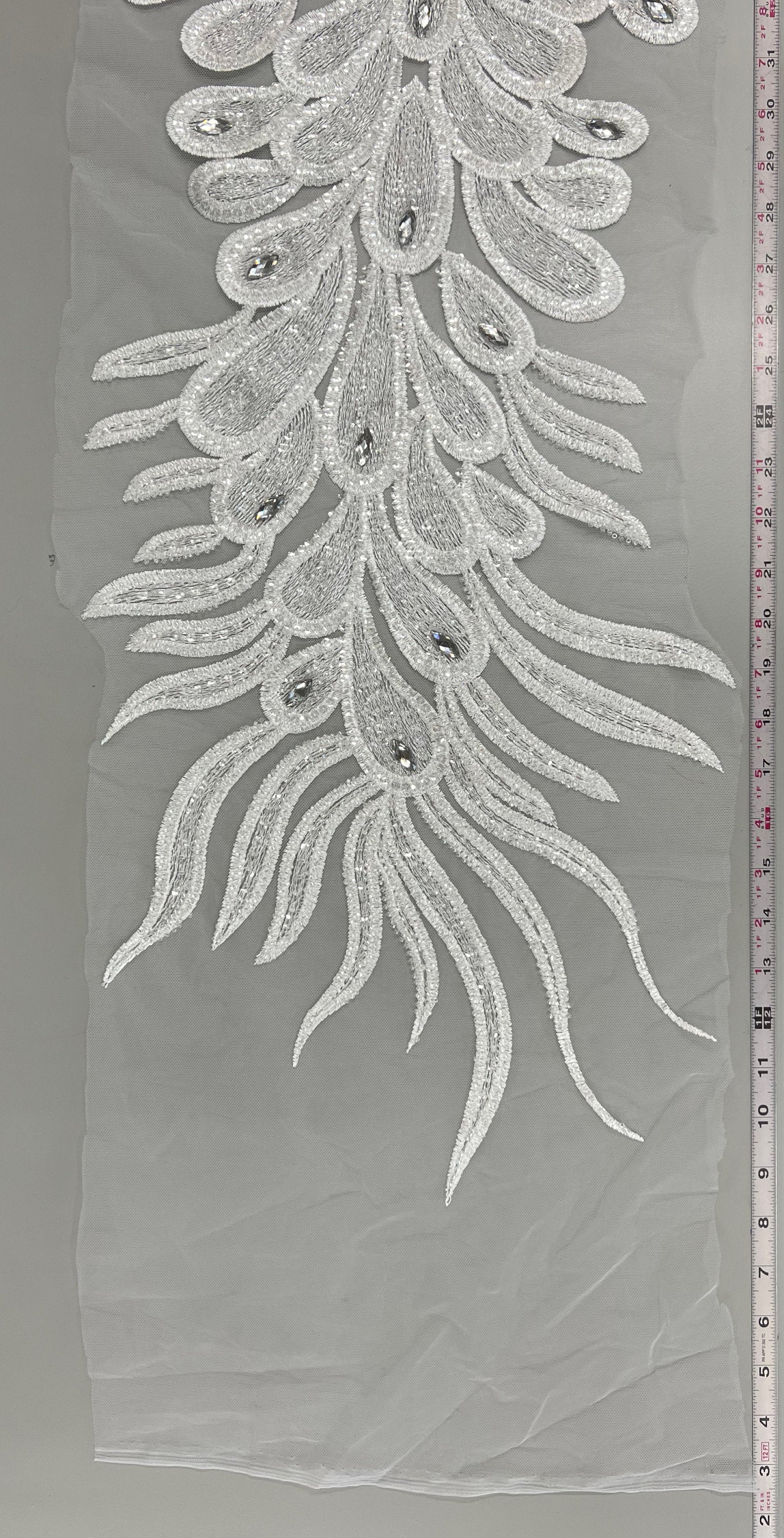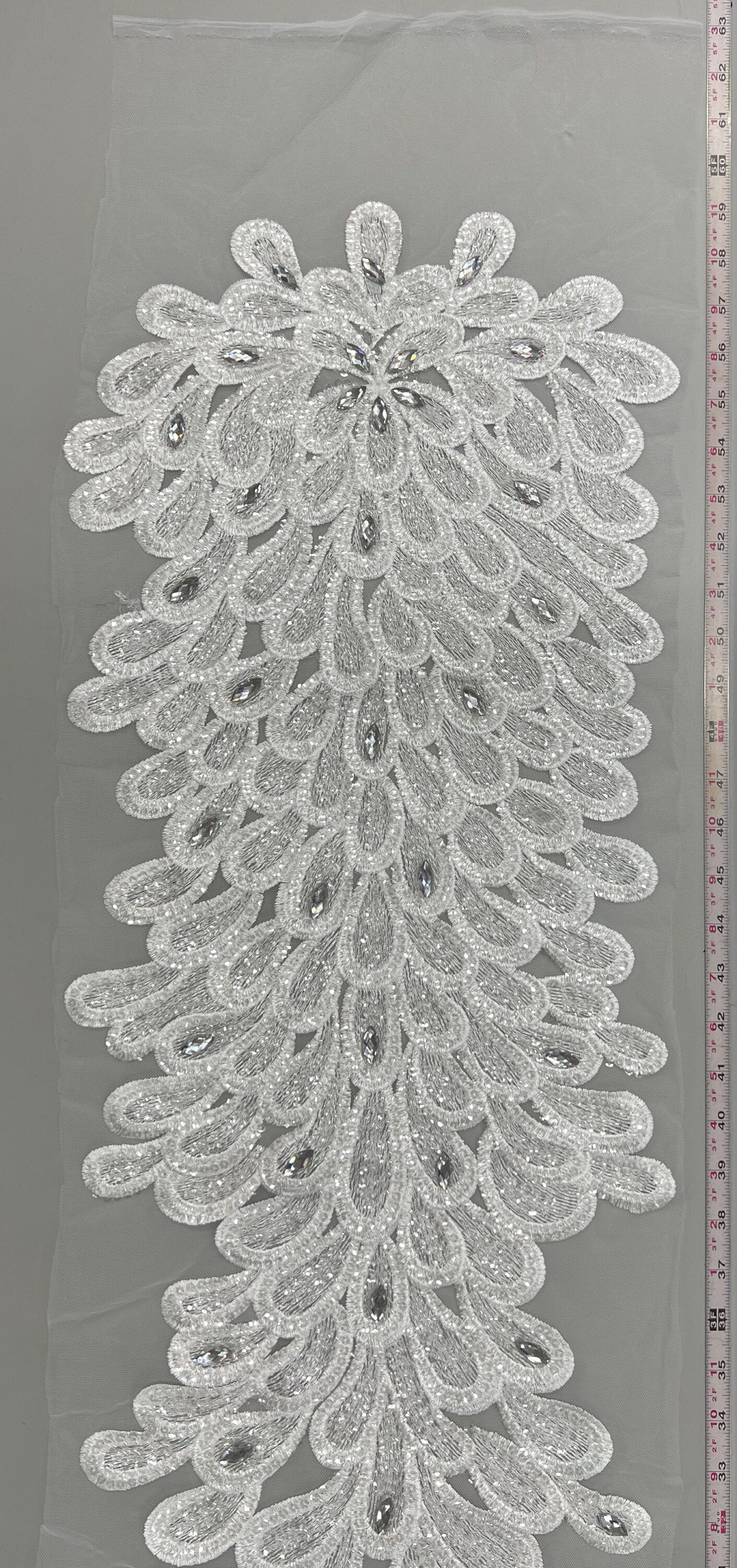 Angela WHITE Vegas Peacock Beaded Sequins Embroidered on Mesh Lace Fabric by Panel - 10227