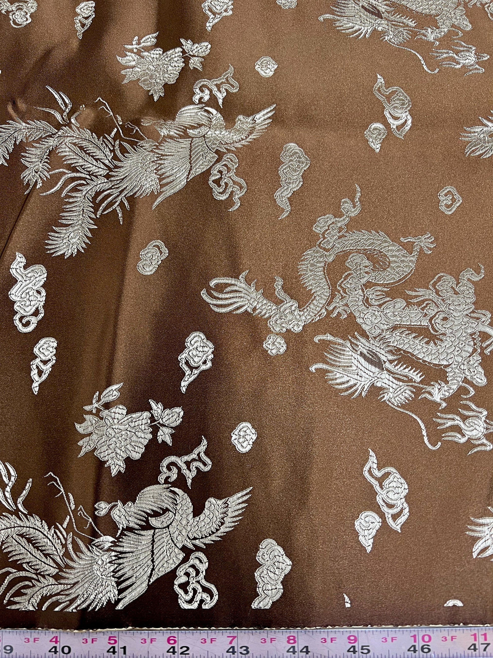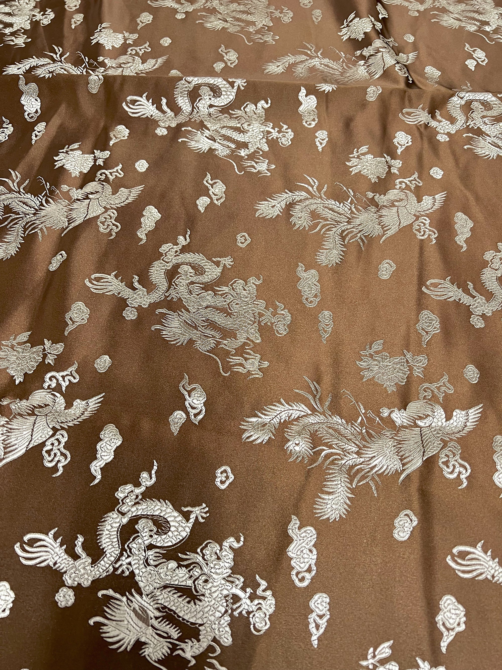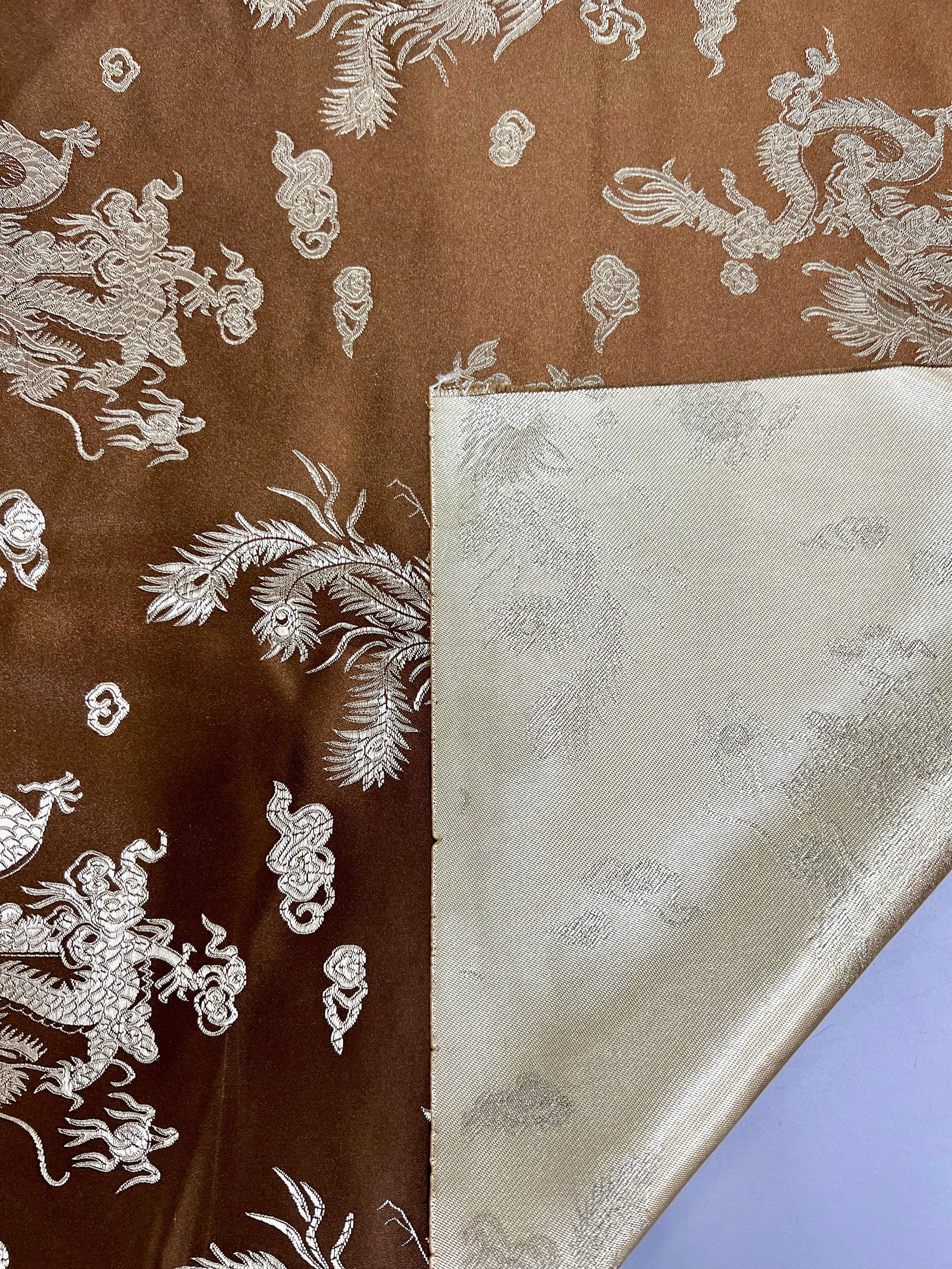 Arisa BROWN Dragon Brocade Chinese Satin Fabric for Cheongsam/Qipao, Apparel, Costumes, Upholstery, Bags, Crafts - 10237