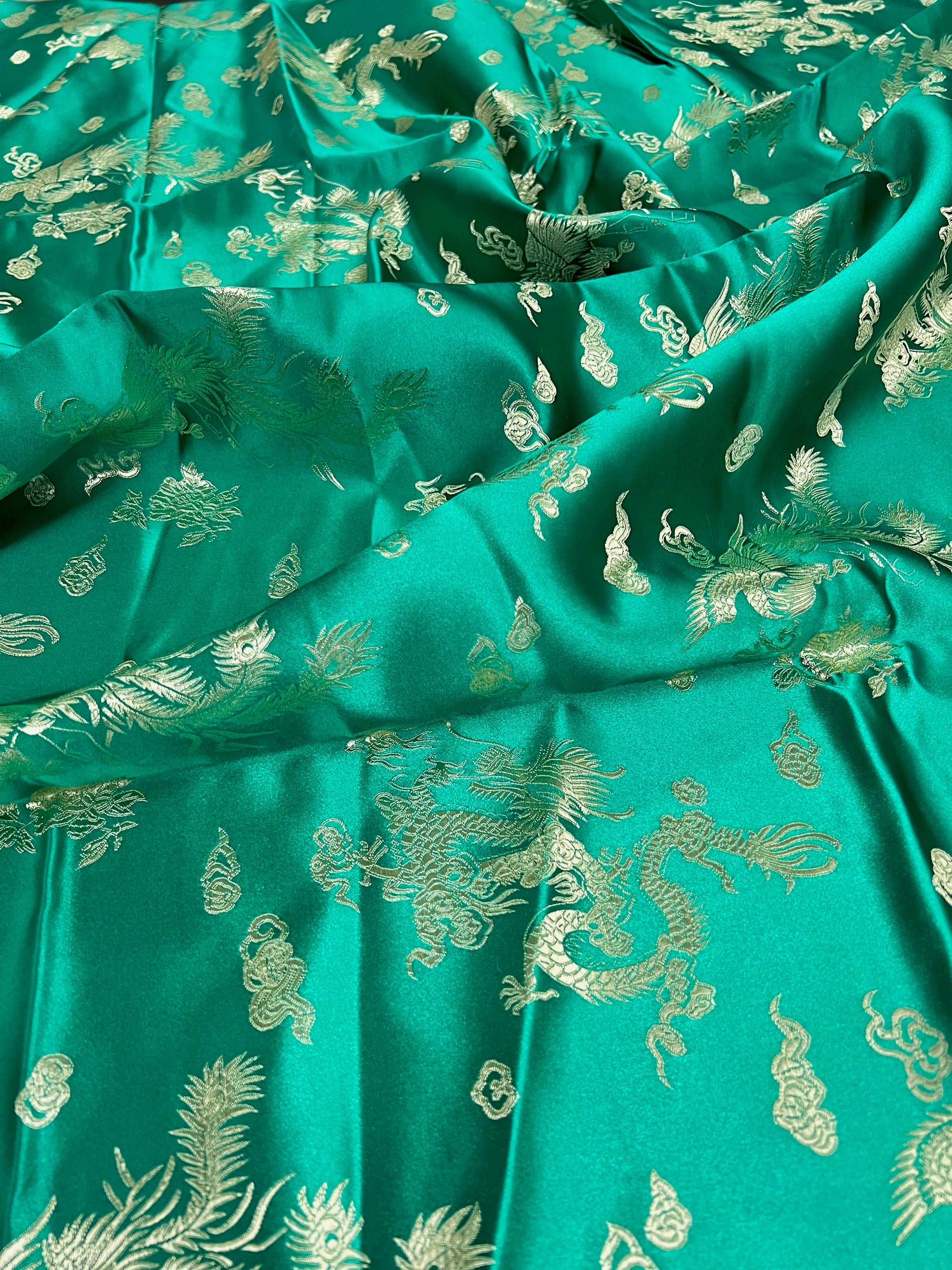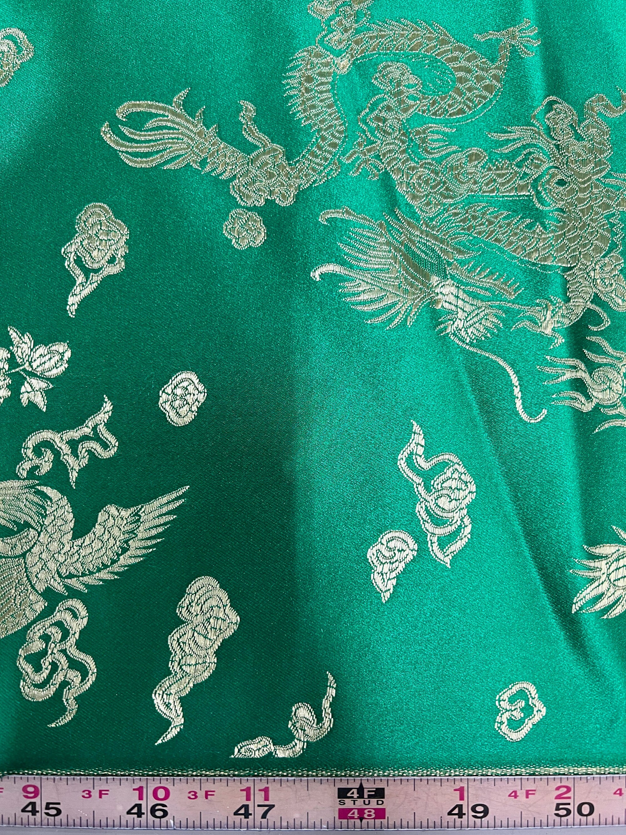 Arisa JADE GREEN Dragon Brocade Chinese Satin Fabric for Cheongsam/Qipao, Apparel, Costumes, Upholstery, Bags, Crafts - 10237