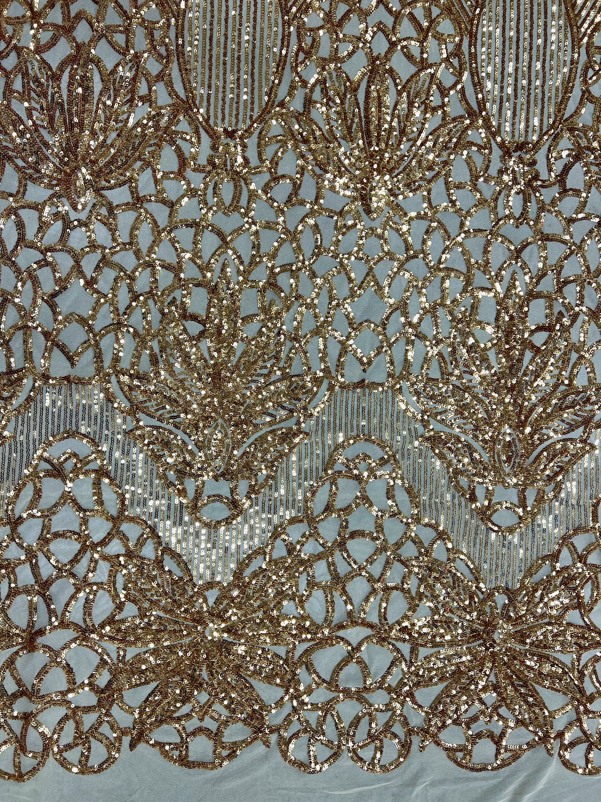 Artemis GOLD Sequins on Mesh Lace Fabric by the Yard - 10233