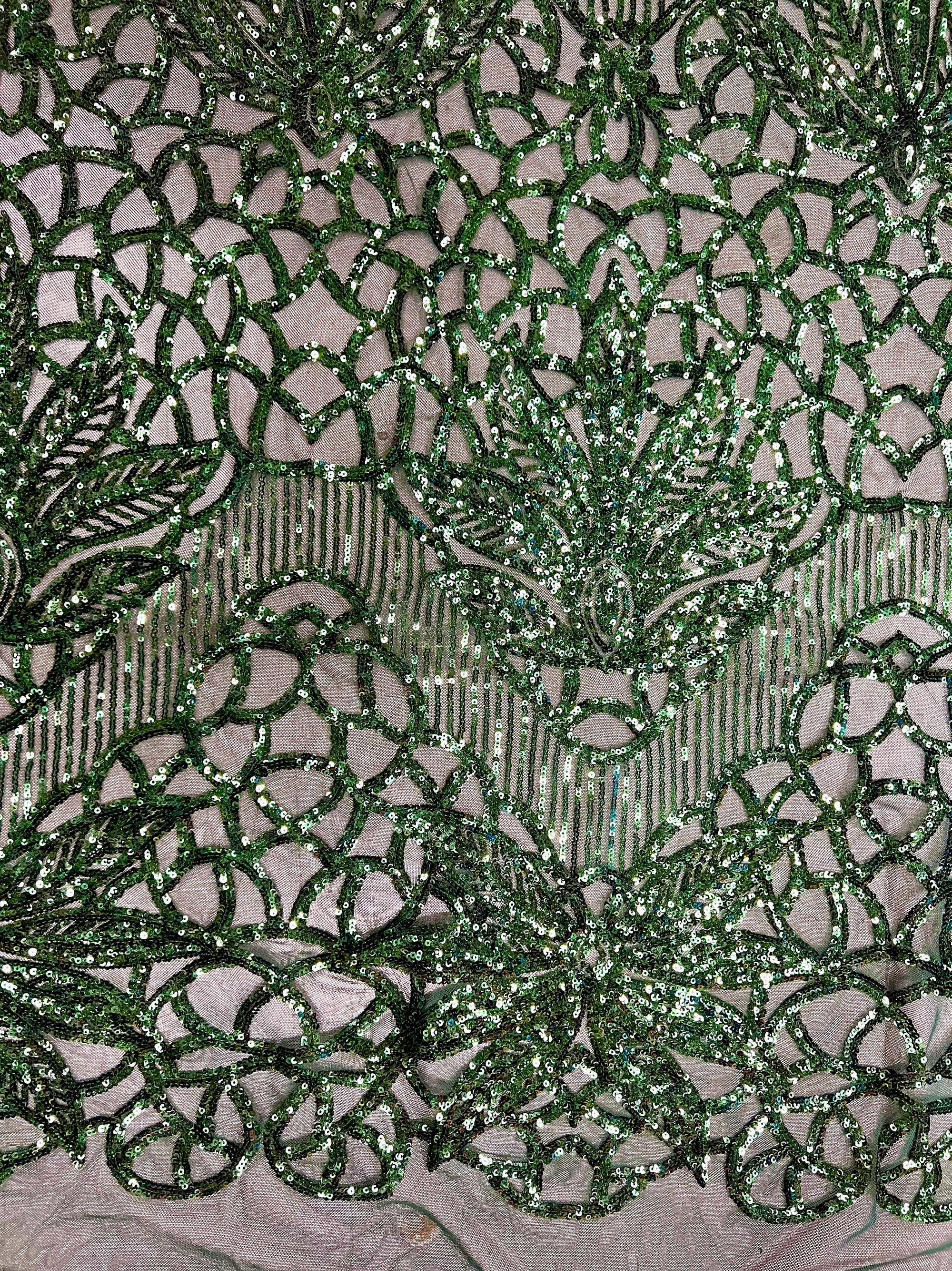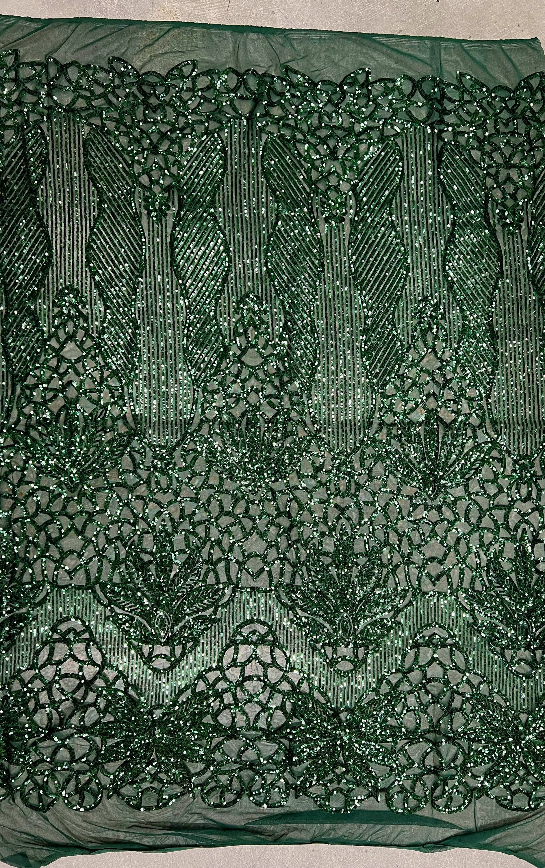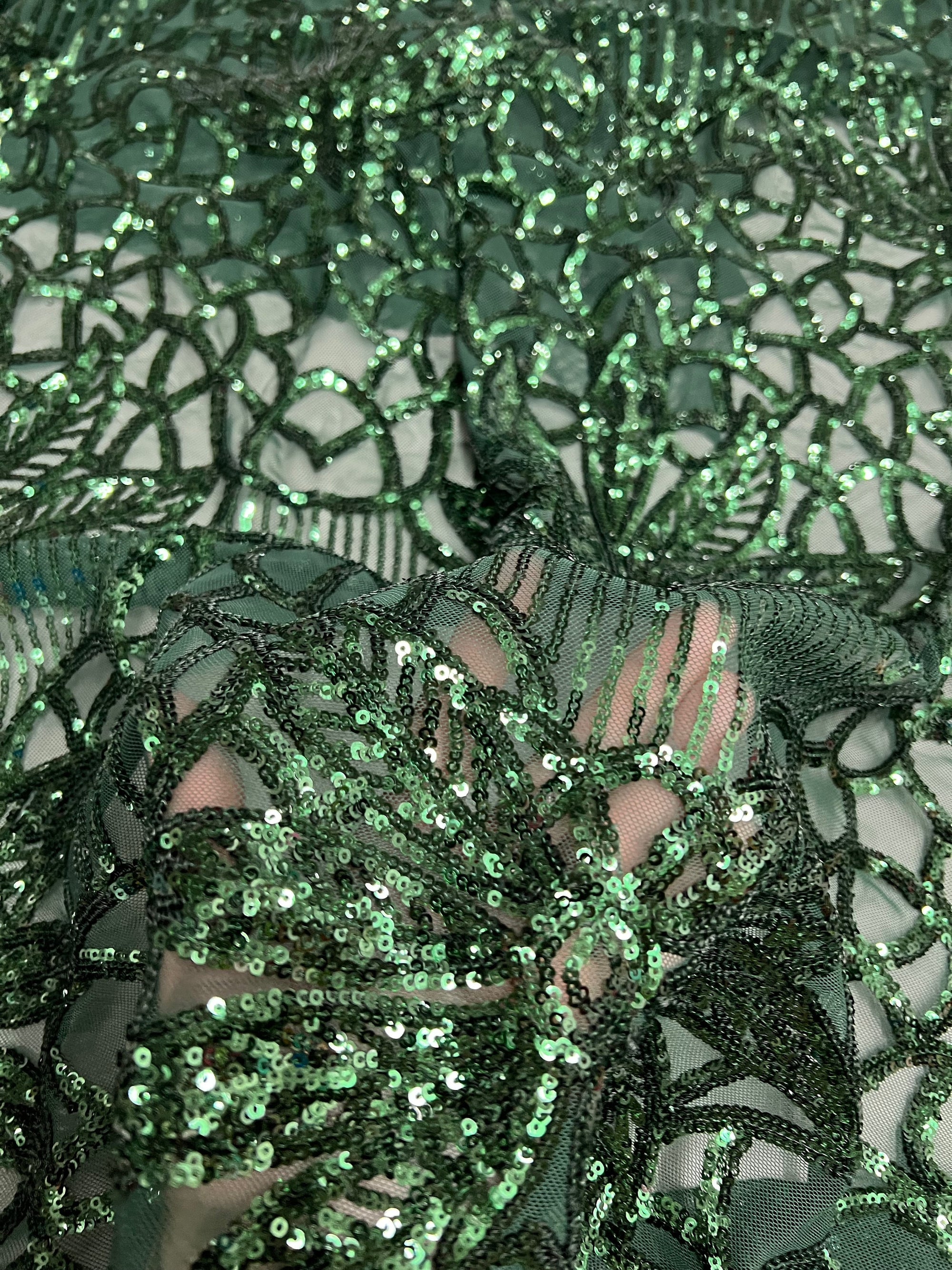 Artemis HUNTER GREEN Sequins on Mesh Lace Fabric by the Yard