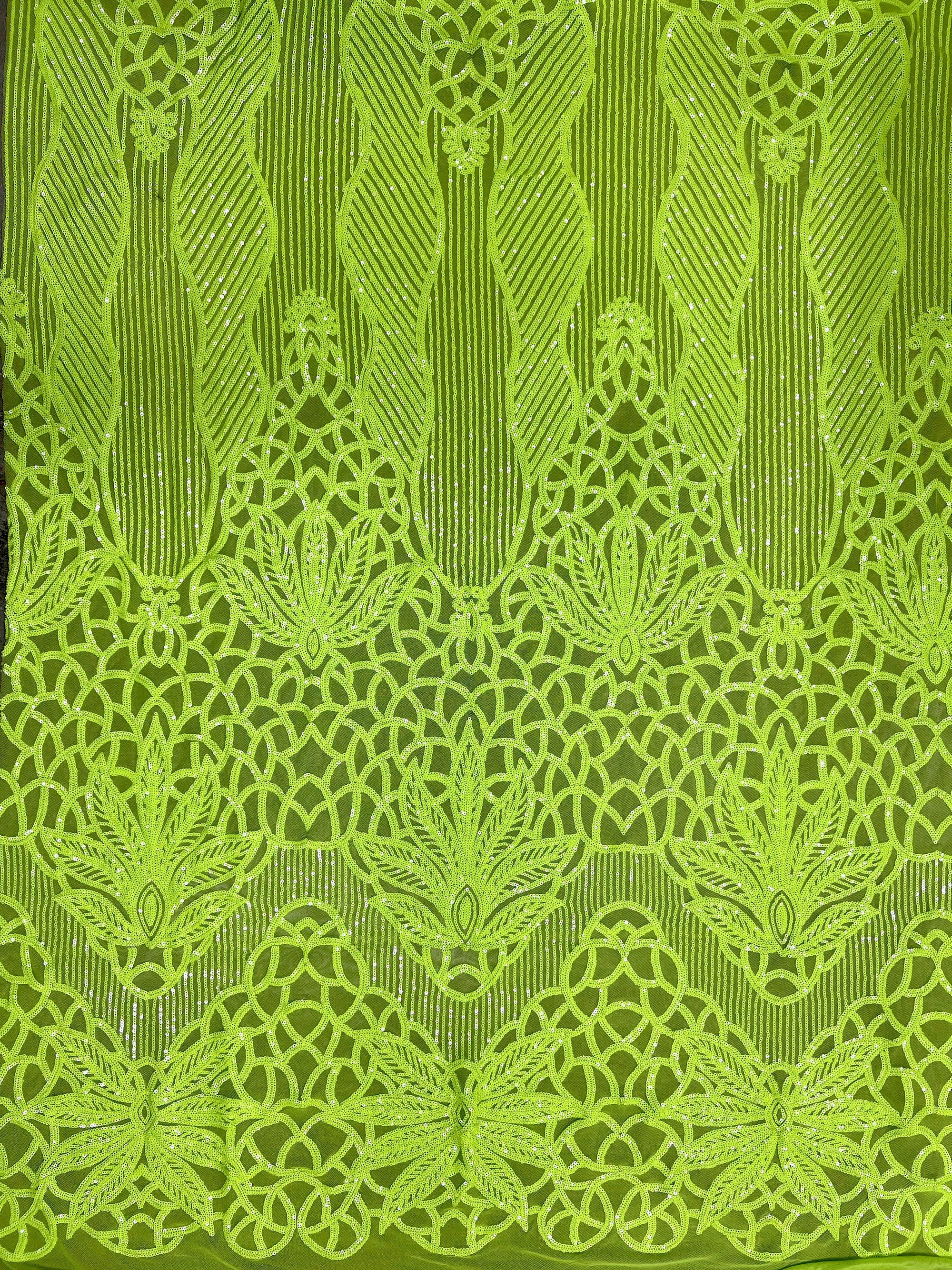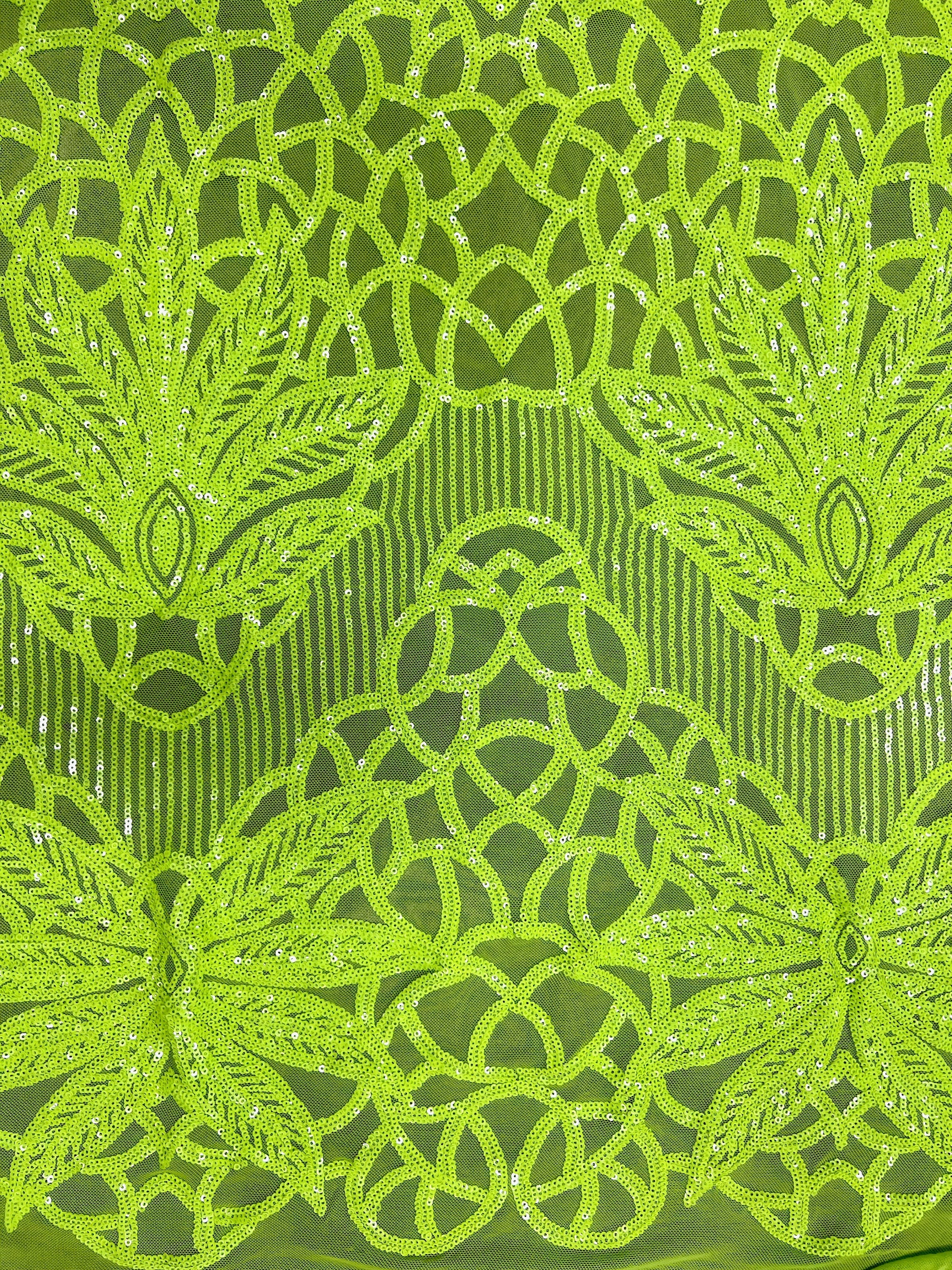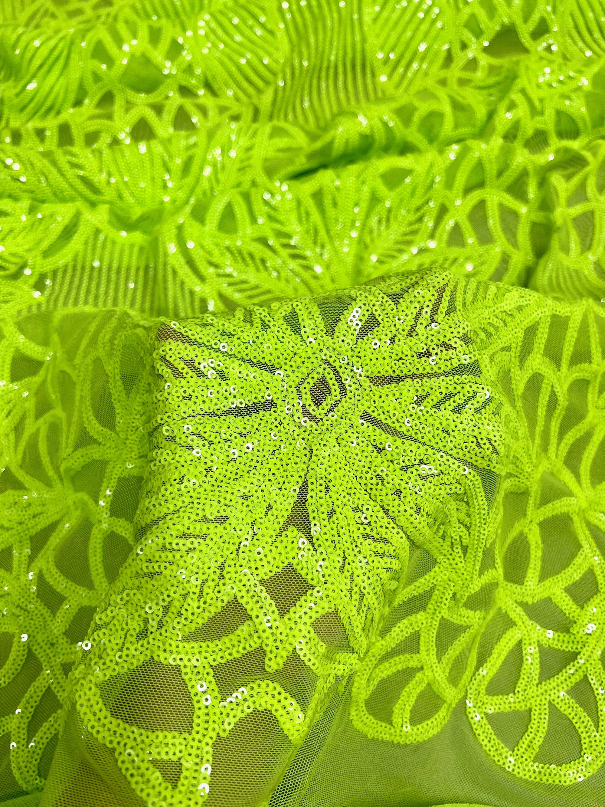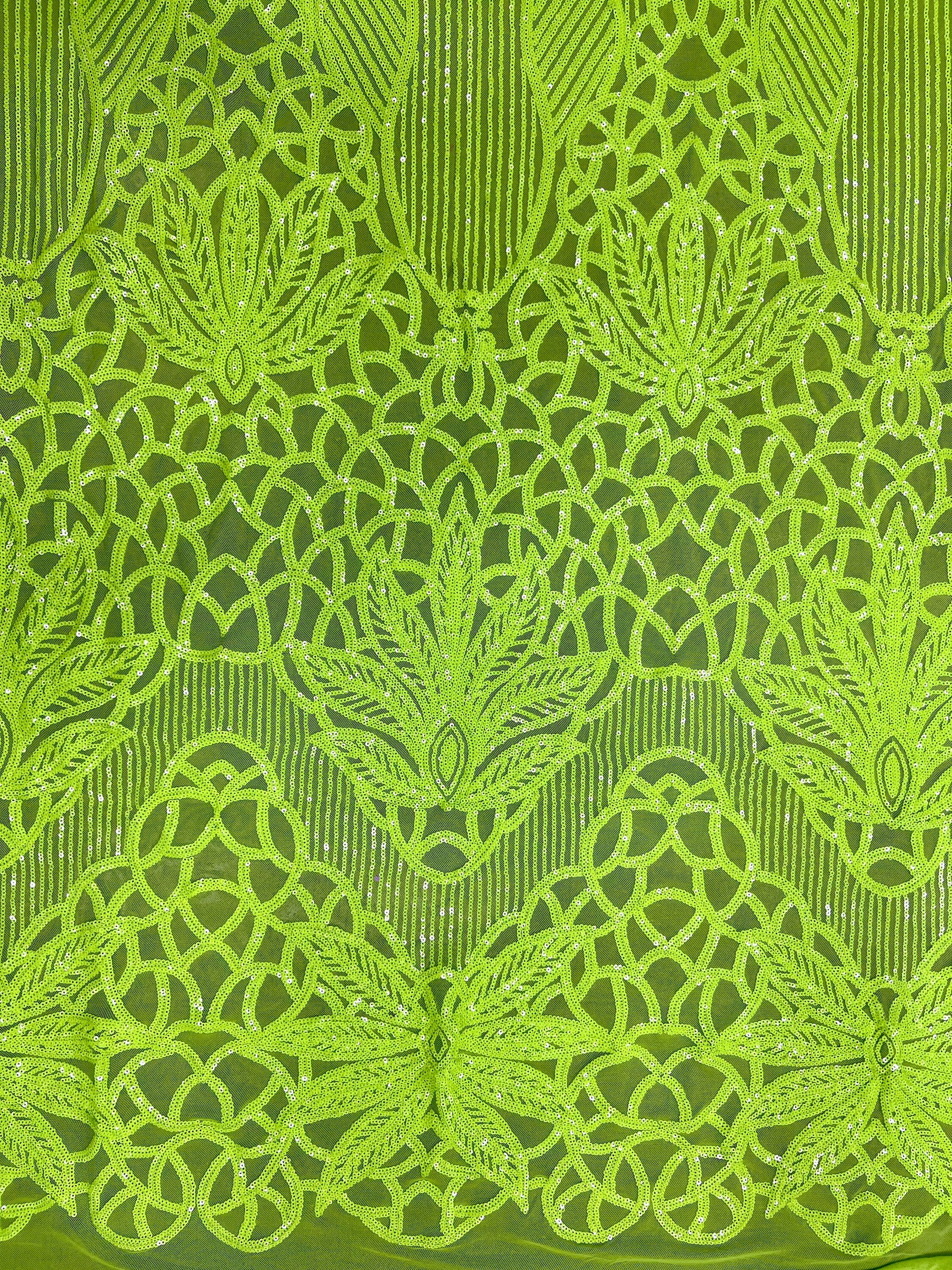 Artemis LIME Sequins on Mesh Lace Fabric by the Yard