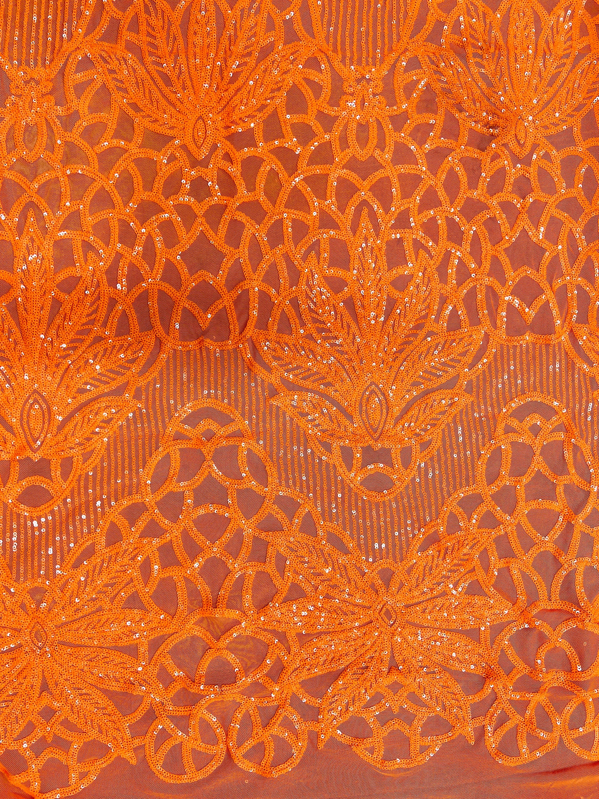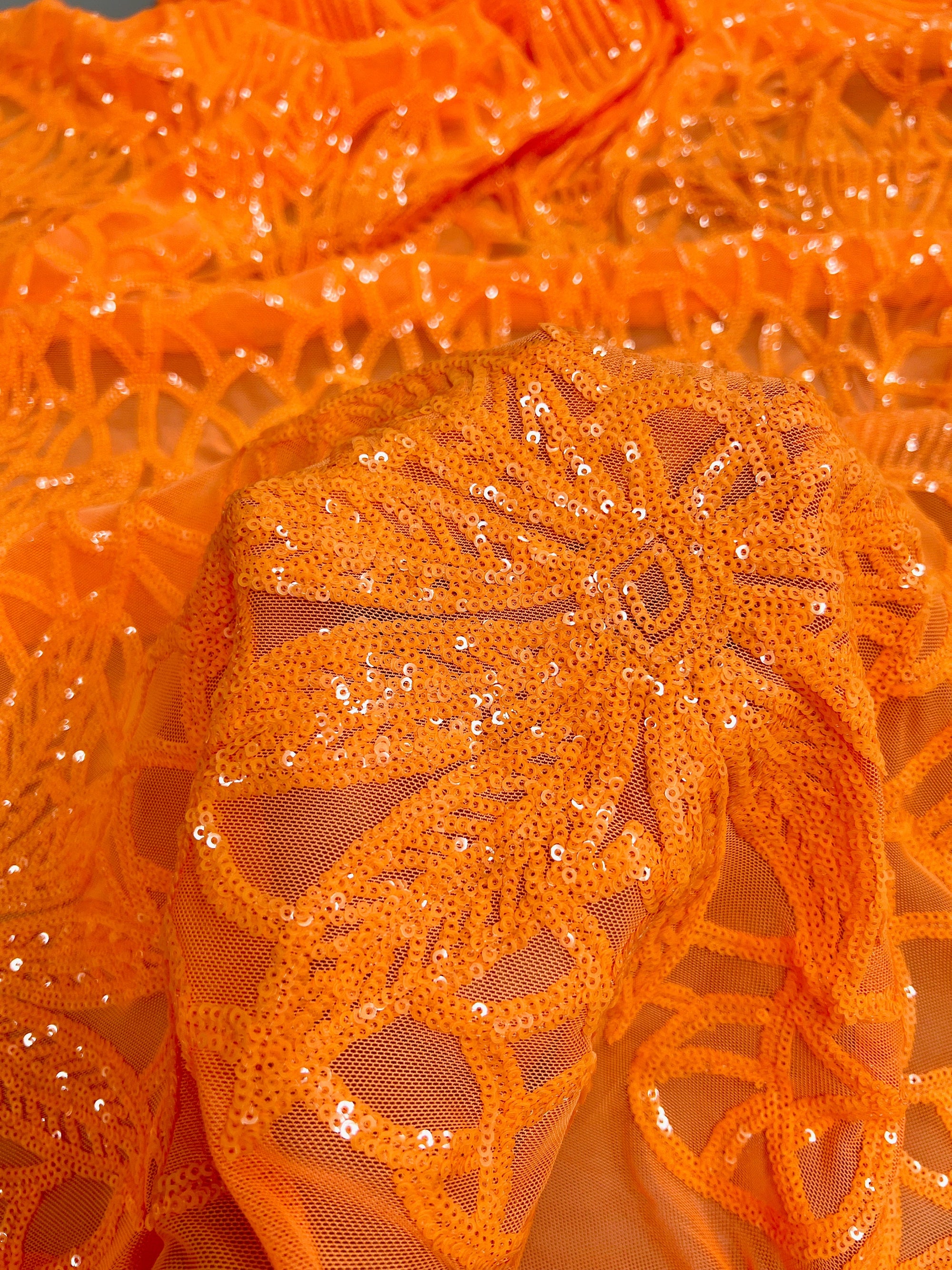 ["4 way mesh by yard","4 way stretch lace","artemis sequins mesh","evening gown","floral sequins mesh","formal wear","lace by yard","lace fabric","lace mesh","orange sequins mesh","sequin on mesh","sequins gown","sparkling sequins"]