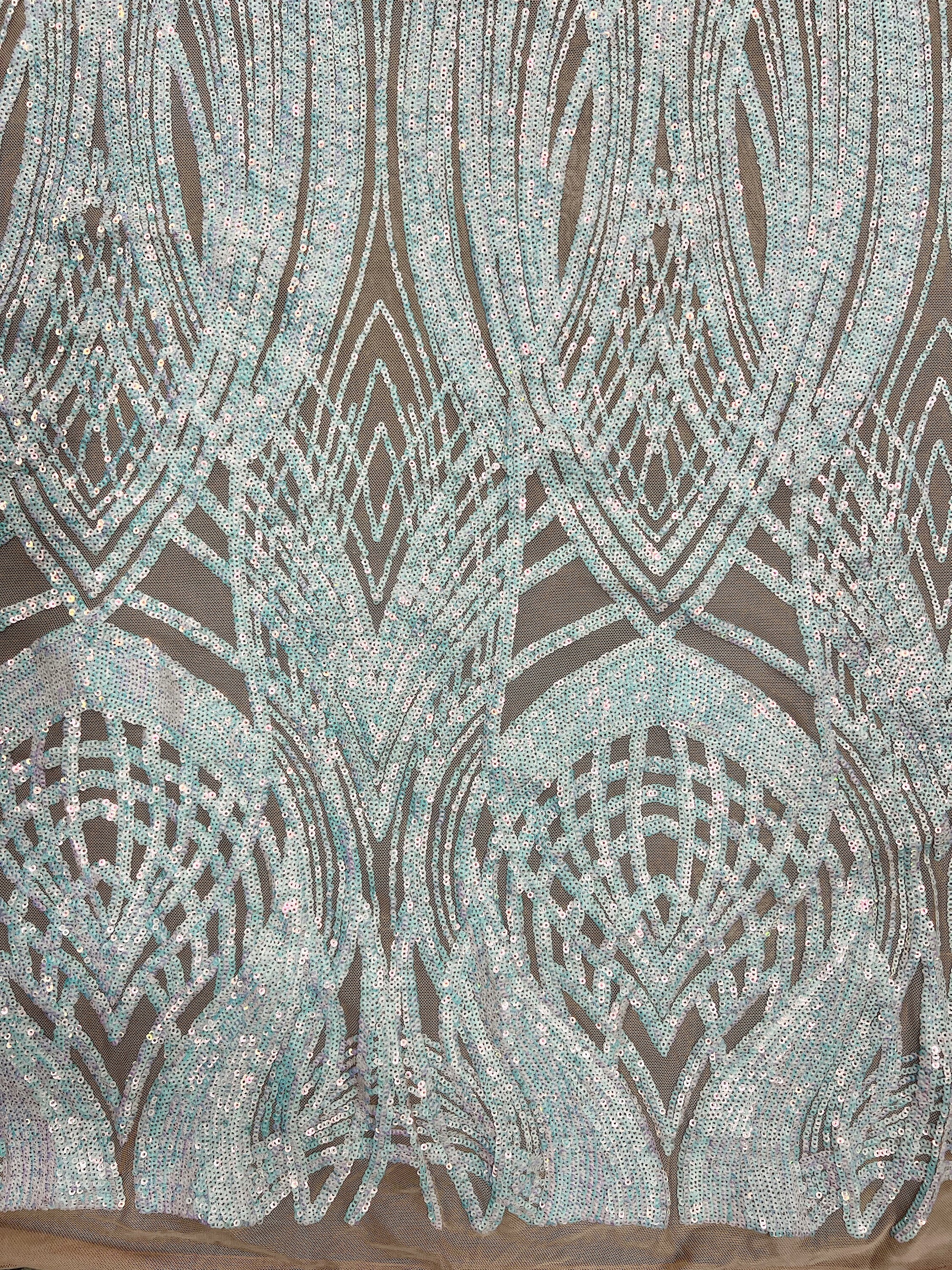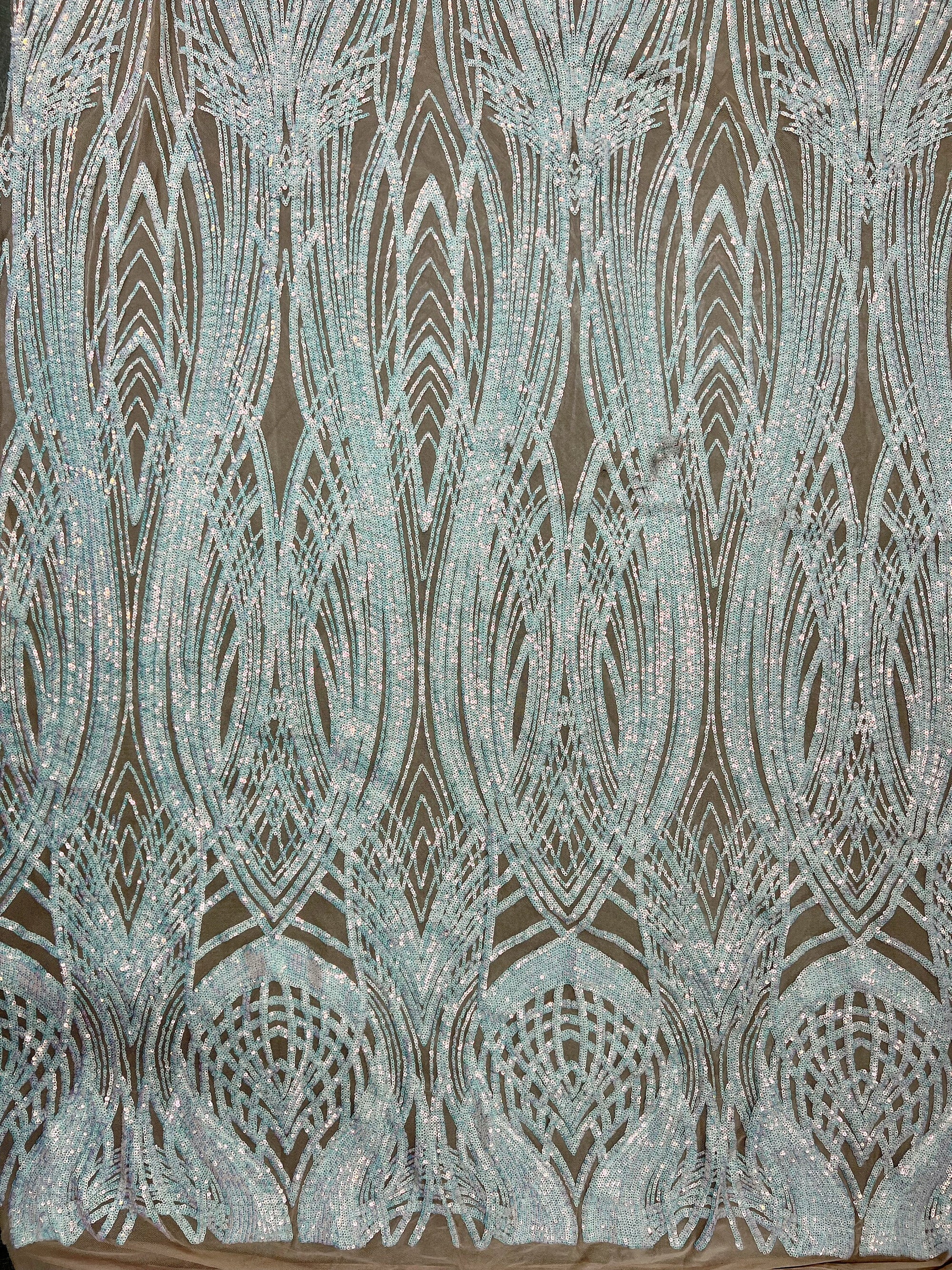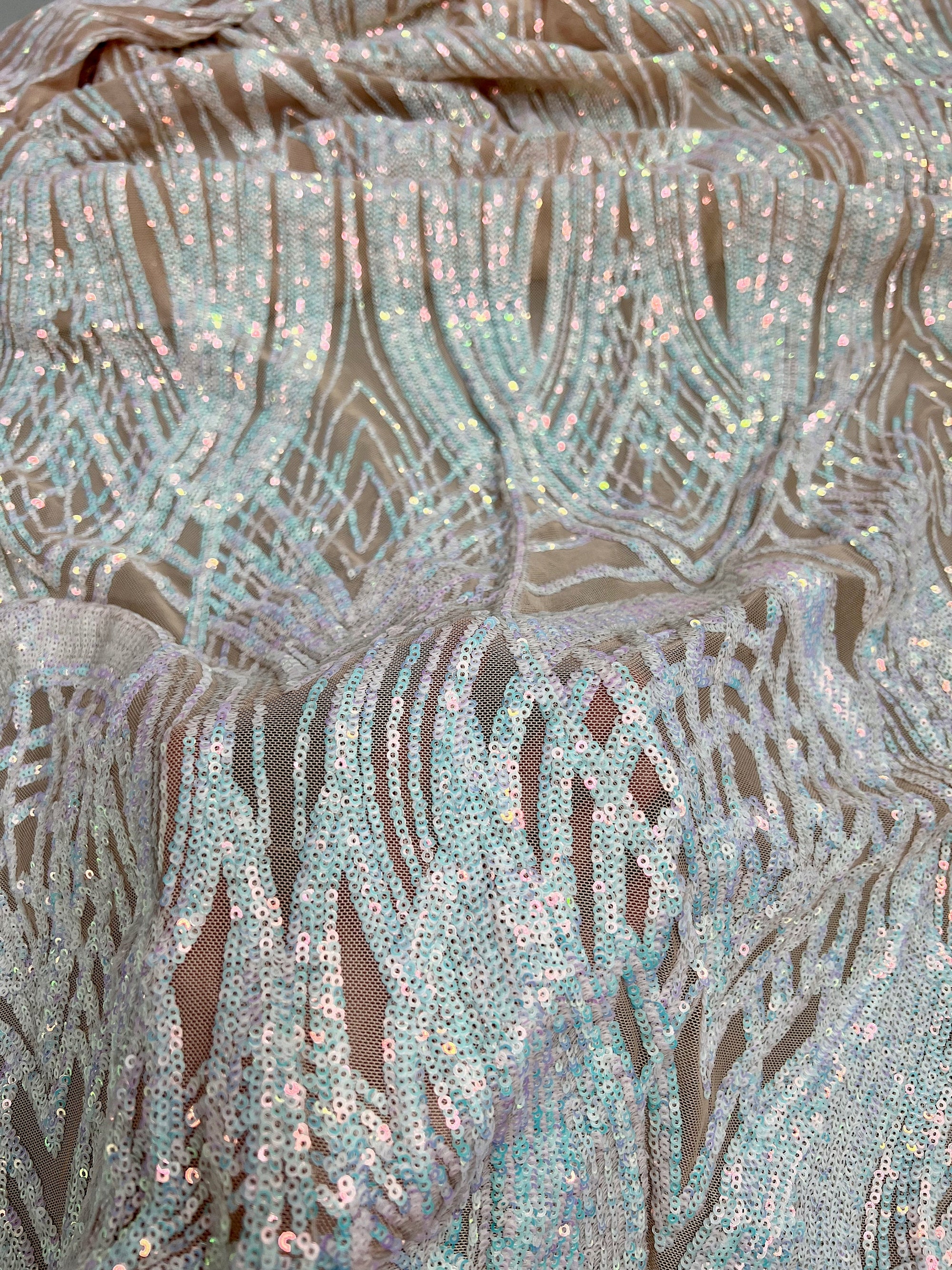 Athena Iridescent WHITE PINK Sequins on NUDE Mesh Lace Fabric by the Yard