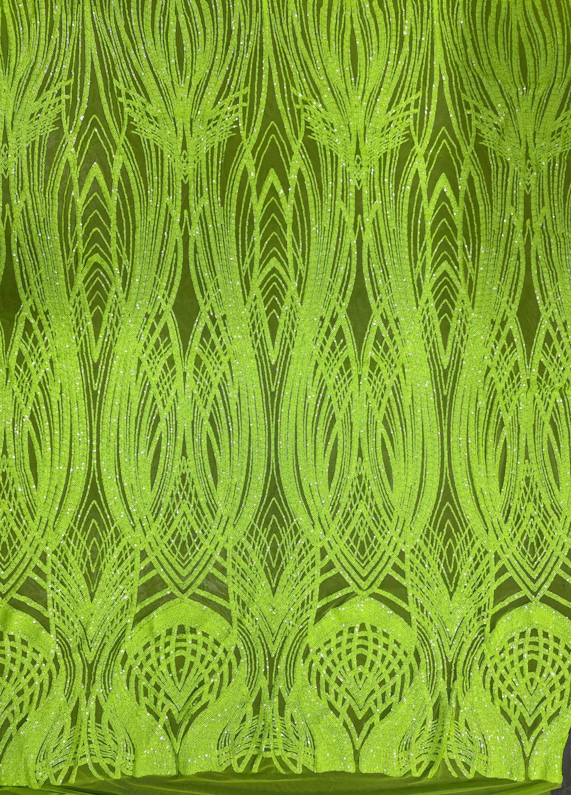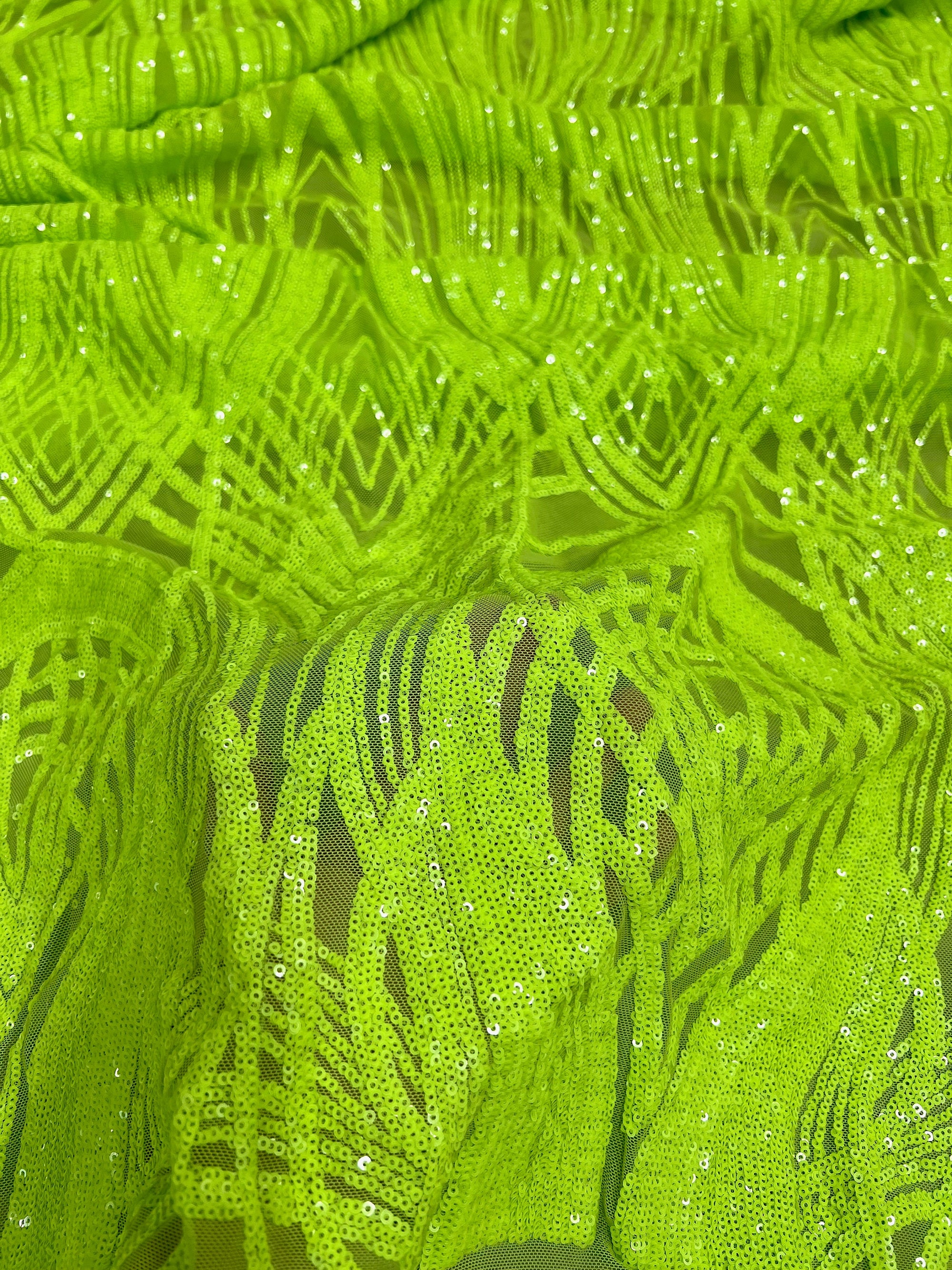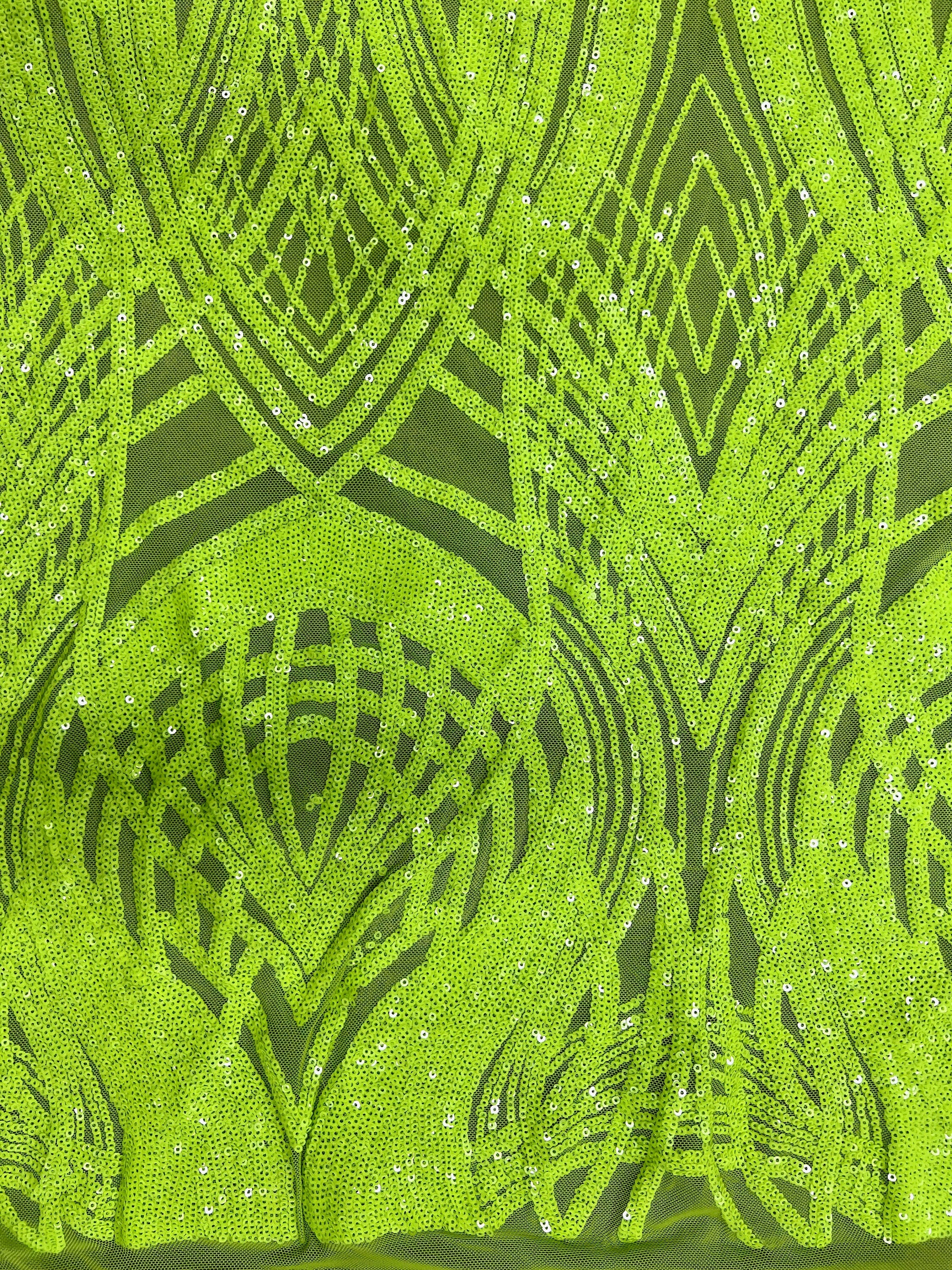 Athena LIME GREEN Sequins on Mesh Lace Fabric by the Yard