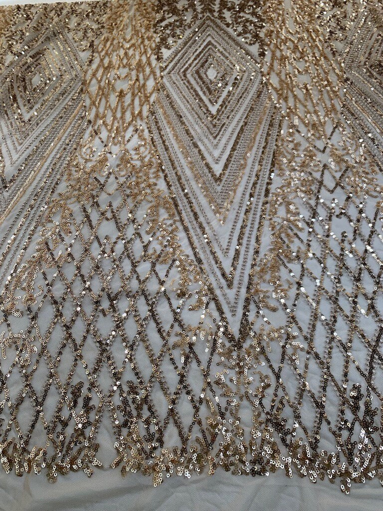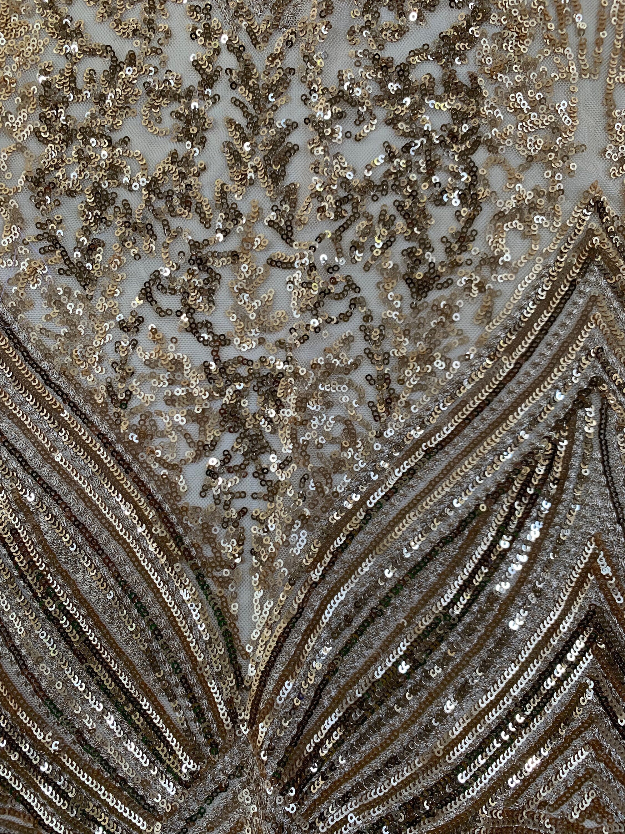 Averie GOLD Geometric Butterfly Sequins on Mesh Lace Fabric by the Yard - 10113