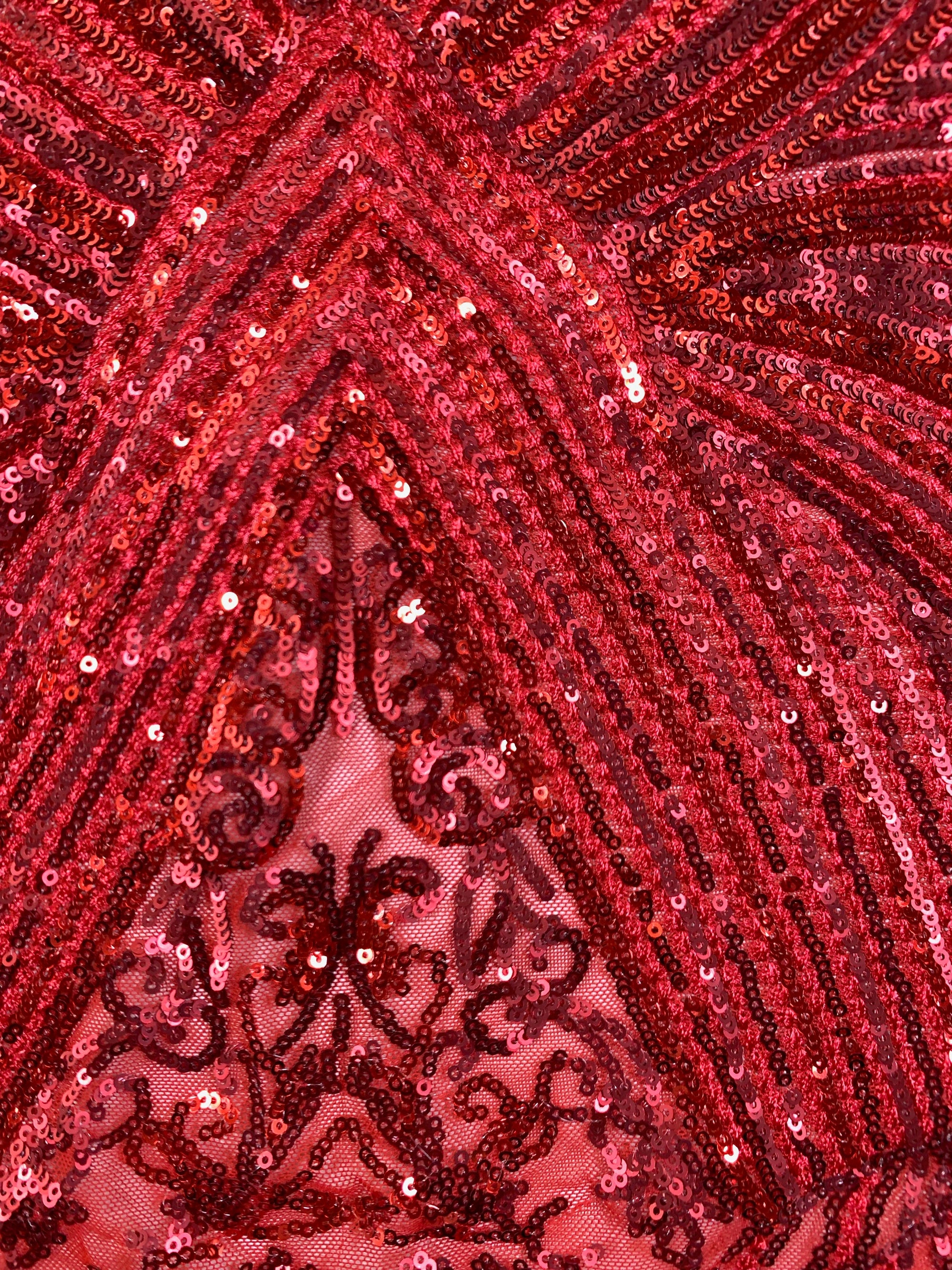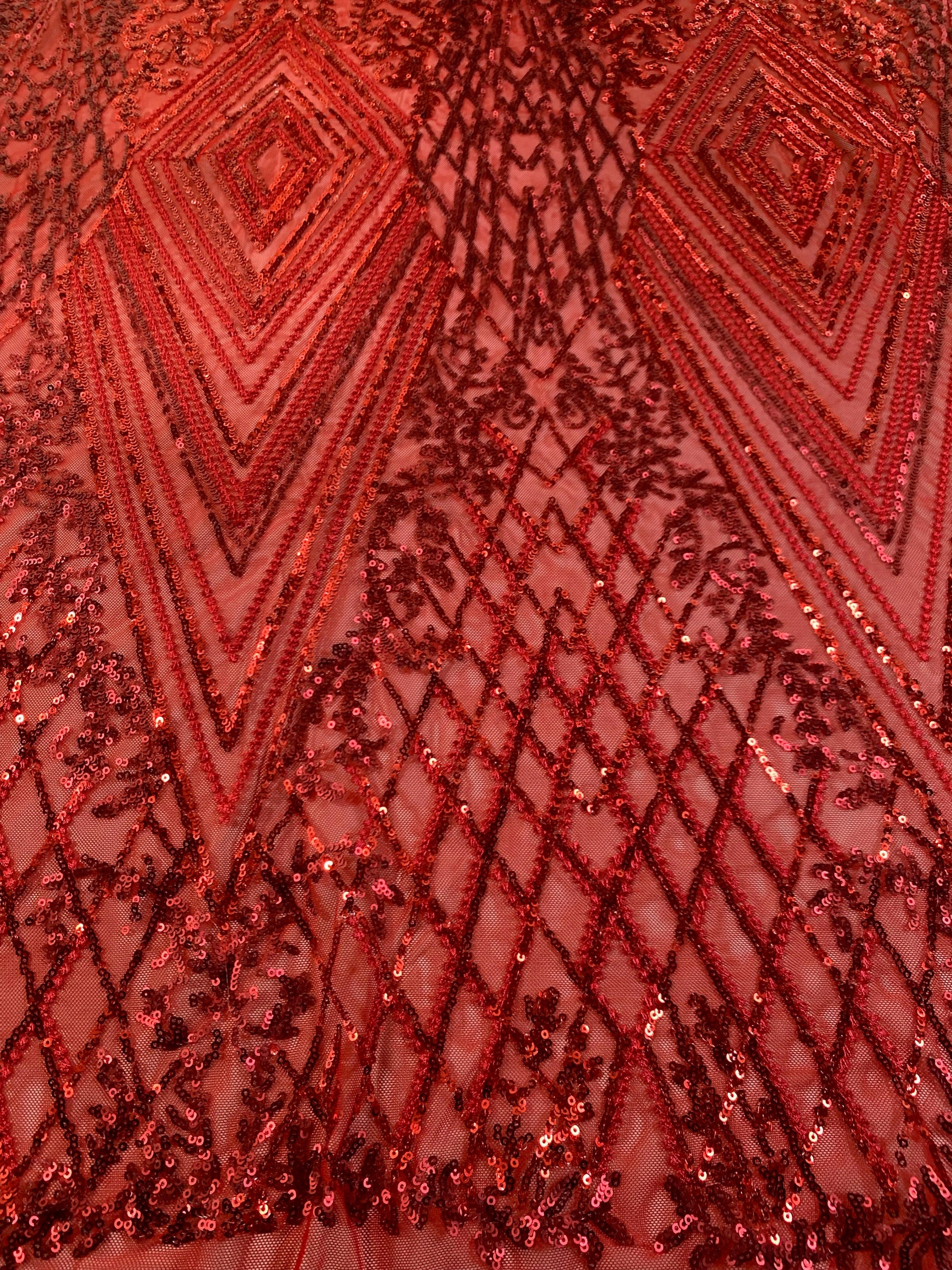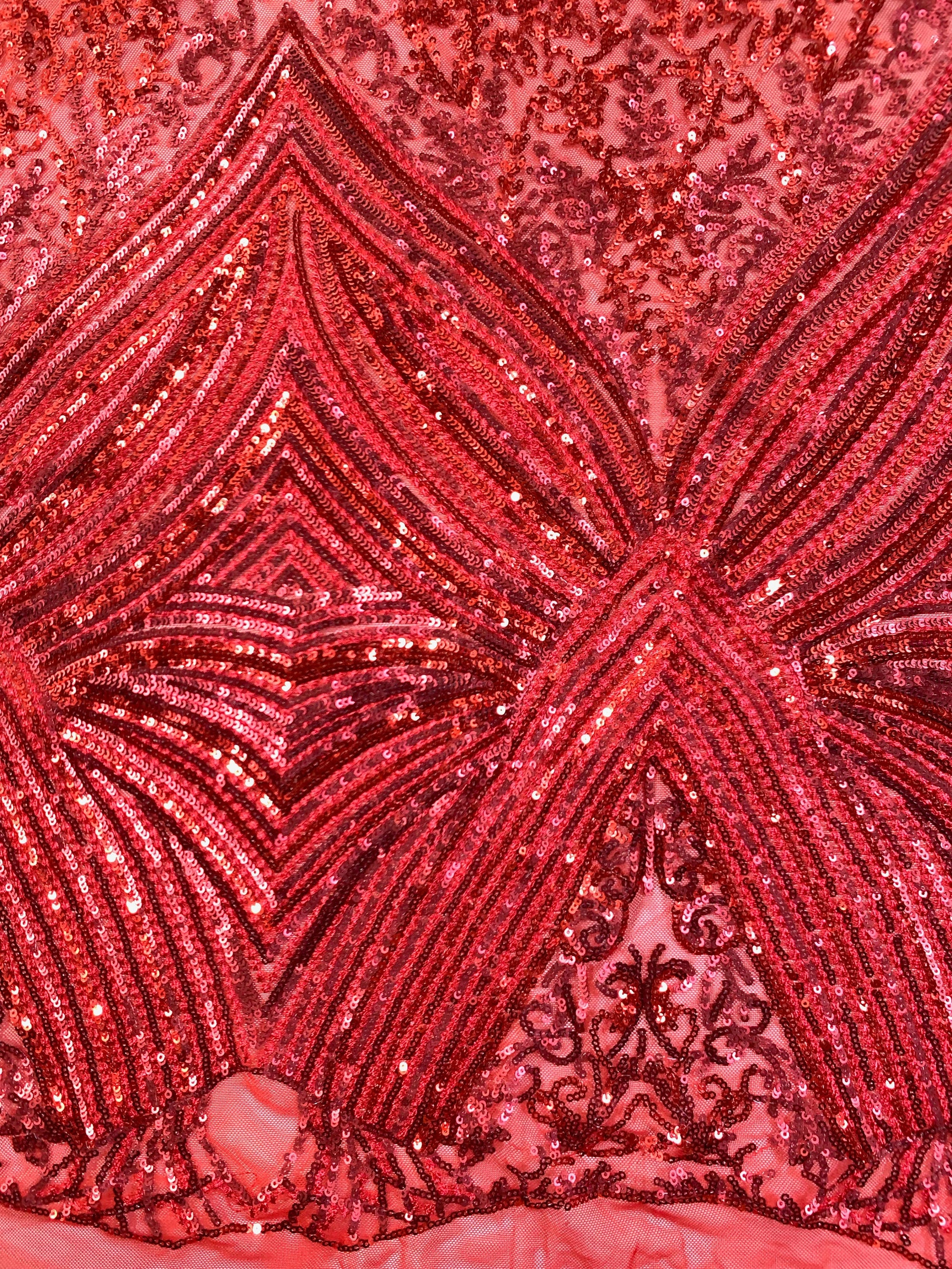 Averie RED Geometric Butterfly Sequins on Mesh Lace Fabric by the Yard - 10113