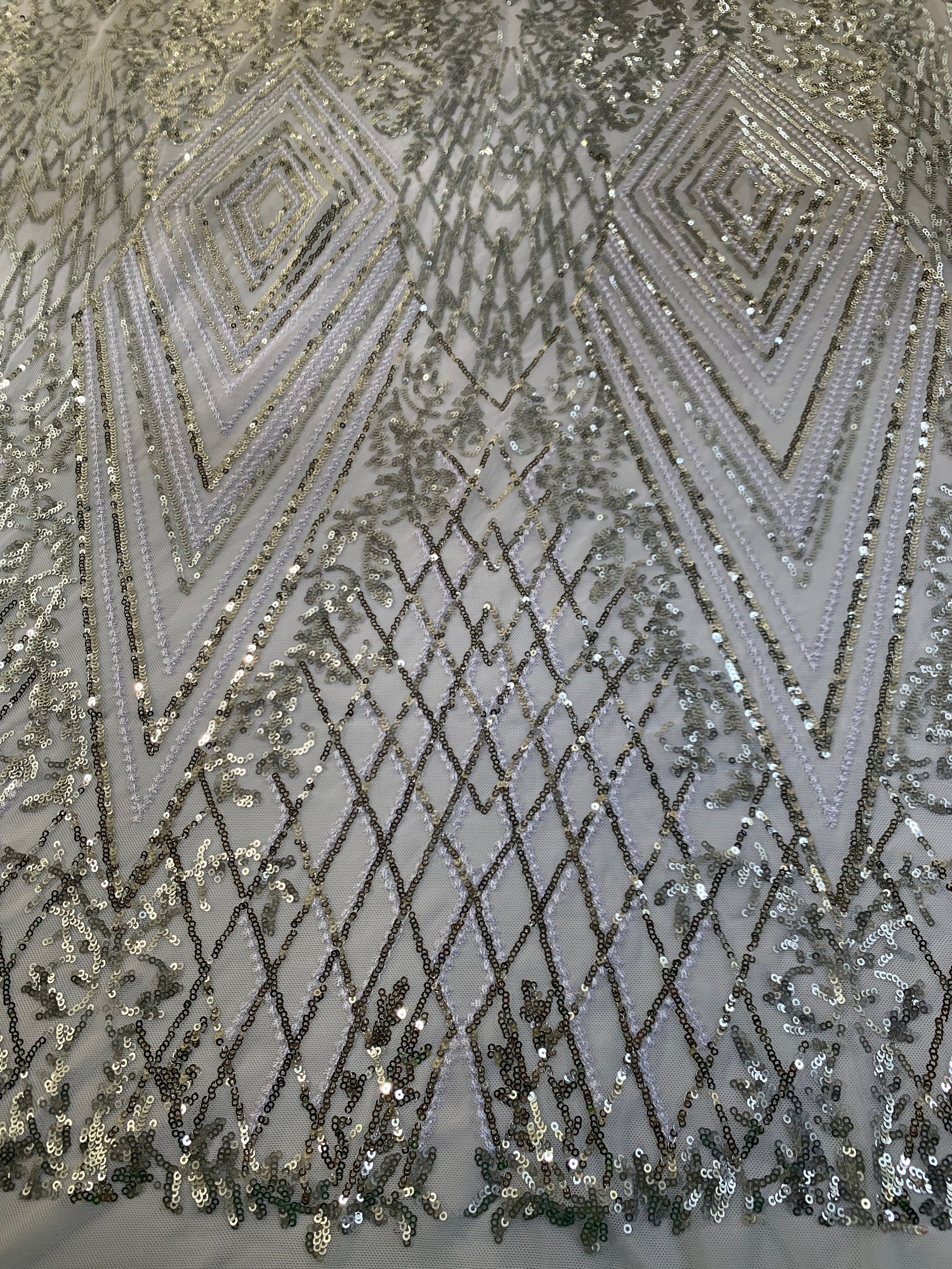 Averie SILVER Geometric Butterfly Sequins on Mesh Lace Fabric by the Yard - 10113