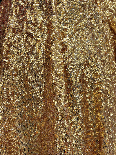 Bianca GOLD Allover Sequins on Mesh Fabric by the Yard - 10104