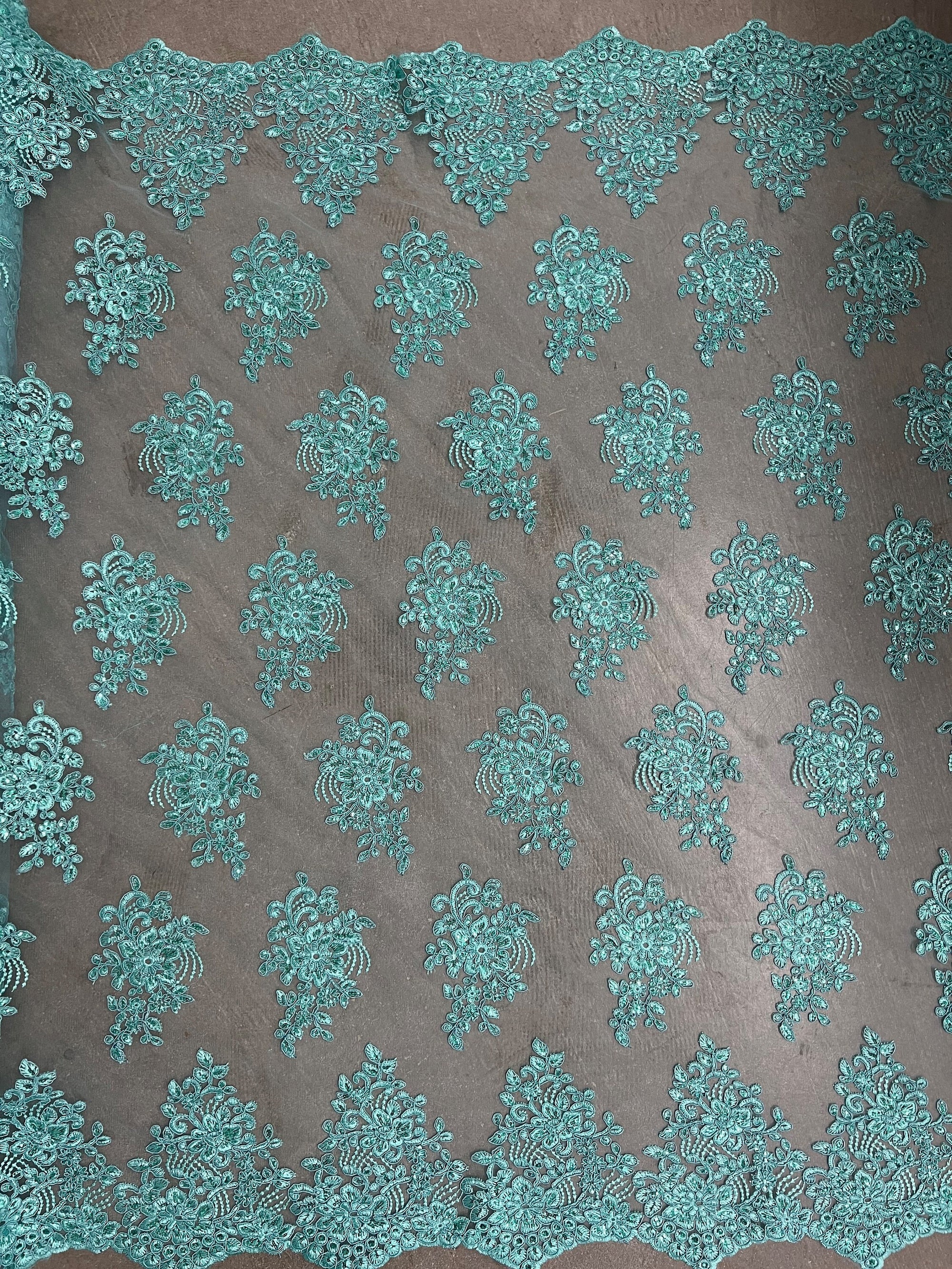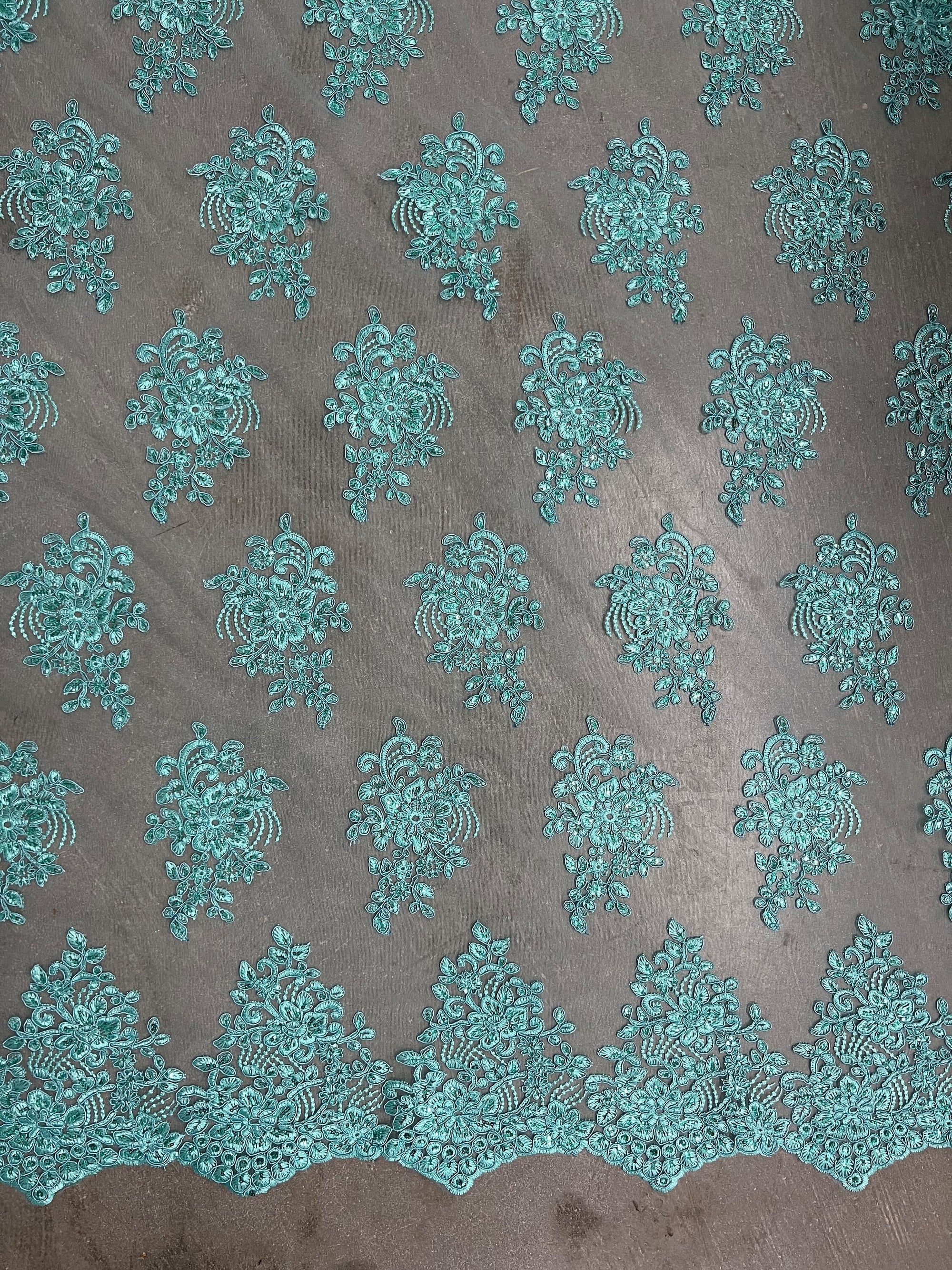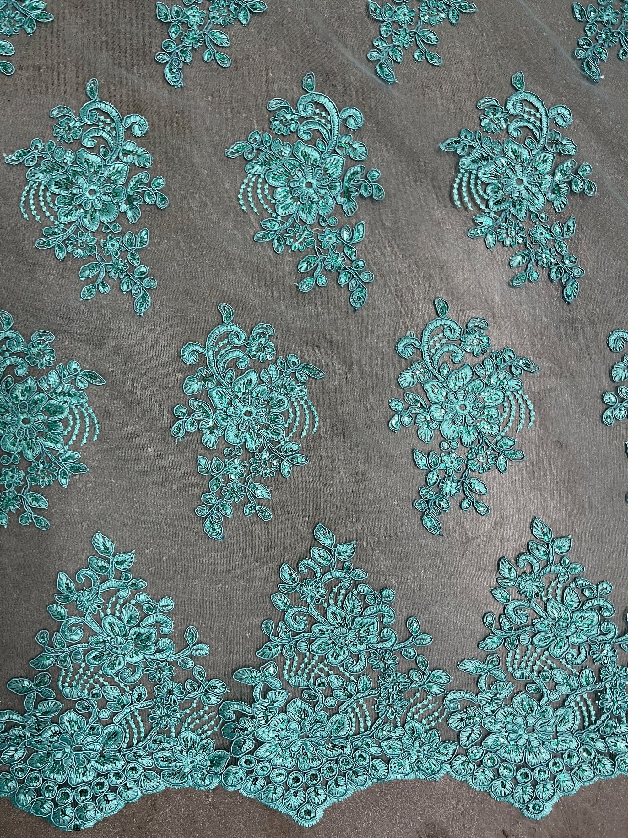 Brianna AQUA Polyester Floral Embroidery with Sequins on Mesh Lace Fabric by the Yard - 10002