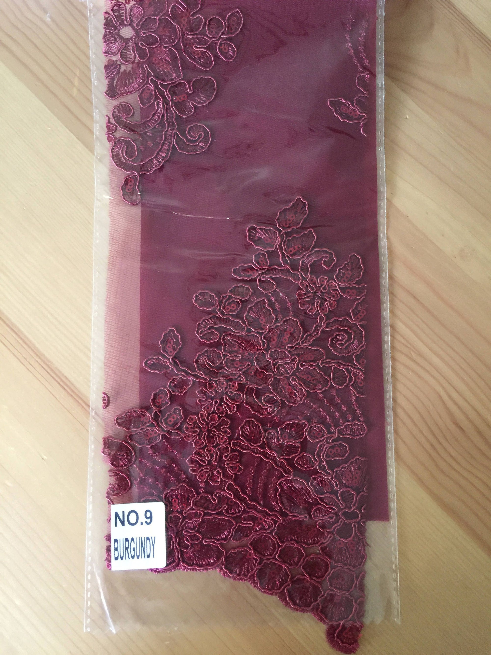 Brianna BURGUNDY Polyester Floral Embroidery with Sequins on Mesh Lace Fabric by the Yard - 10020