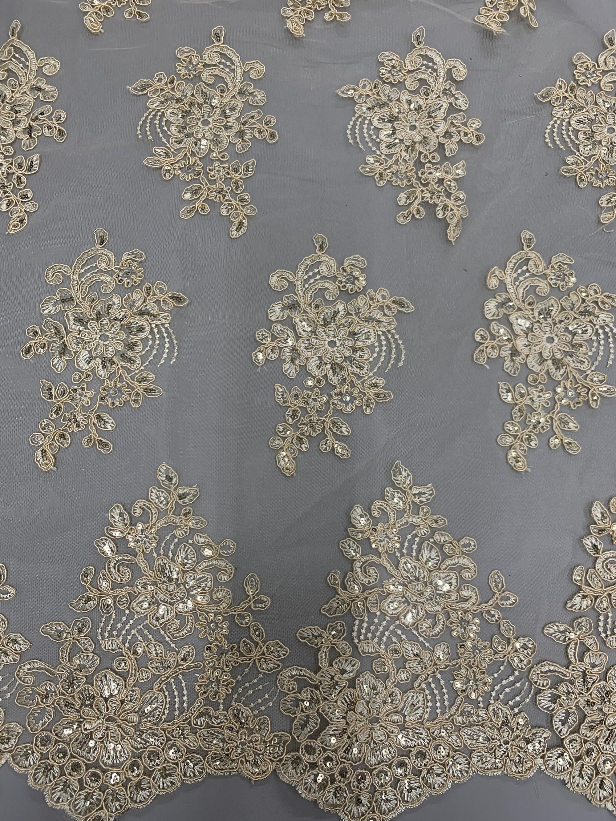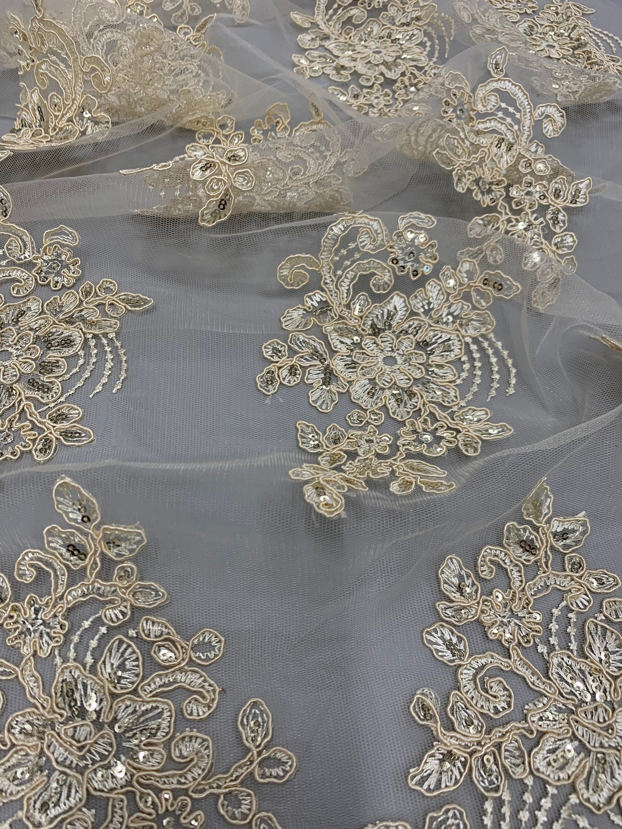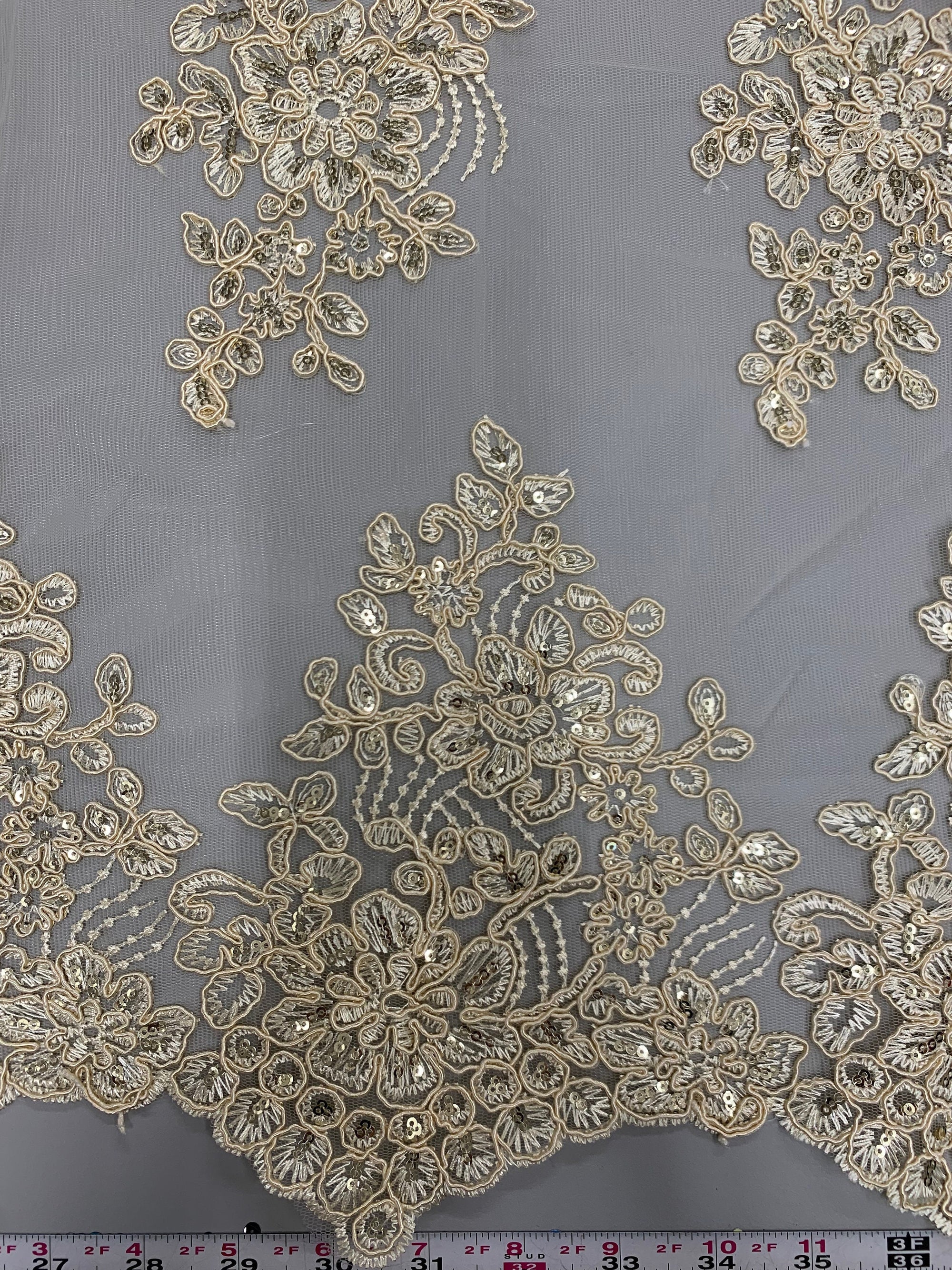Brianna CREAM Polyester Floral Embroidery with Sequins on Mesh Lace Fabric by the Yard - 10002