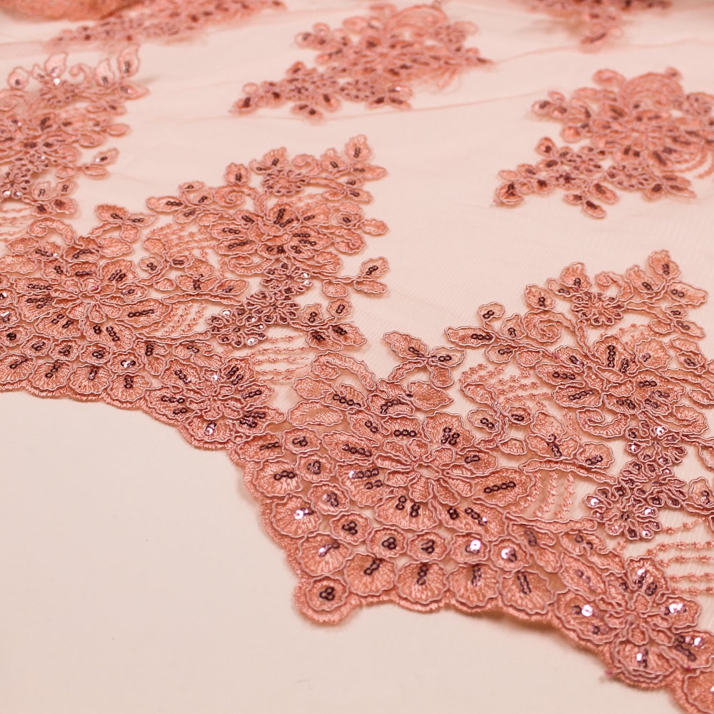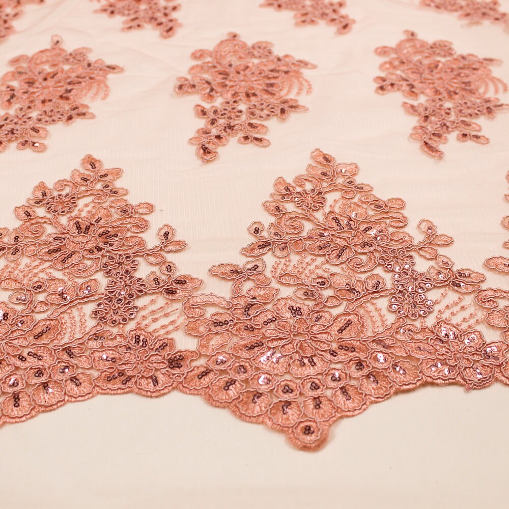 Brianna DARK CORAL Polyester Floral Embroidery with Sequins on Mesh Lace Fabric by the Yard - 10020