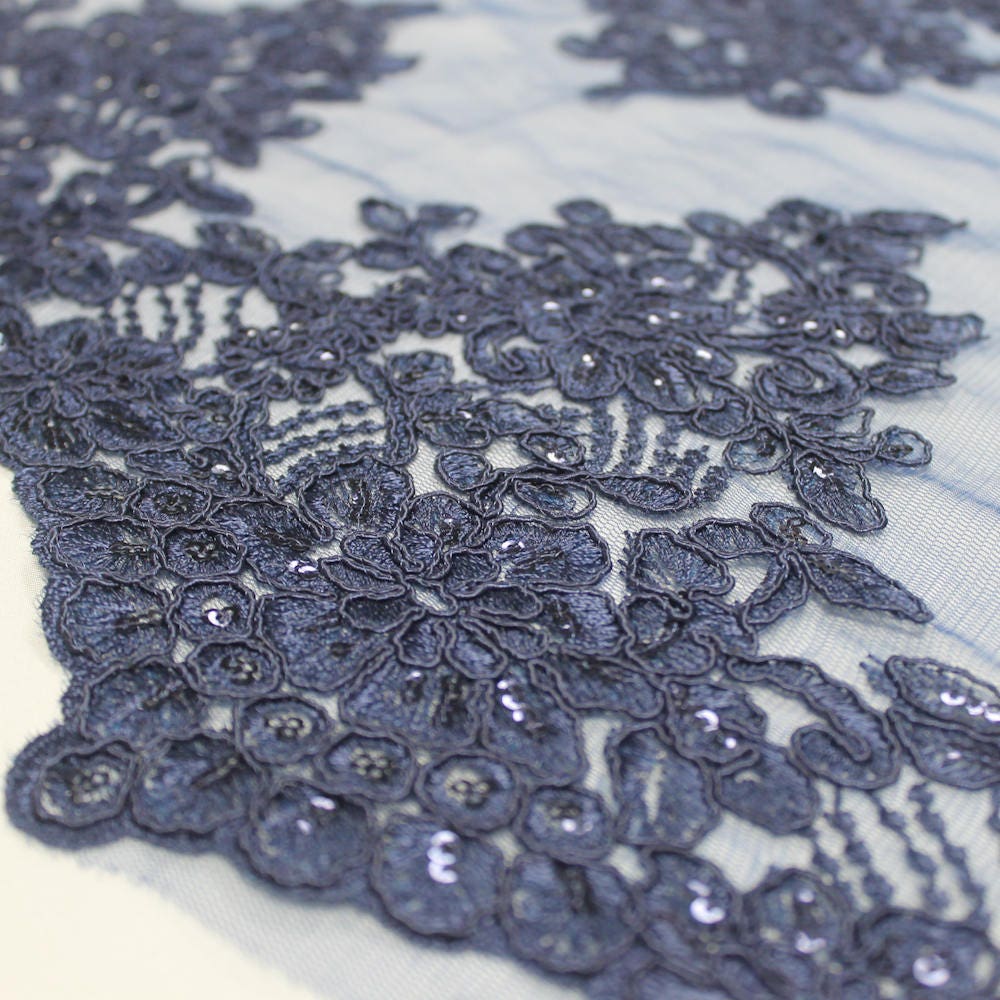 Brianna NAVY BLUE Polyester Floral Embroidery with Sequins on Mesh Lace Fabric by the Yard - 10002