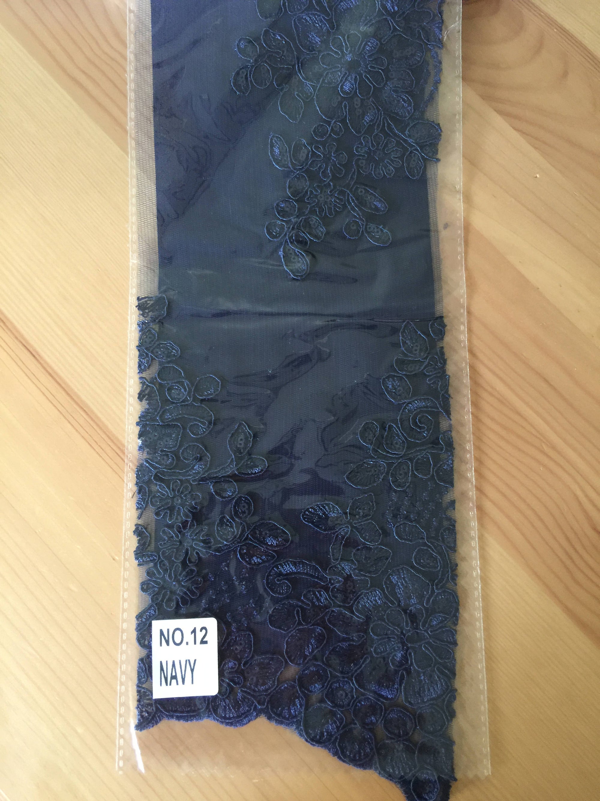 Brianna NAVY BLUE Polyester Floral Embroidery with Sequins on Mesh Lace Fabric by the Yard - 10020