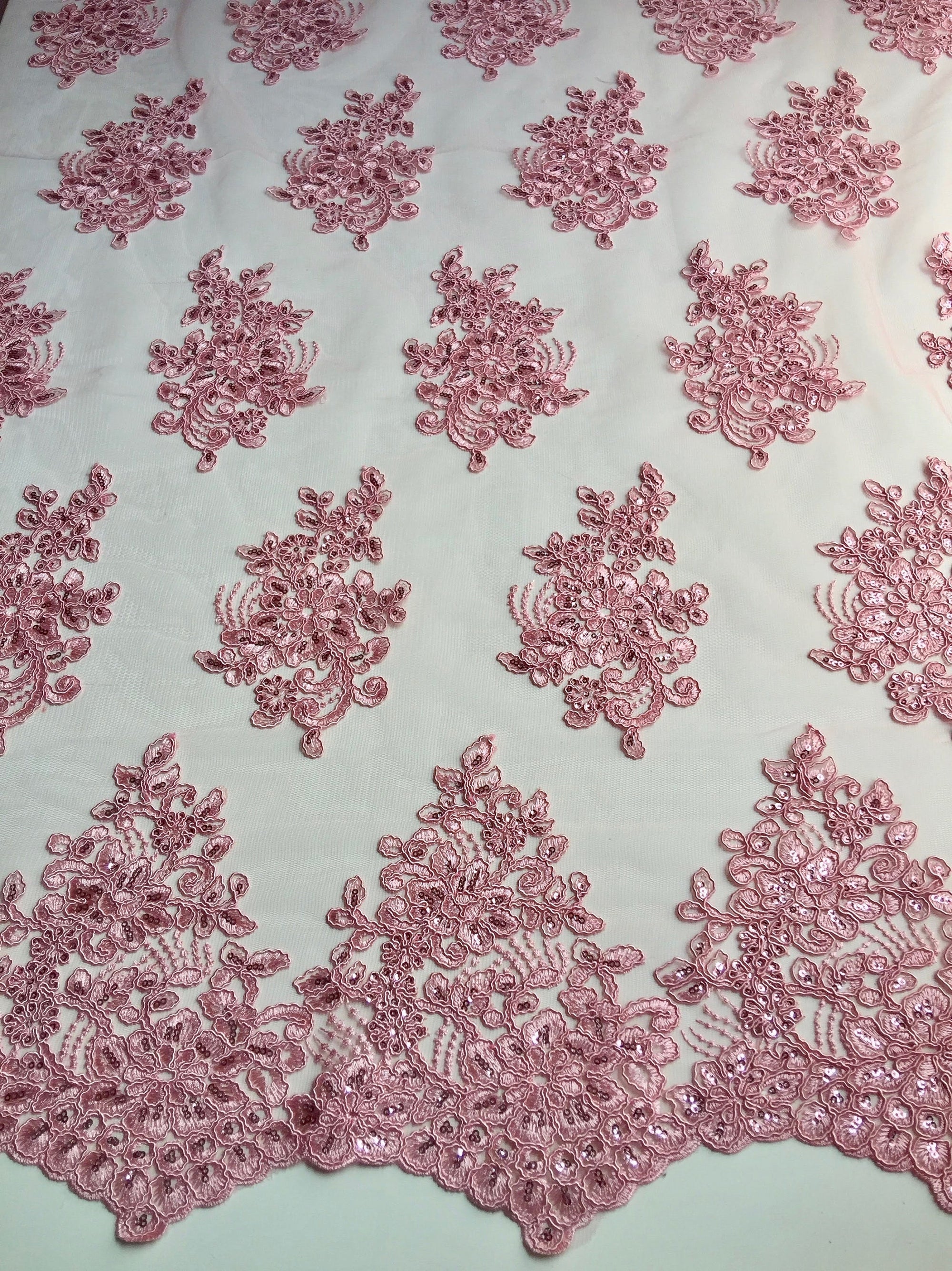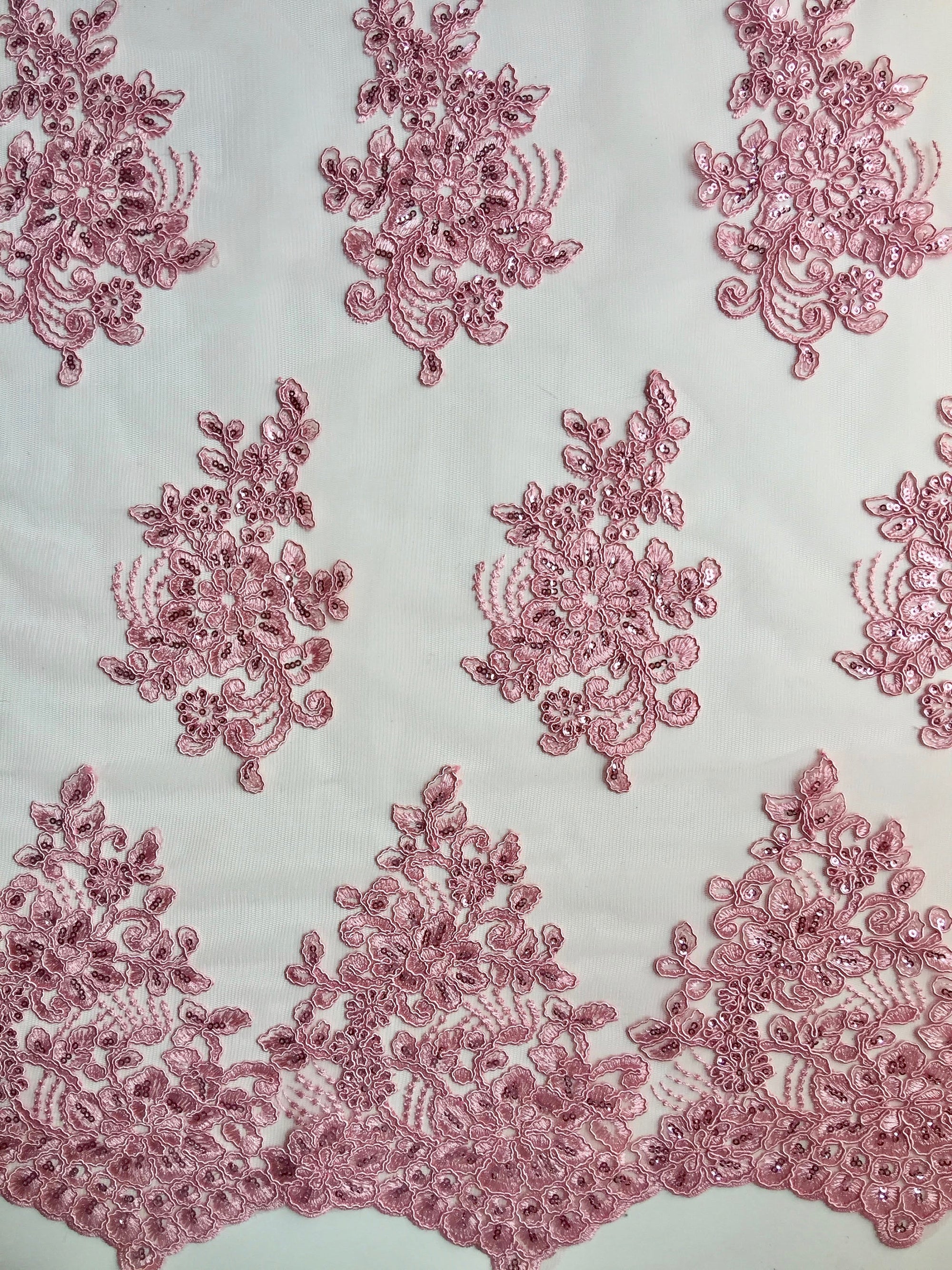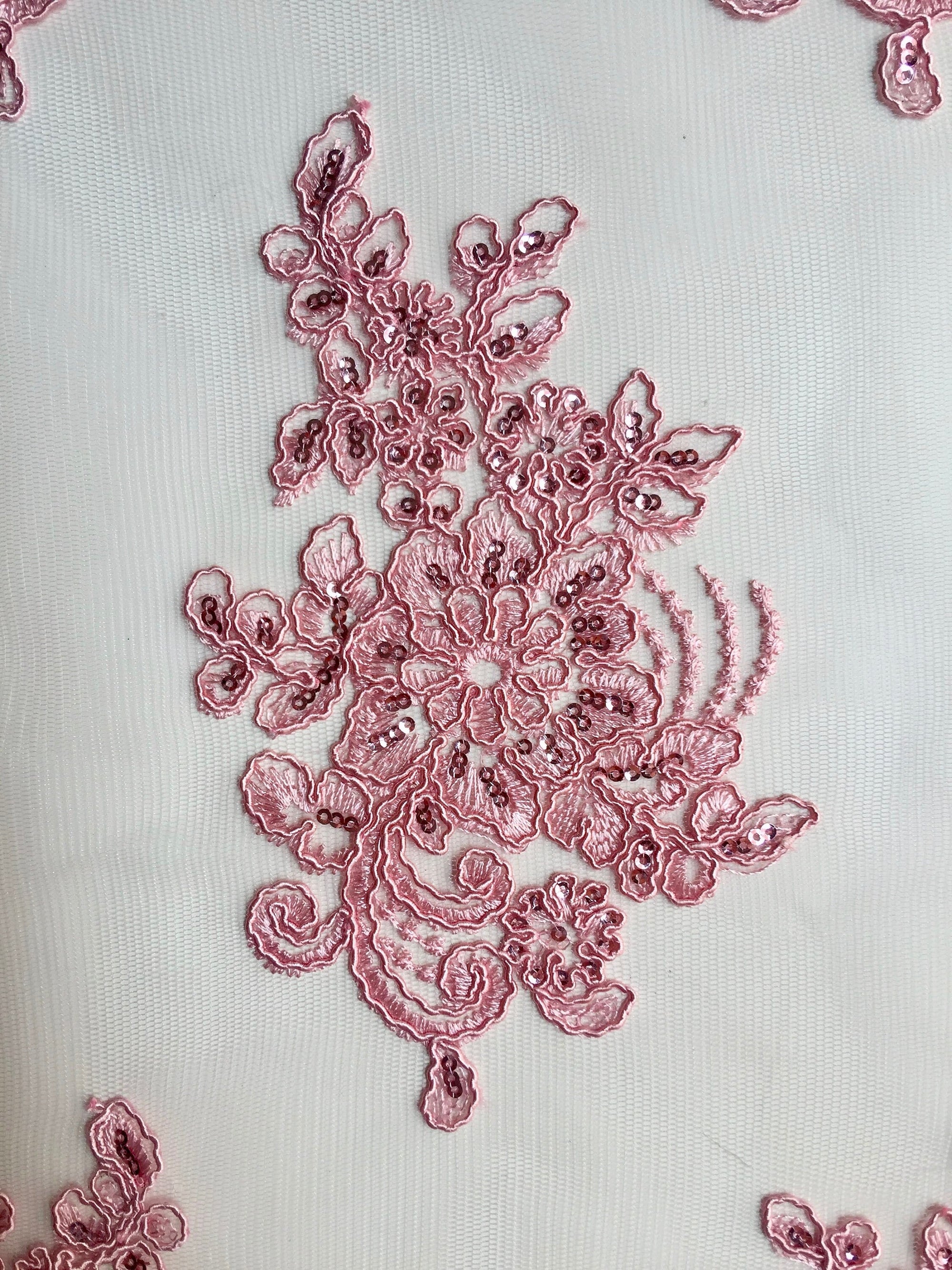 Brianna PINK Polyester Floral Embroidery with Sequins on Mesh Lace Fabric by the Yard - 10002
