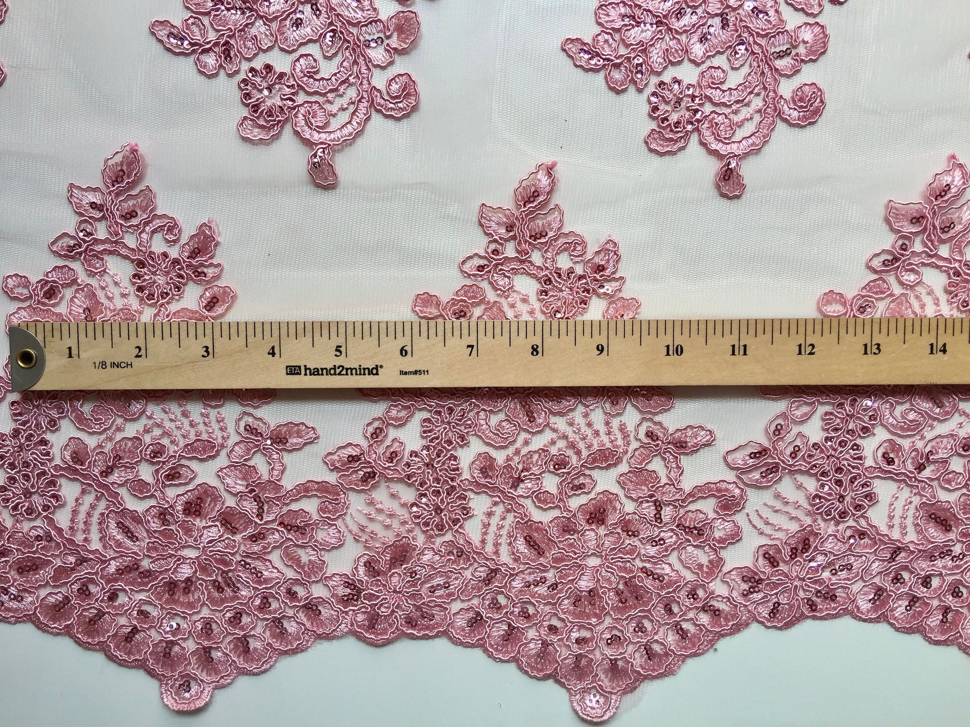 Brianna PINK Polyester Floral Embroidery with Sequins on Mesh Lace Fabric by the Yard - 10020