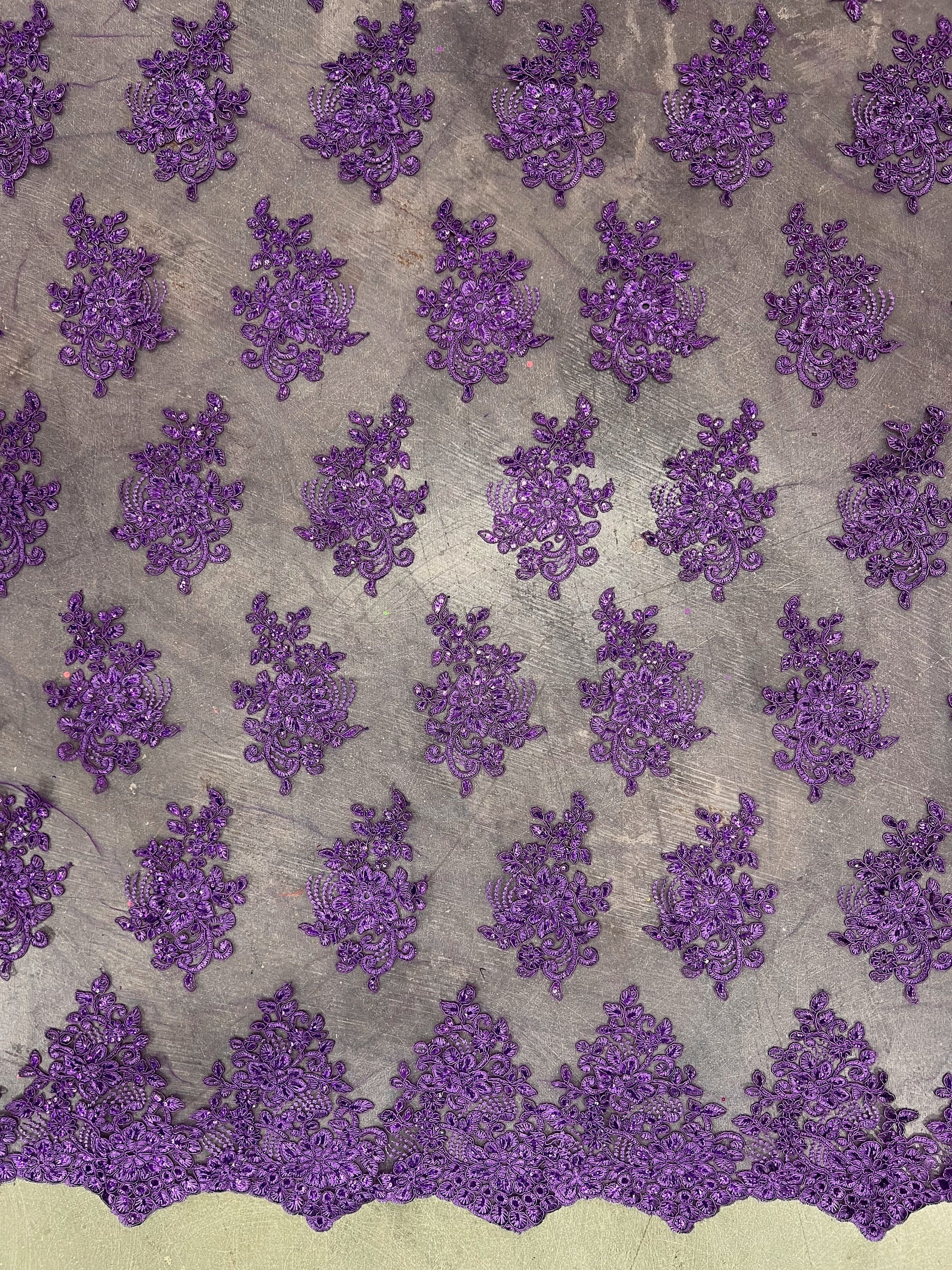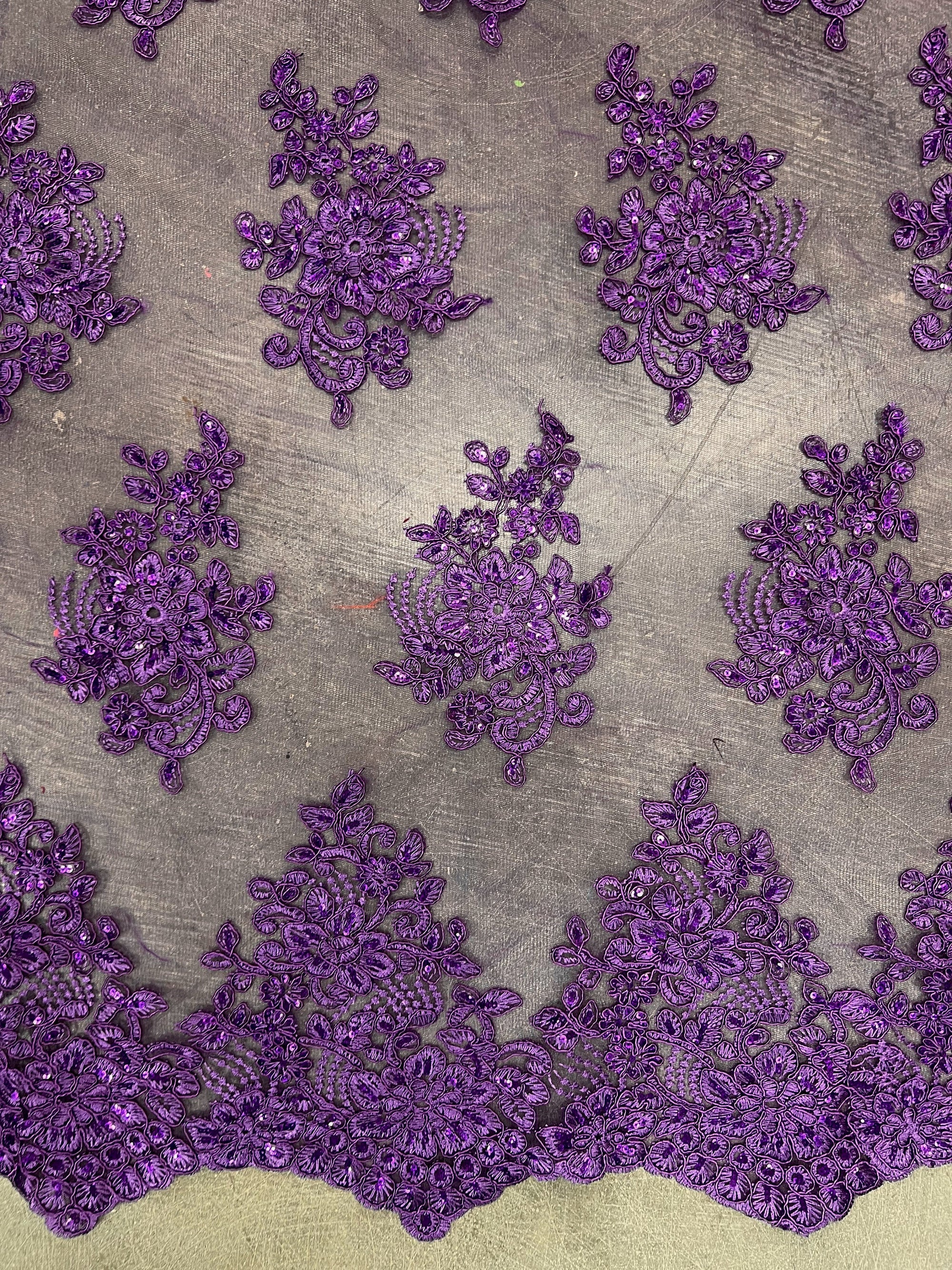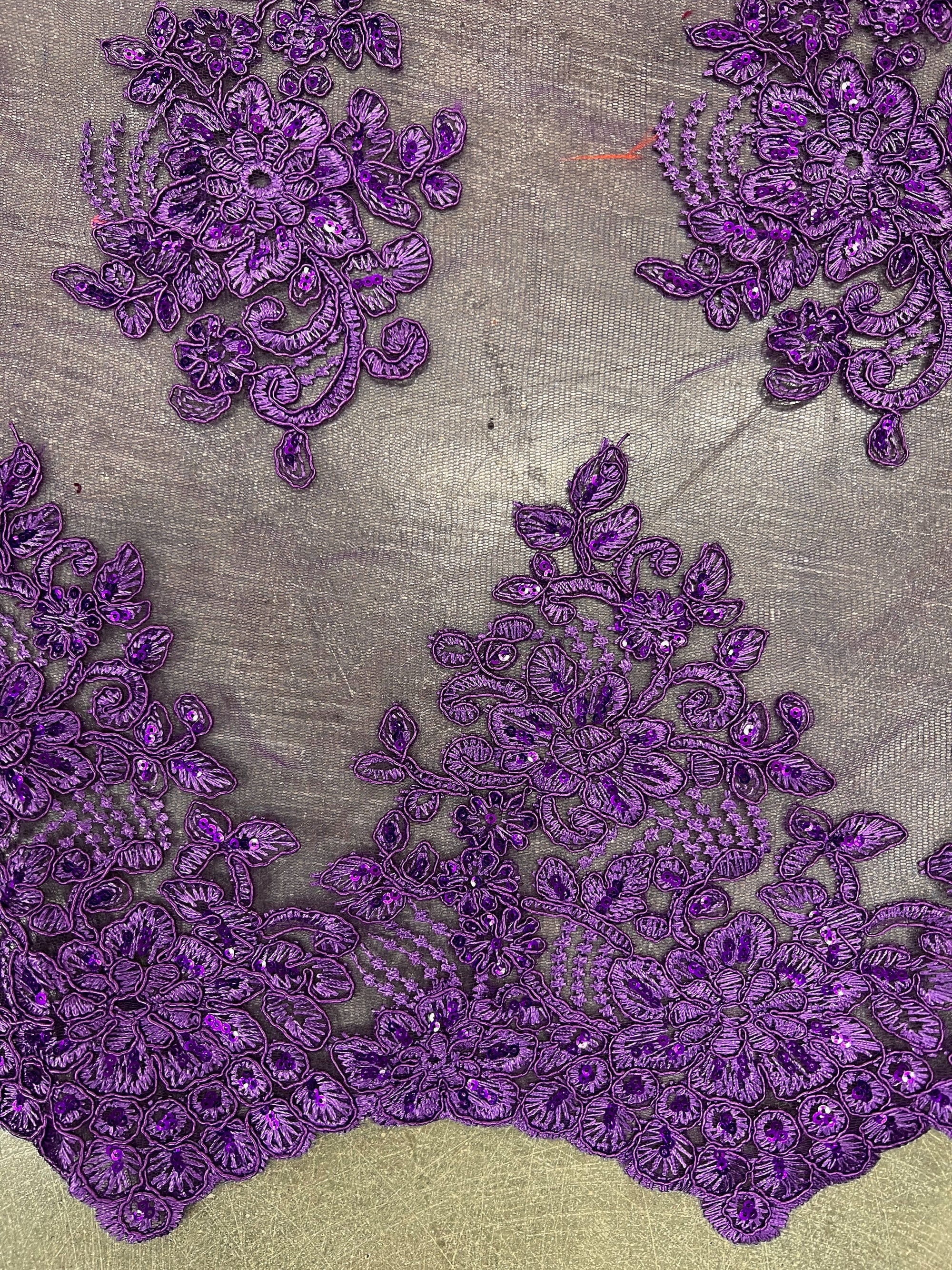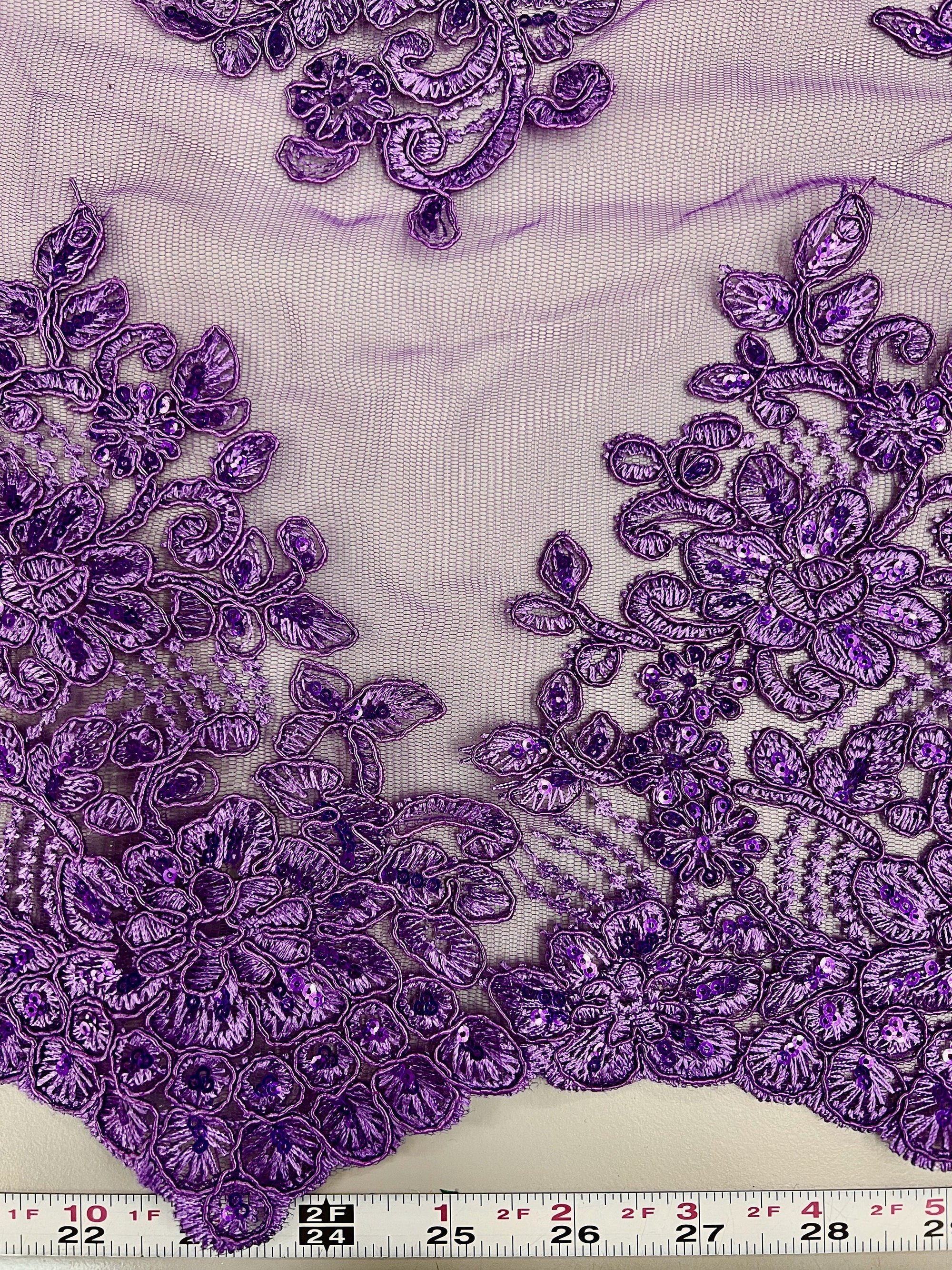 Brianna PURPLE Polyester Floral Embroidery with Sequins on Mesh Lace Fabric by the Yard - 10002