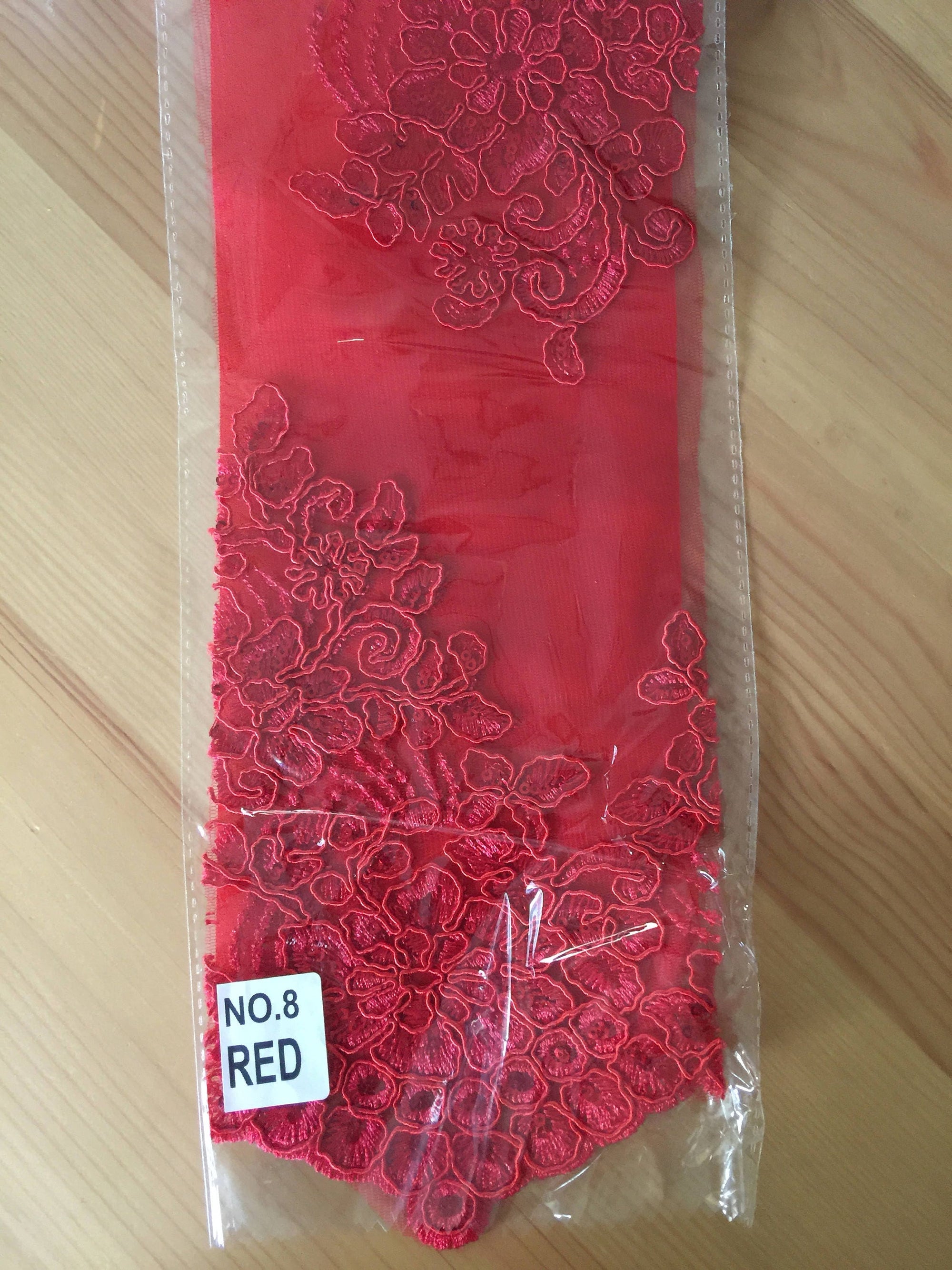 Brianna RED Polyester Floral Embroidery with Sequins on Mesh Lace Fabric by the Yard - 10002