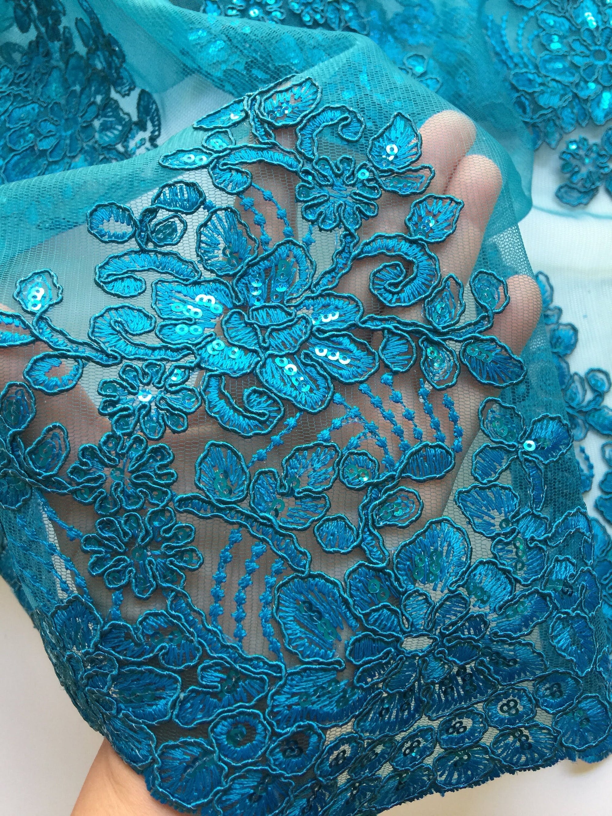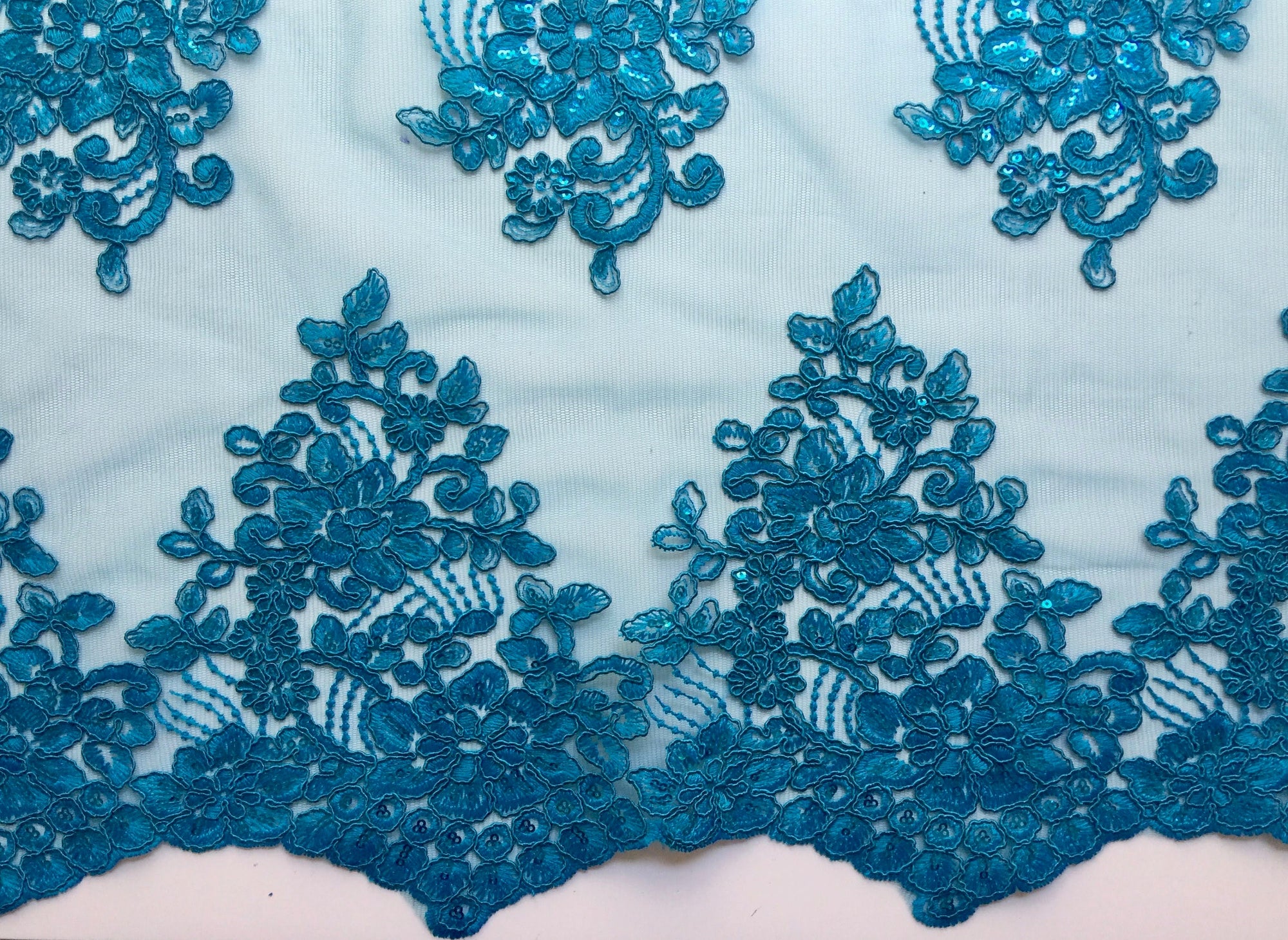 Brianna TURQUOISE Polyester Floral Embroidery with Sequins on Mesh Lace Fabric by the Yard - 10020