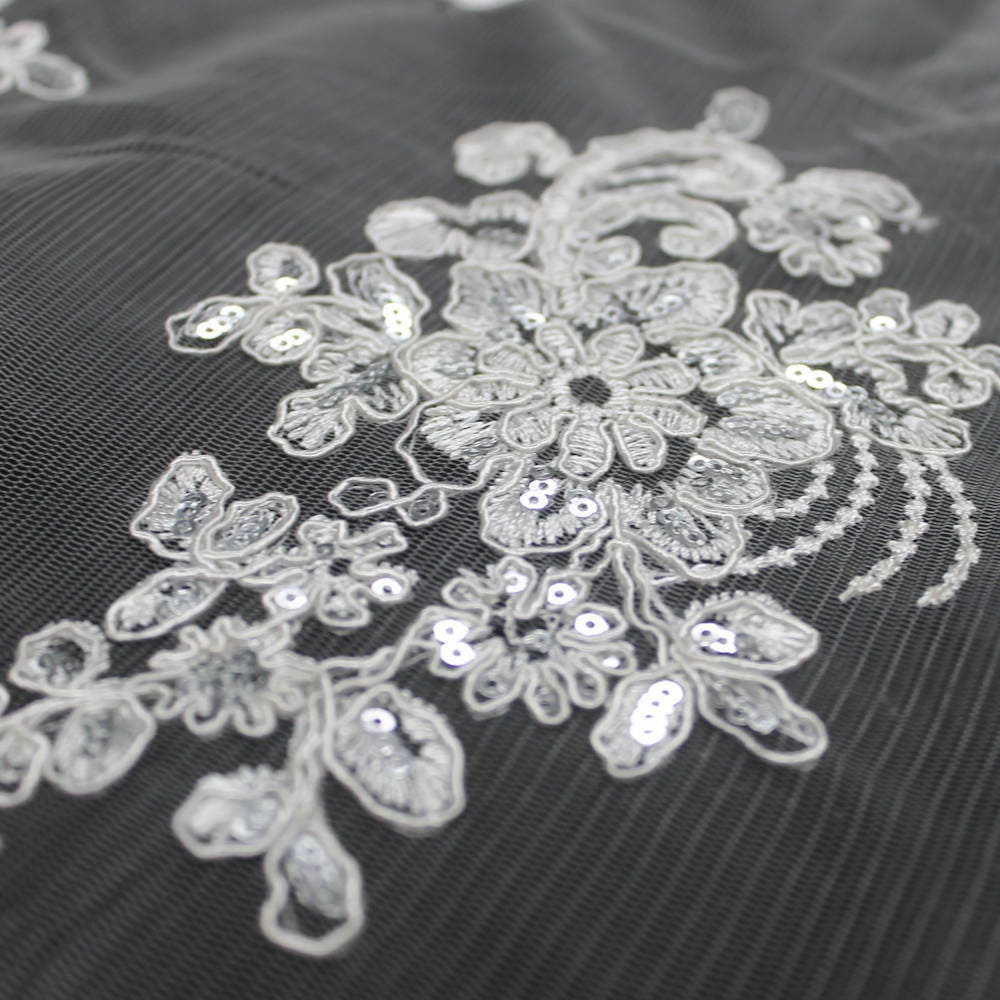 Brianna WHITE Polyester Floral Embroidery with Sequins on Mesh Lace Fabric by the Yard - 10002