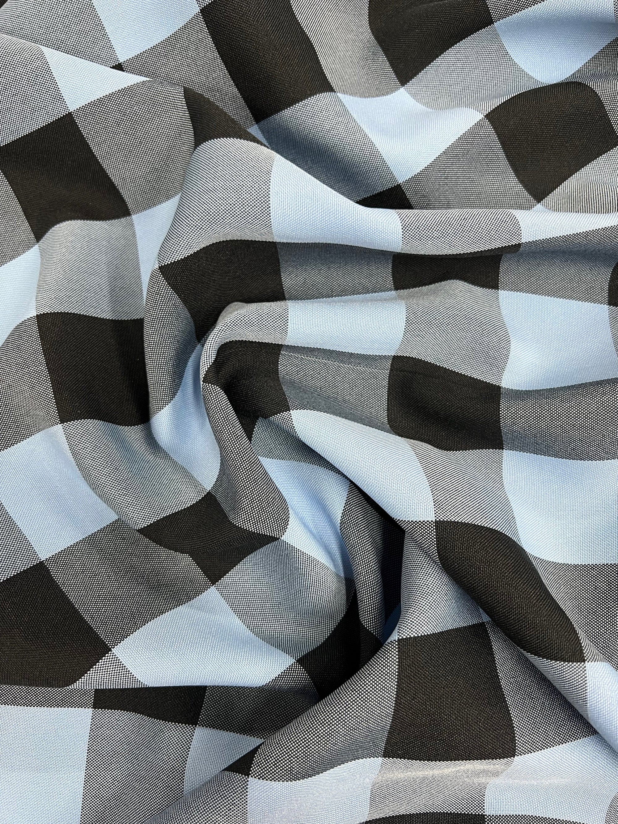 Camille LIGHT BLUE BLACK 1.5" Big Checkered Gingham Pattern Poly Poplin Fabric by the Yard - 10049