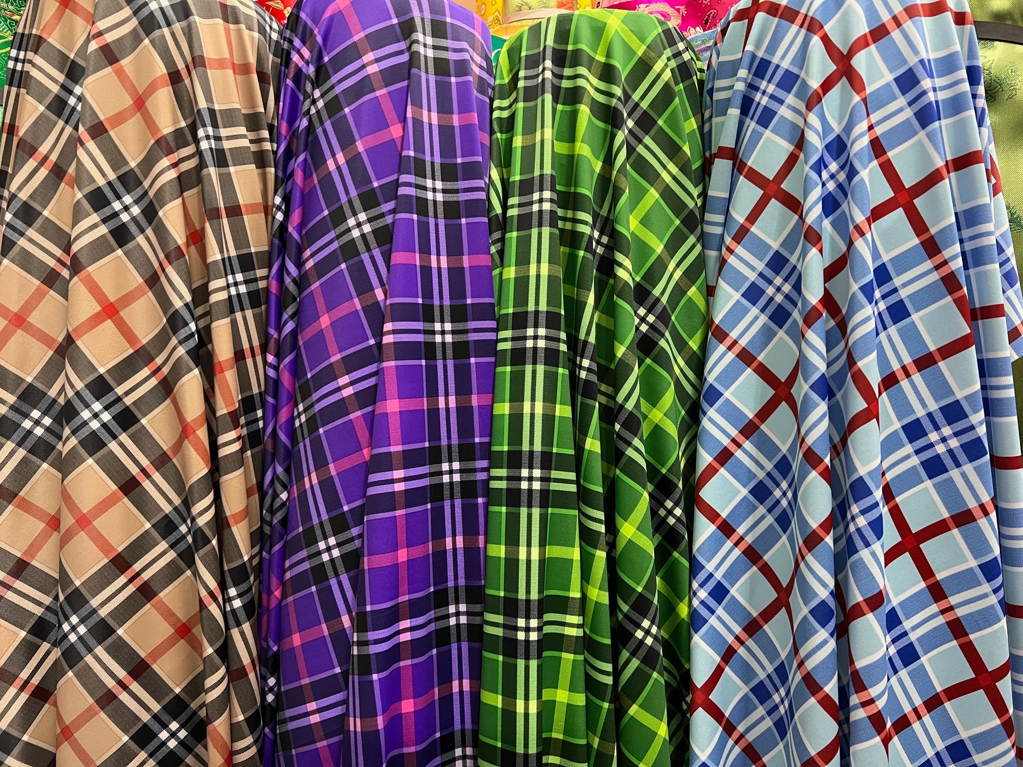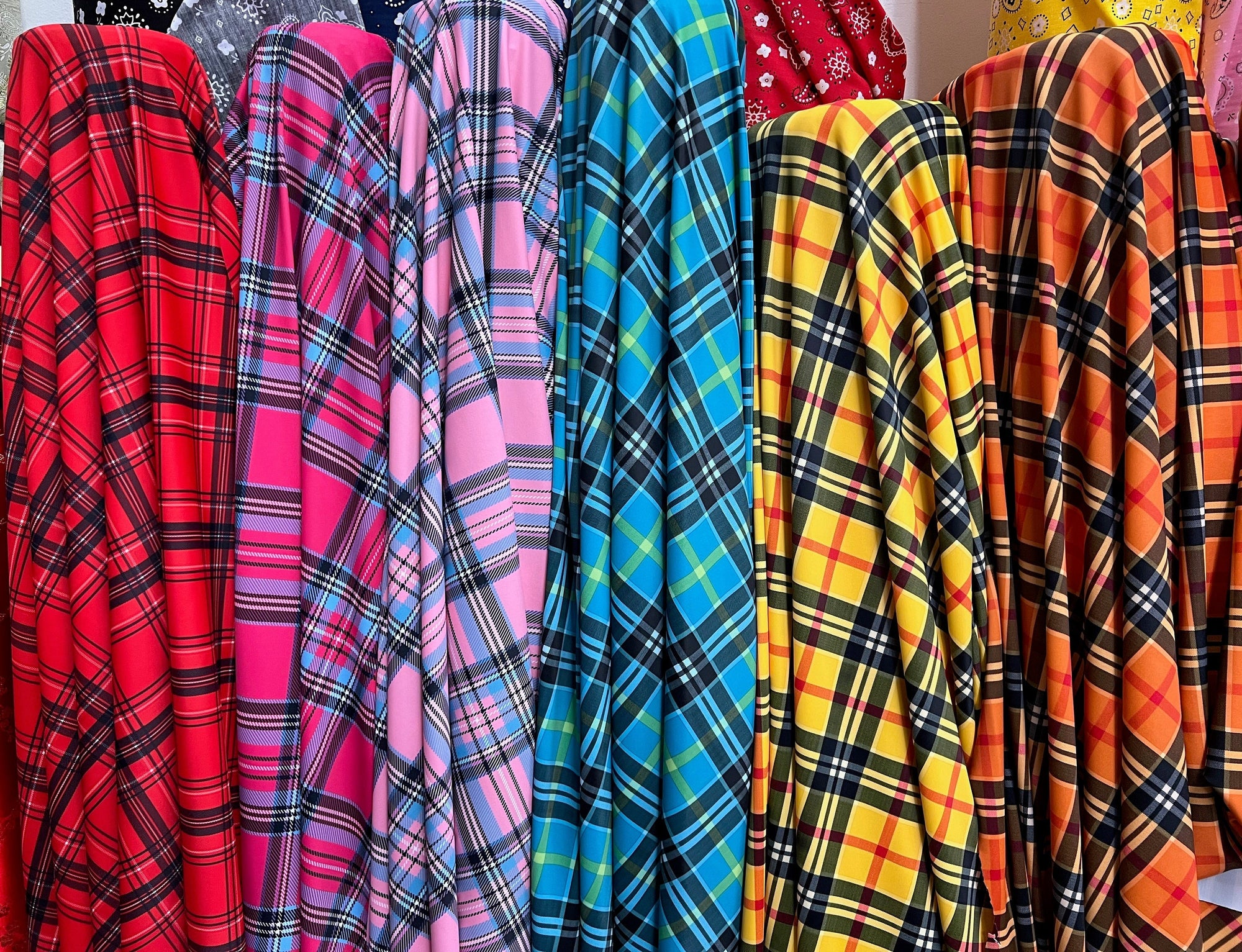 Clementine FUCHSIA Plaid Printed Nylon Spandex 4-way Stretch Medium Weight Fabric for Apparel, Swimwear, Activewear, Costumes, Crafts