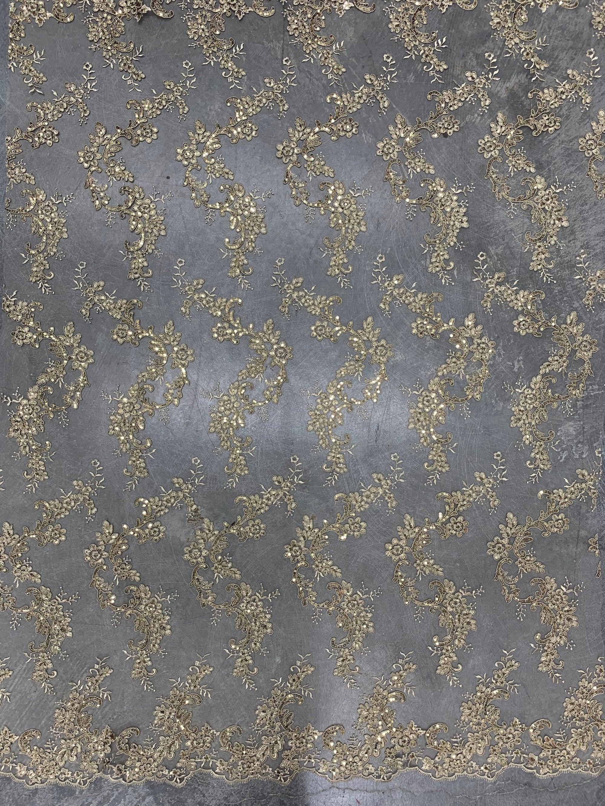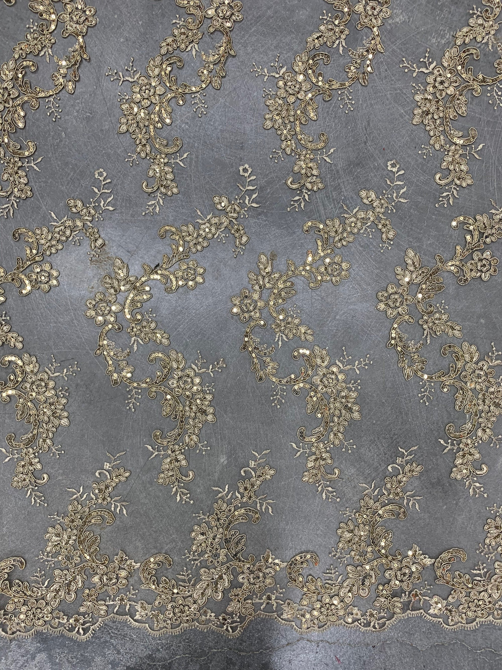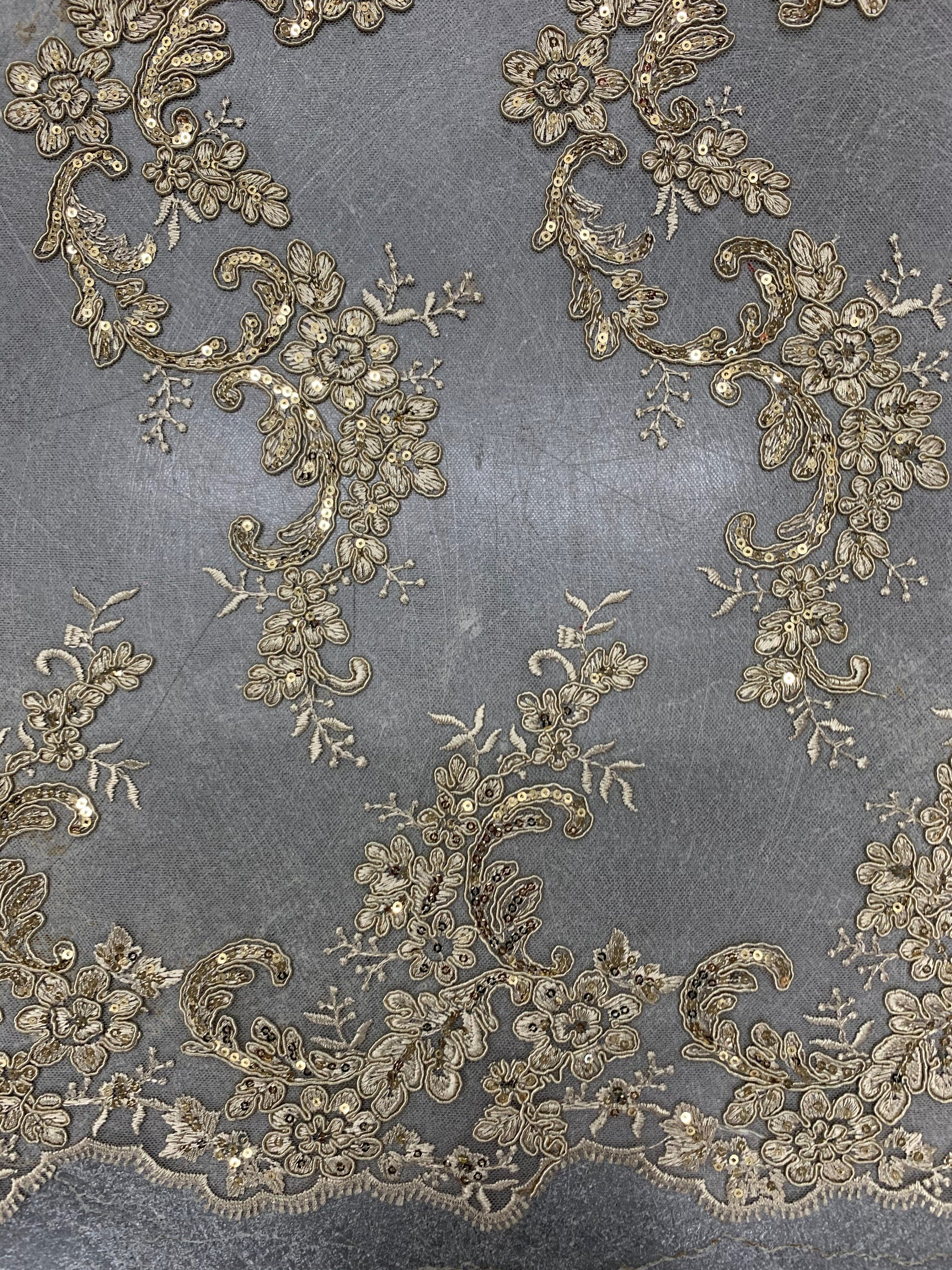 Cristina CHAMPAGNE Polyester Floral Embroidery with Sequins on Mesh Lace Fabric by the Yard for Gown, Wedding, Bridesmaid, Prom - 10076