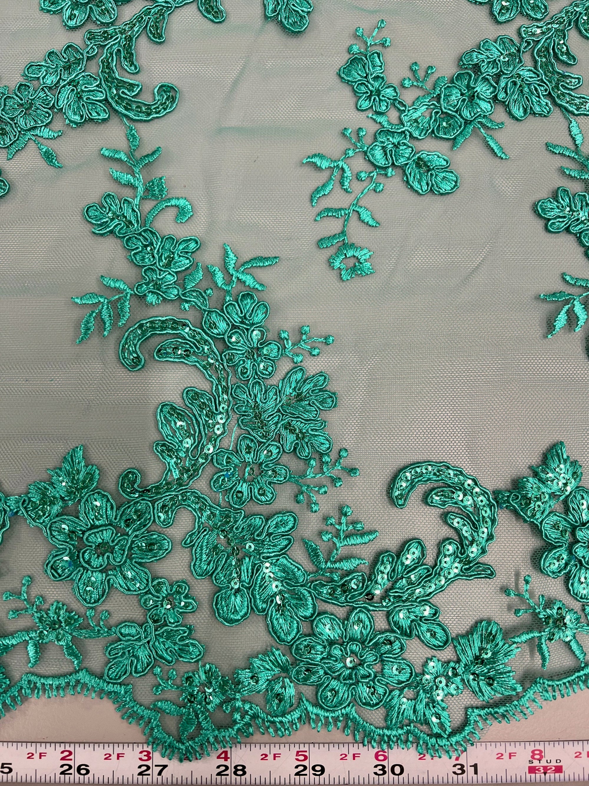 Cristina KELLY GREEN Polyester Floral Embroidery with Sequins on Mesh Lace Fabric by the Yard for Gown, Wedding, Bridesmaid, Prom - 10076
