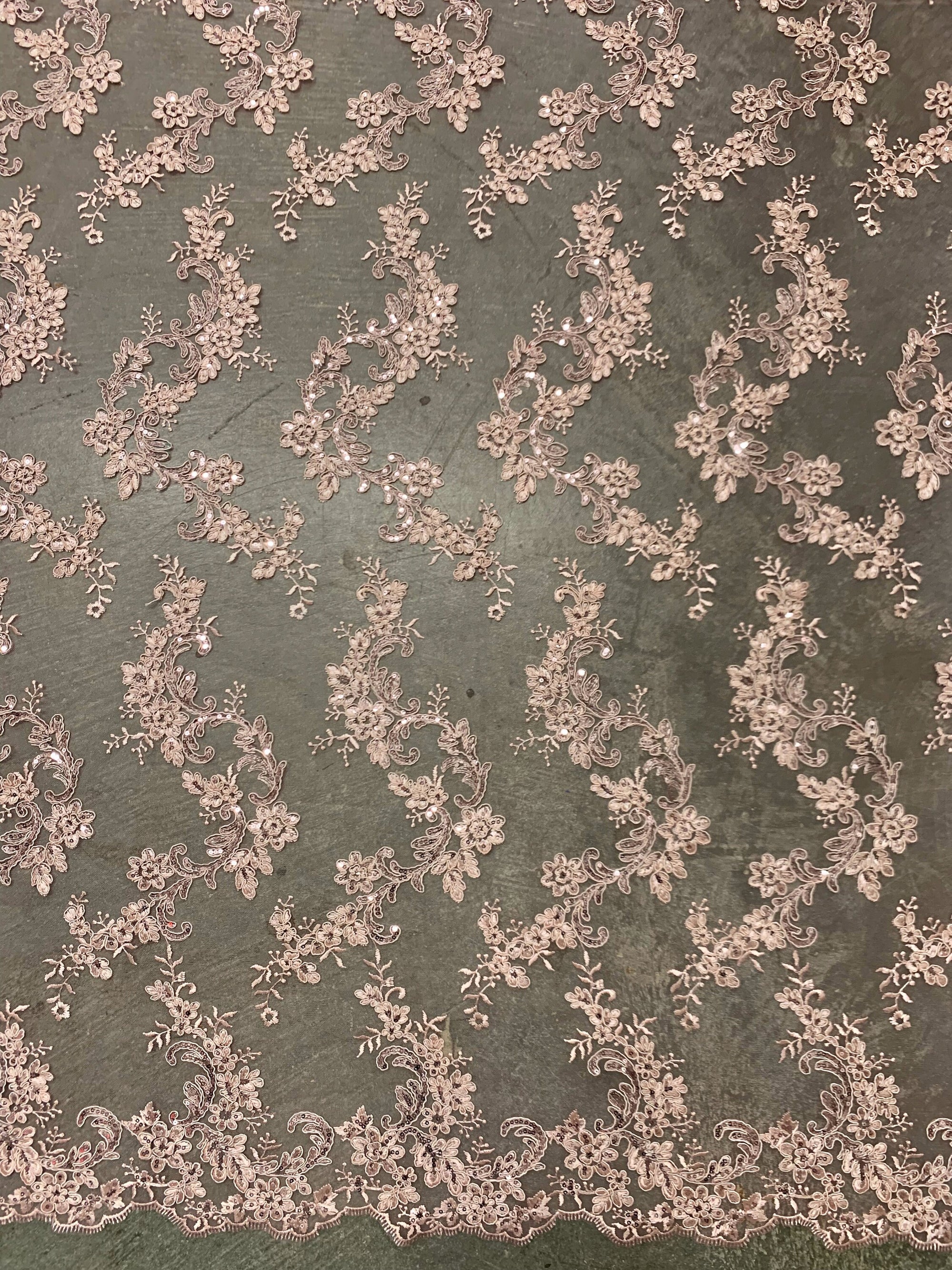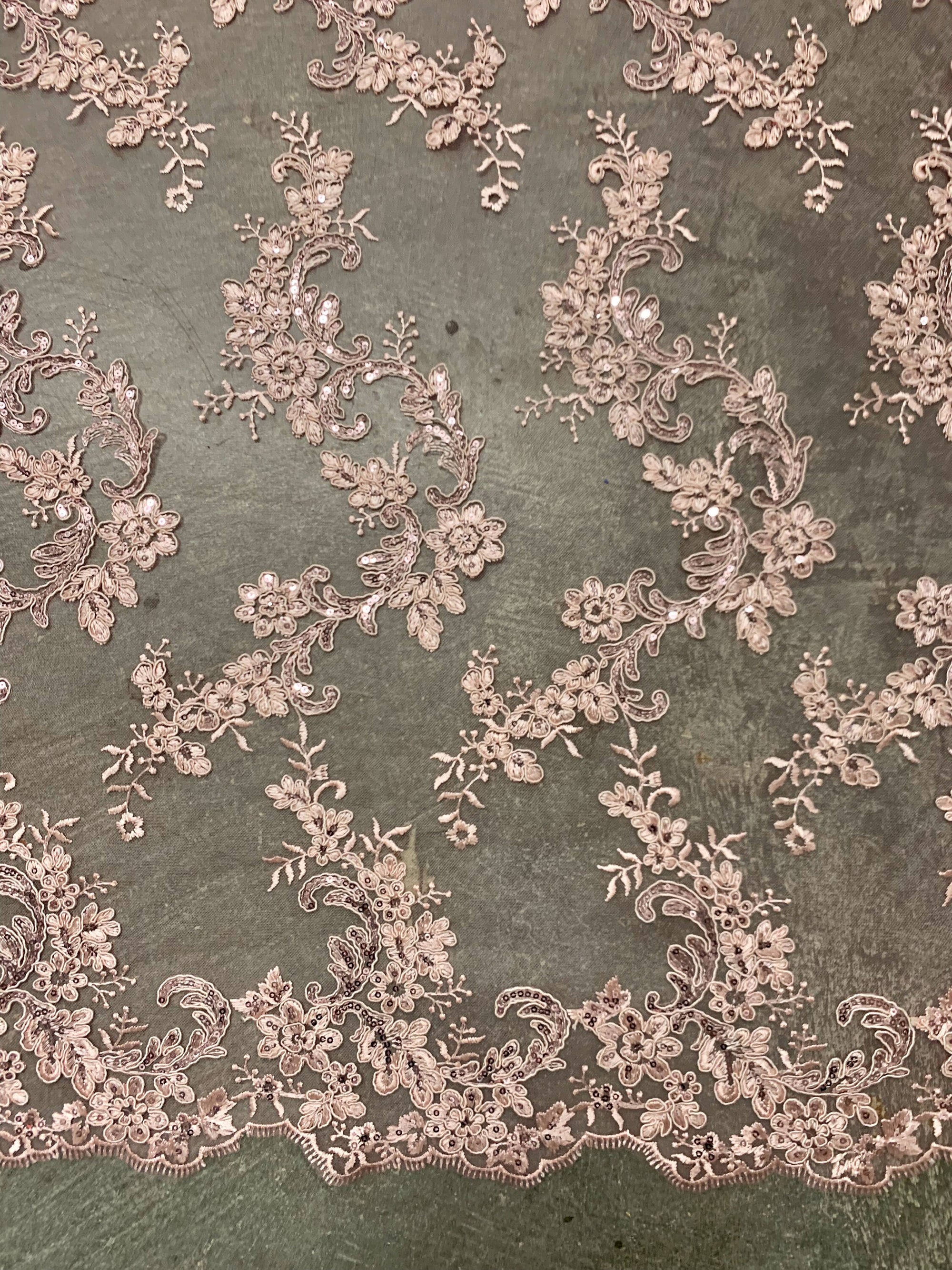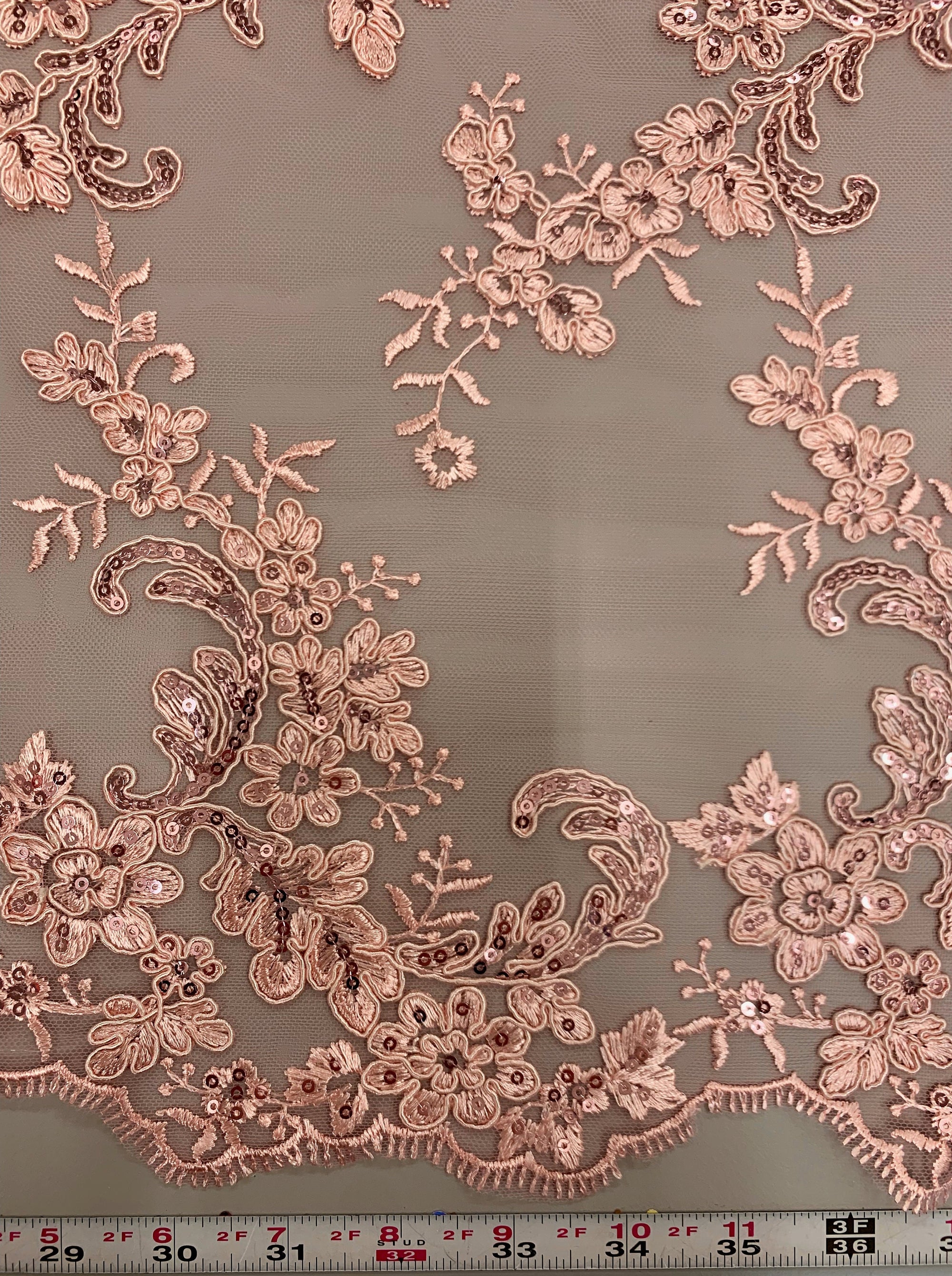Cristina LIGHT PINK Polyester Floral Embroidery with Sequins on Mesh Lace Fabric by the Yard for Gown, Wedding, Bridesmaid, Prom - 10076