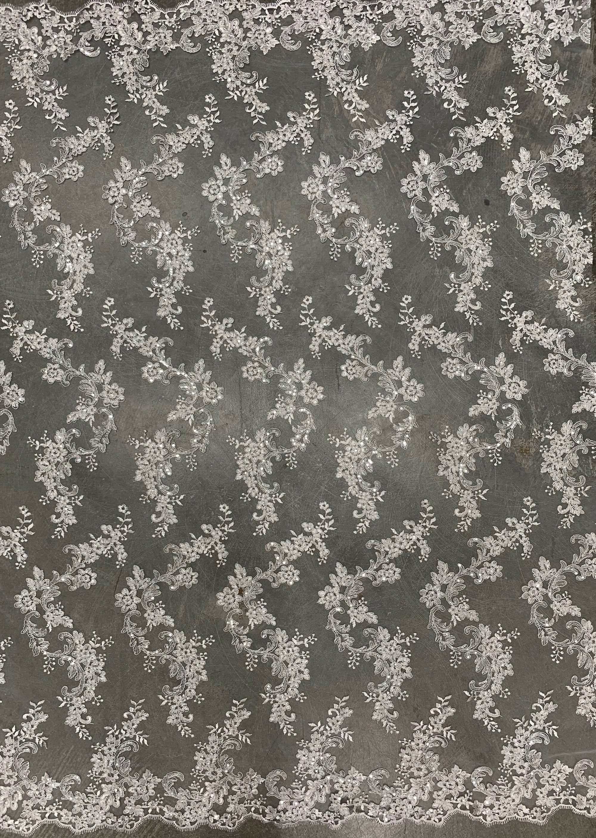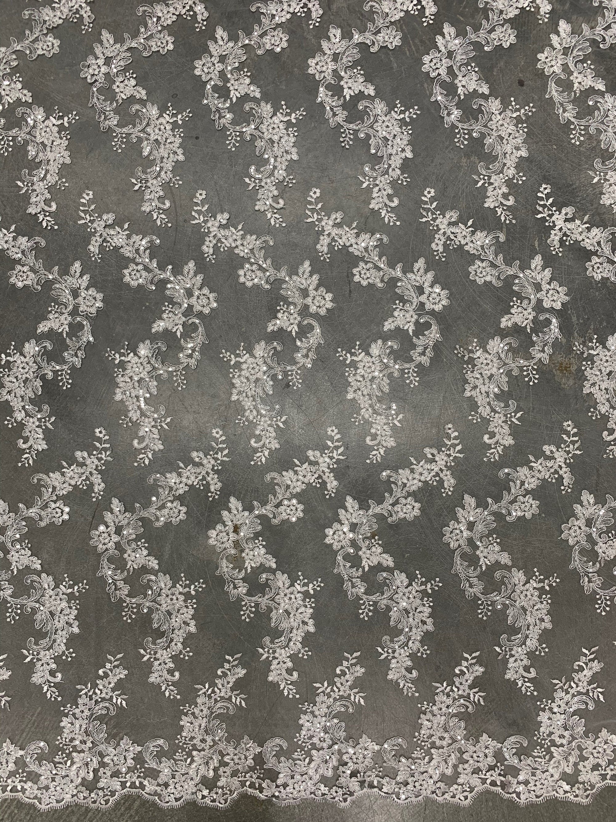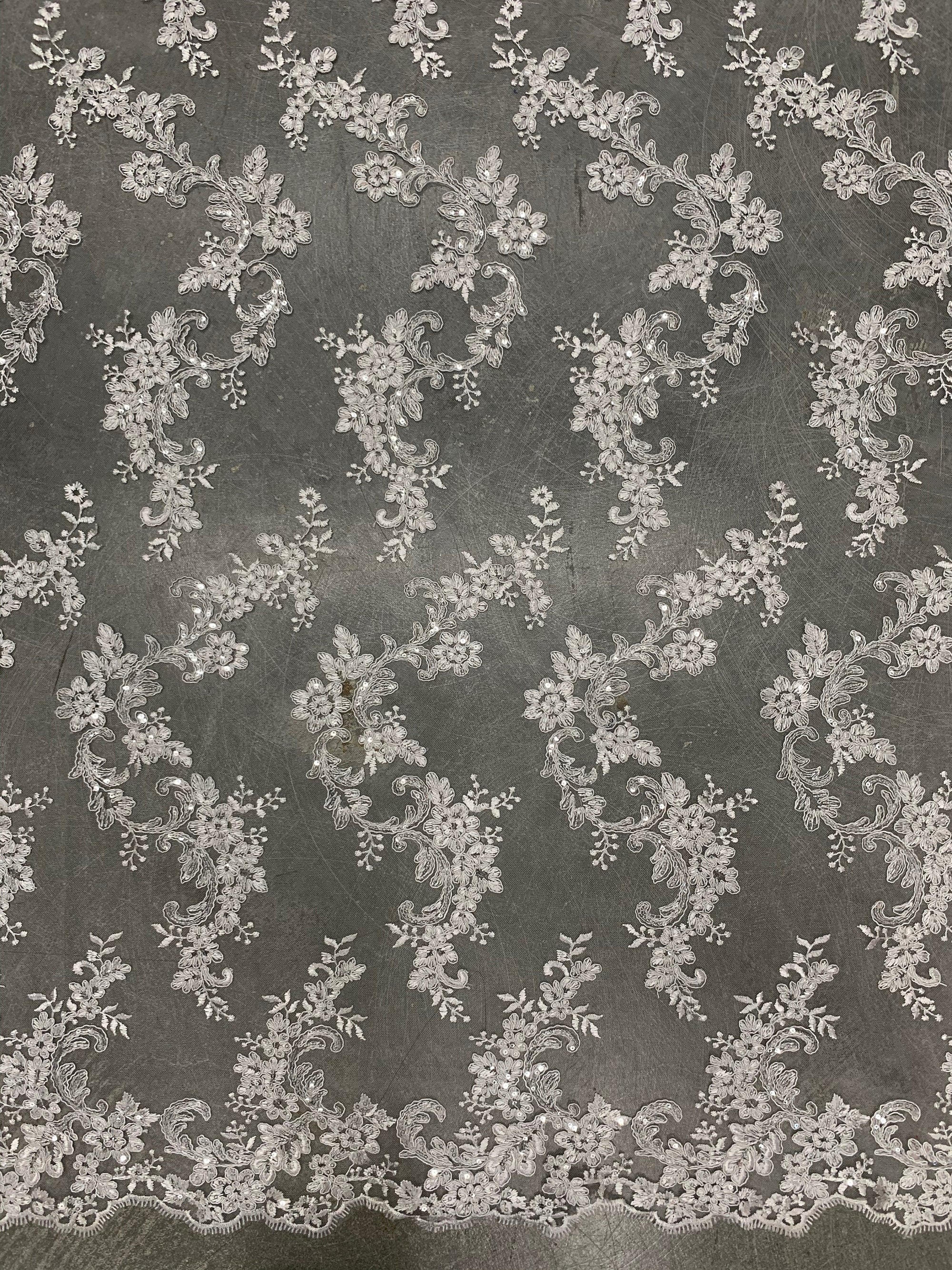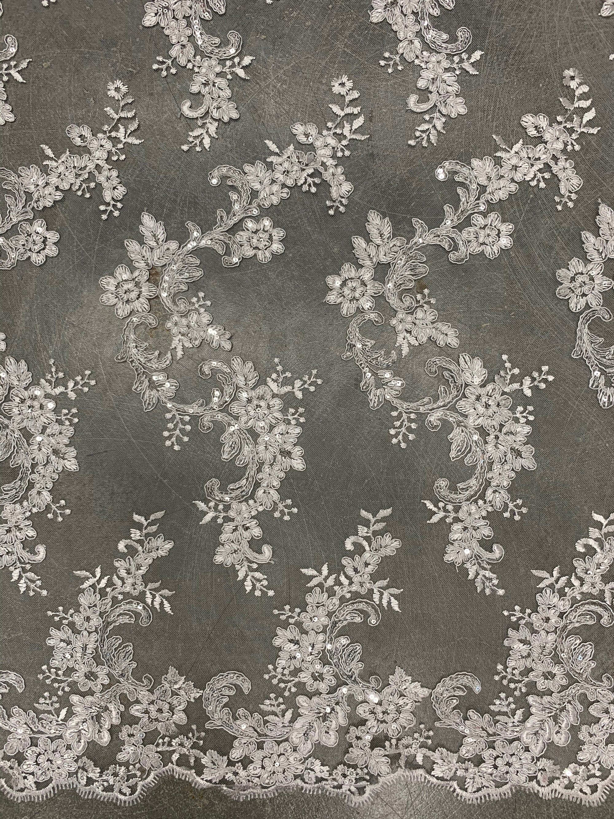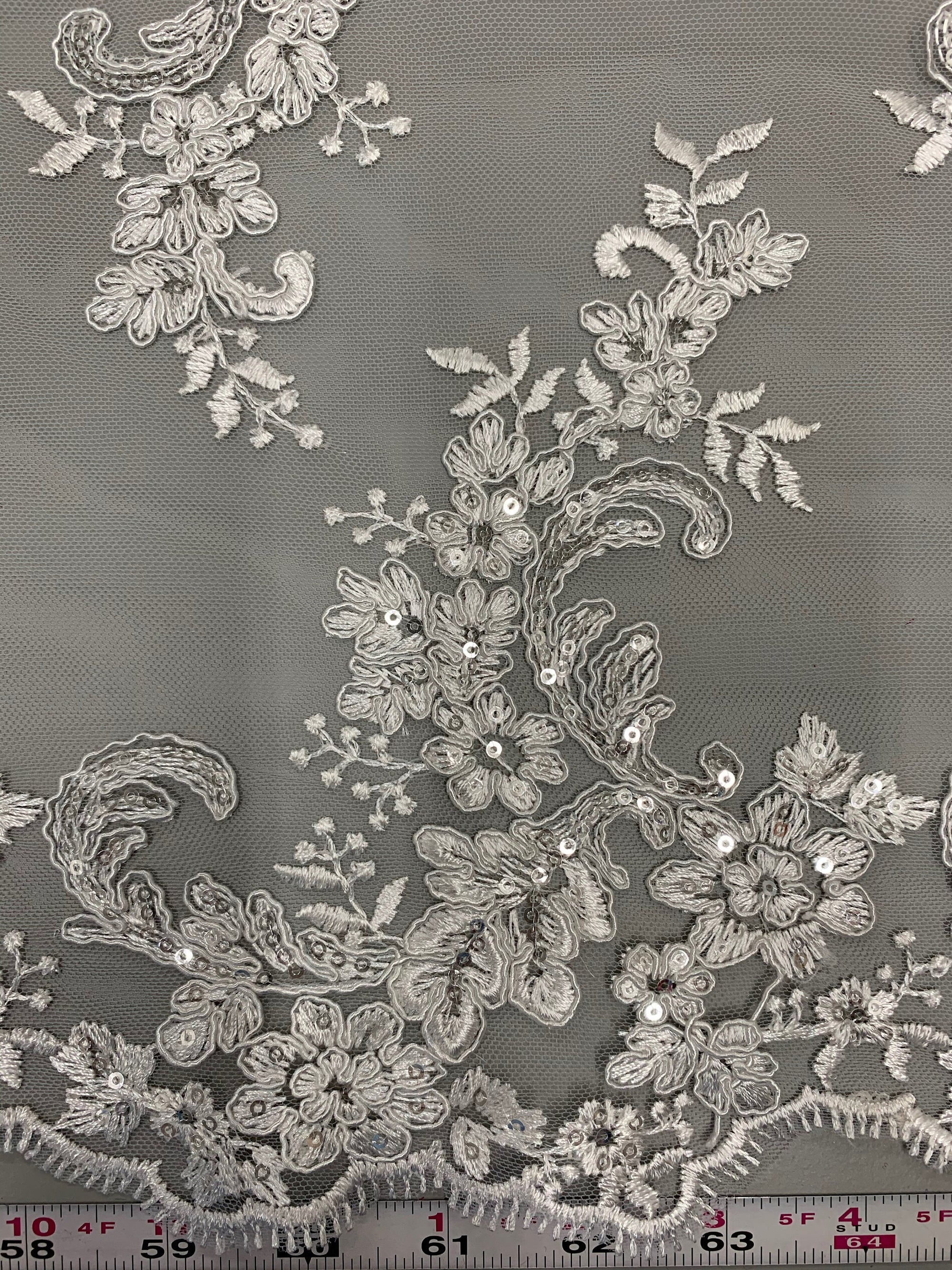 Cristina WHITE Polyester Floral Embroidery with Sequins on Mesh Lace Fabric by the Yard for Gown, Wedding, Bridesmaid, Prom - 10076