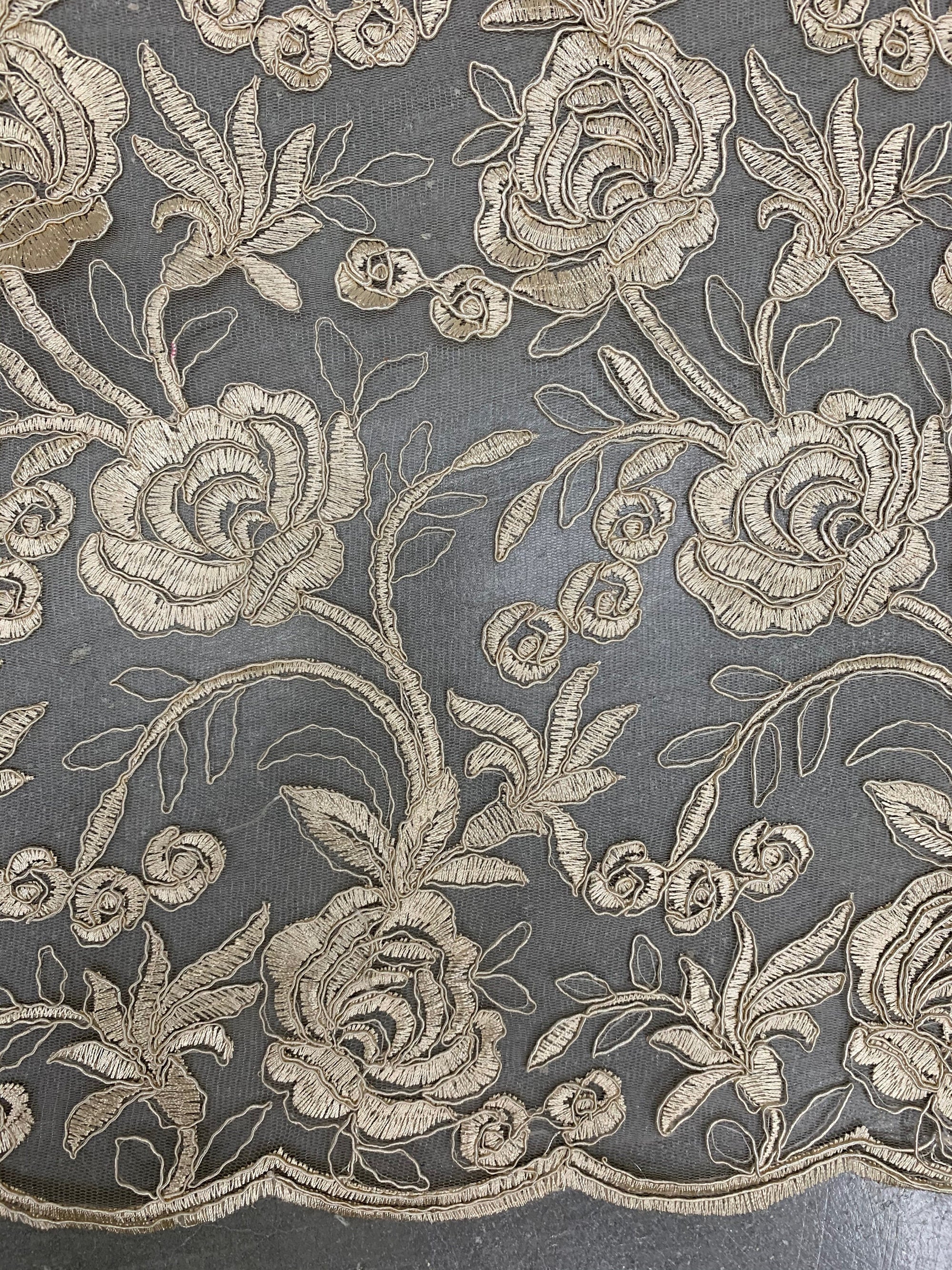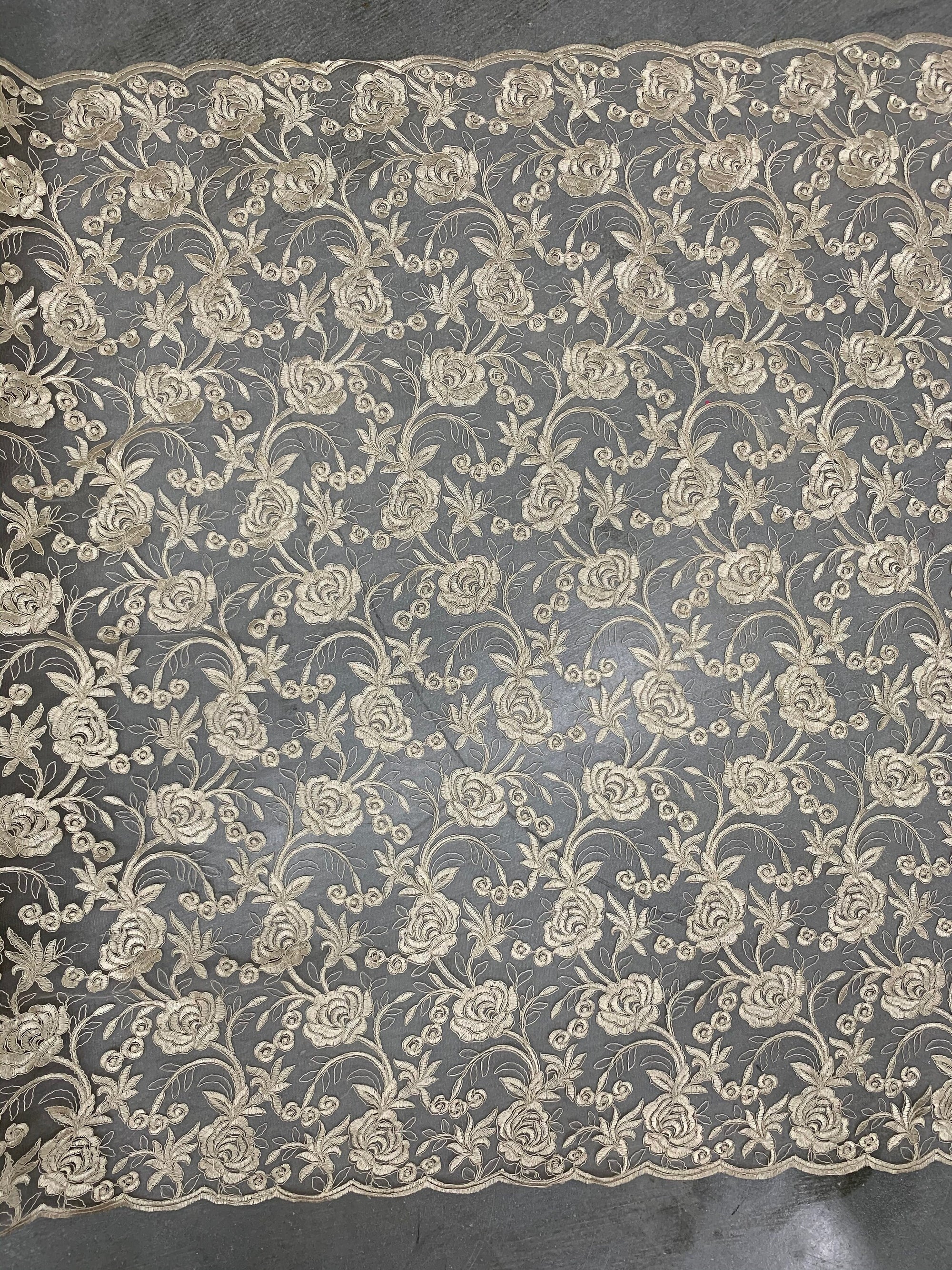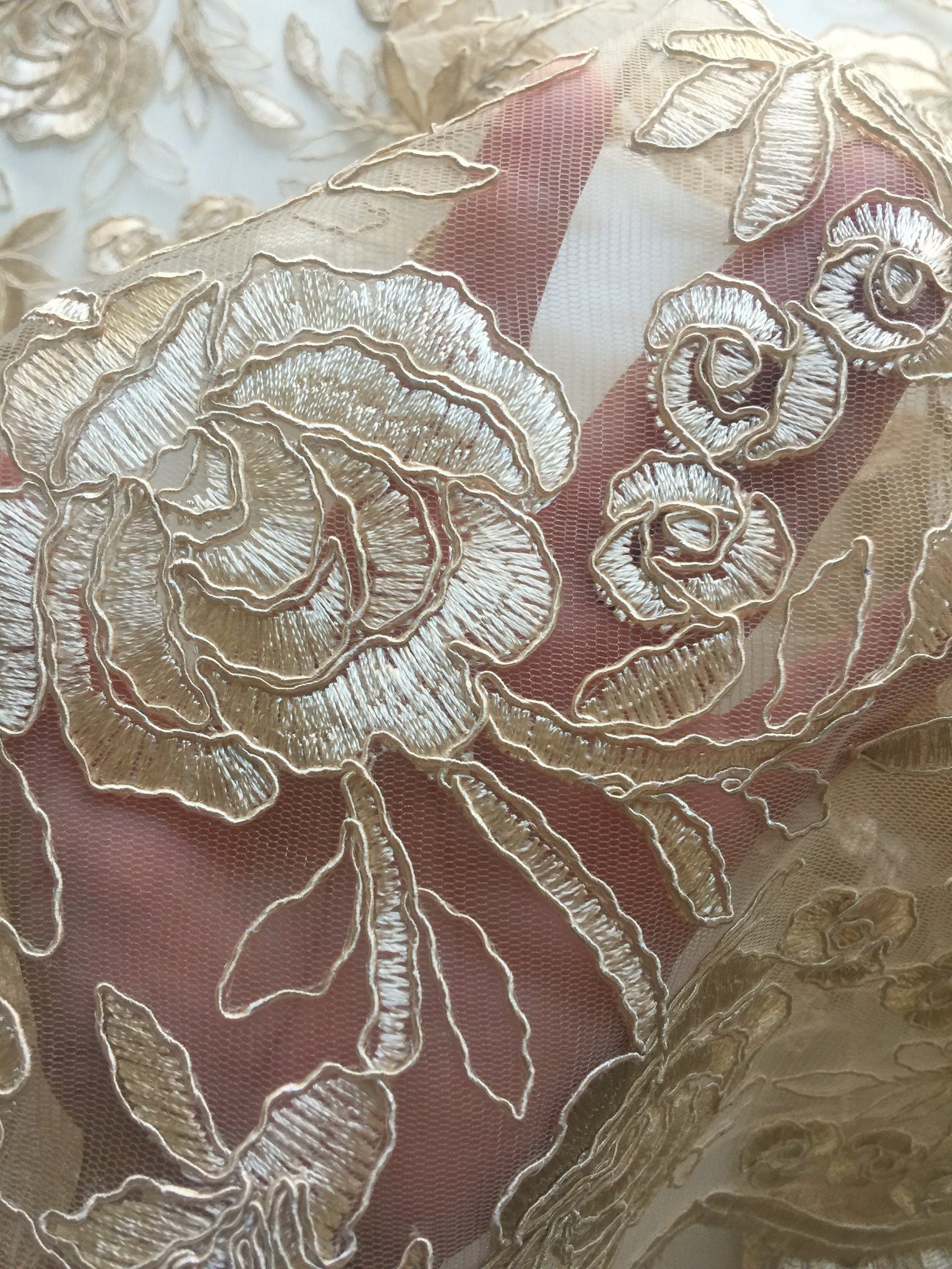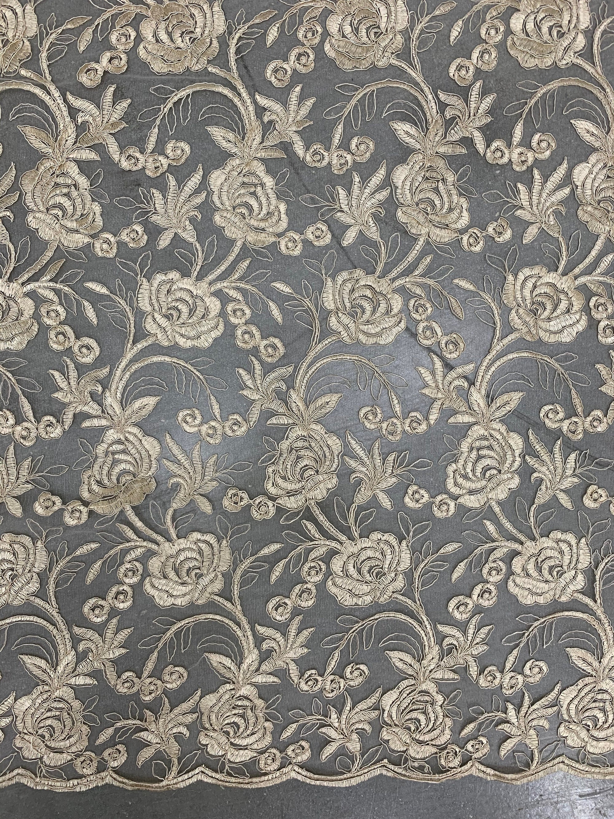 Dakota CHAMPAGNE Polyester Corded Floral Embroidery on Mesh Lace Fabric by the Yard - 10043