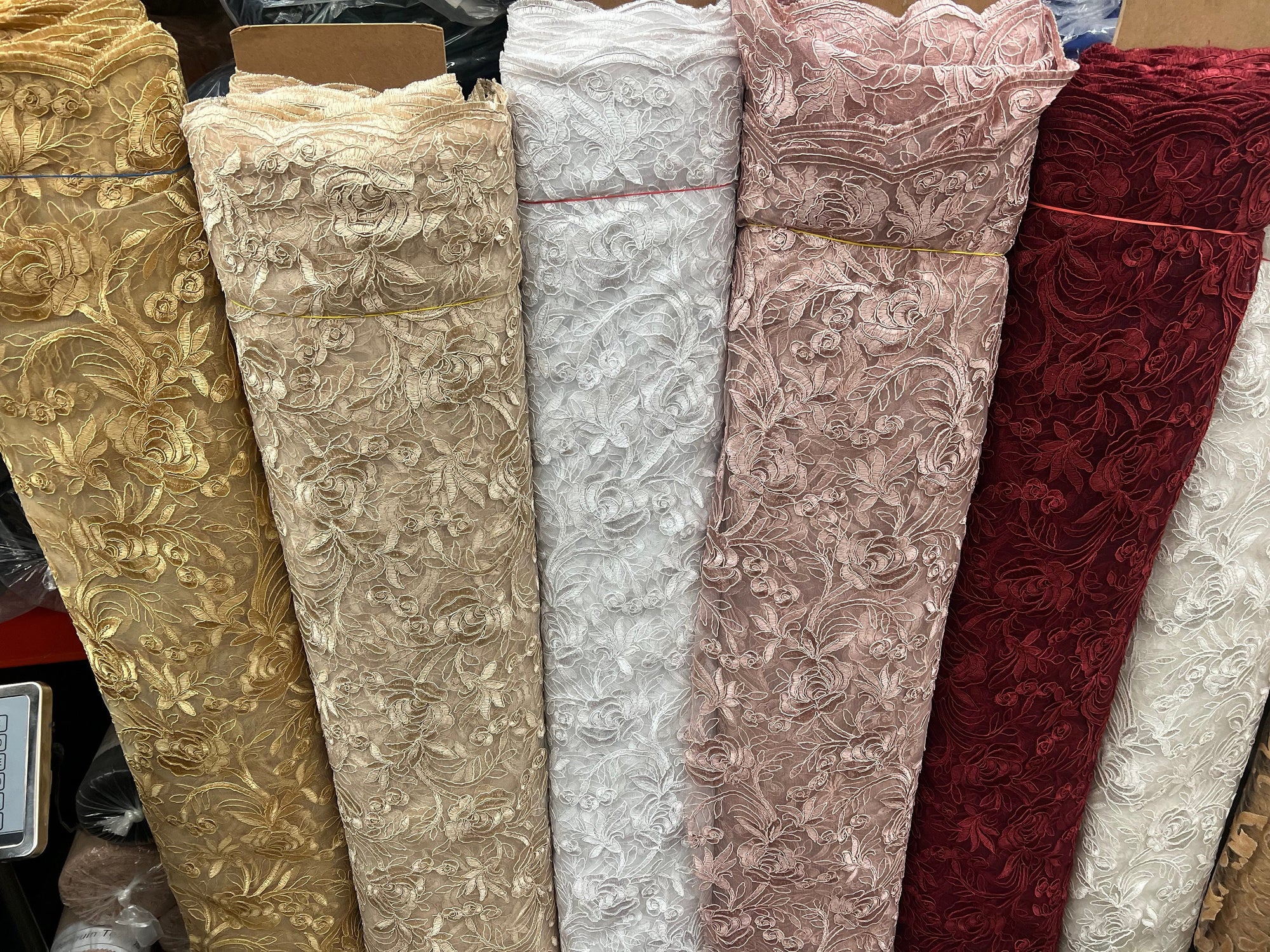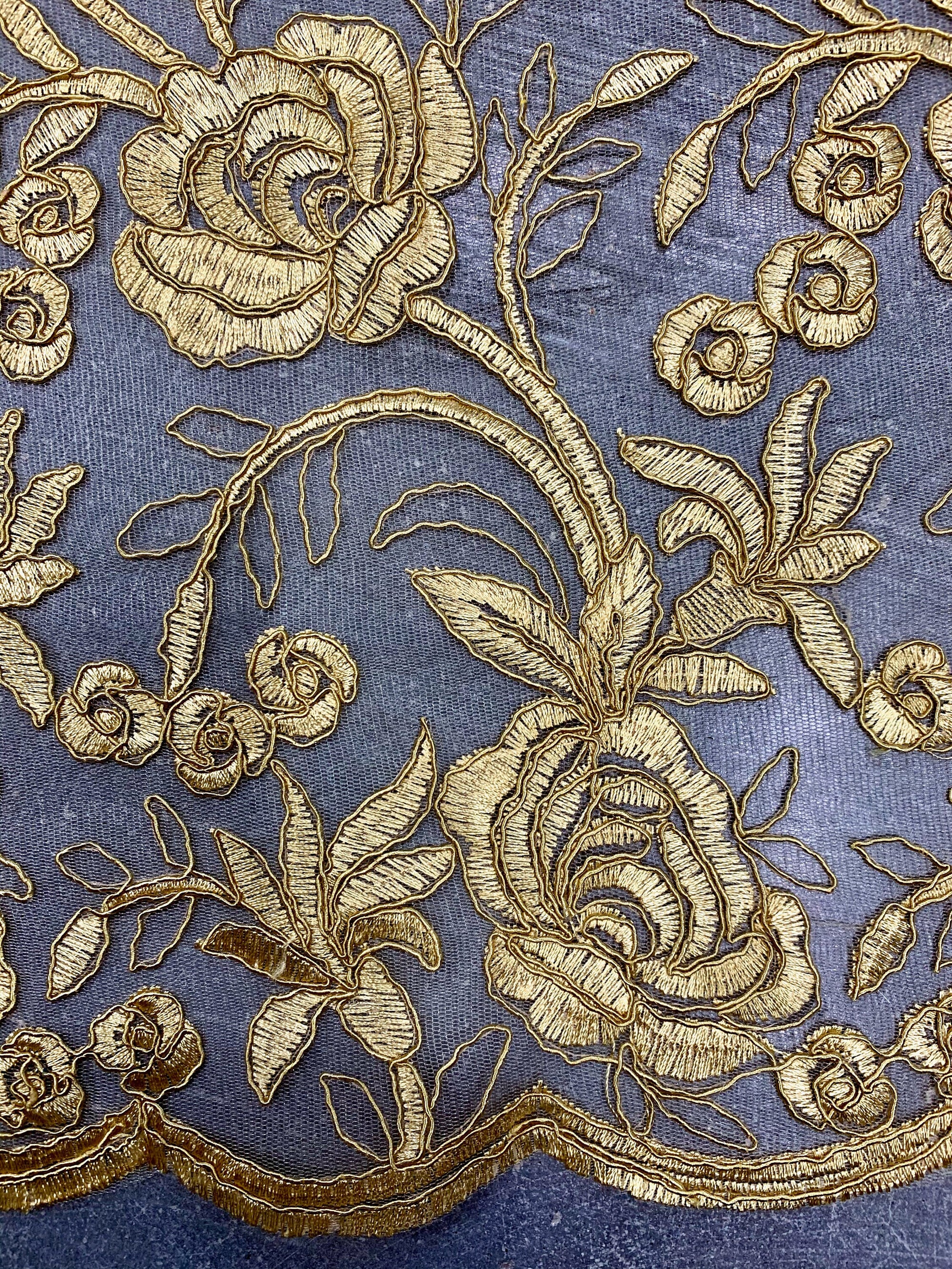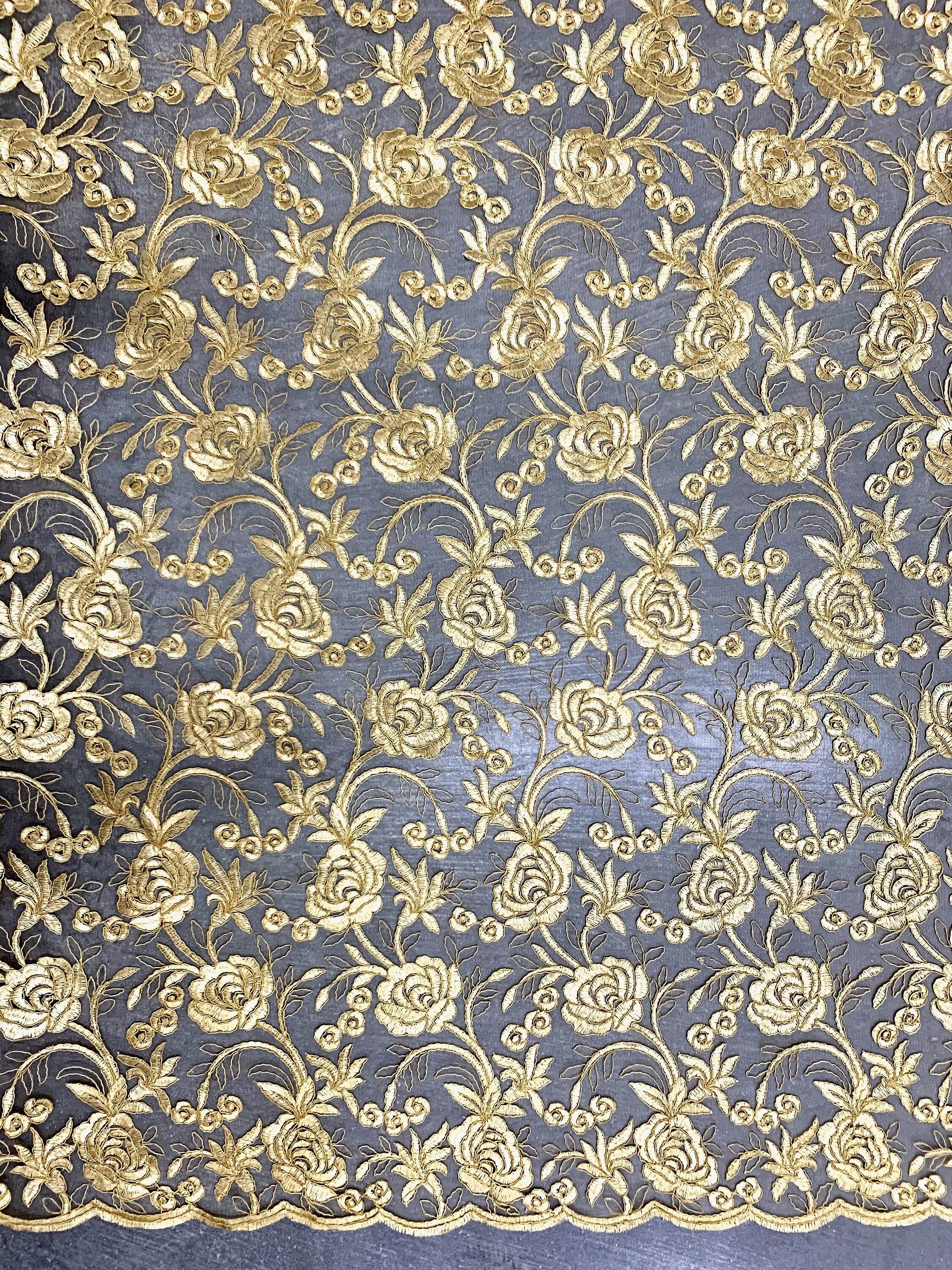 Dakota GOLD Polyester Corded Floral Embroidery on Mesh Lace Fabric by the Yard - 10043