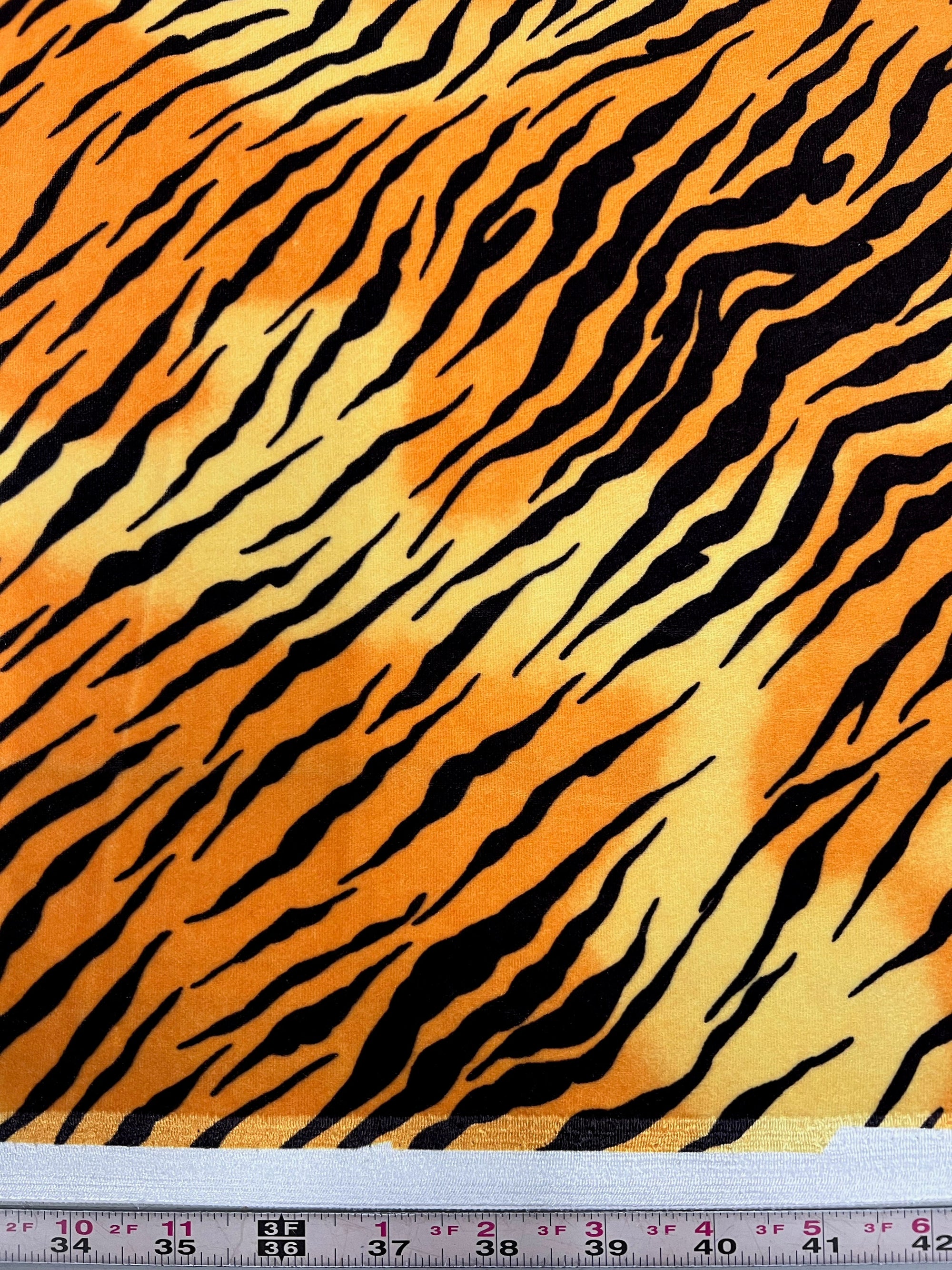 Dana ORANGE BLACK Tiger Pattern Polyester Stretch Velvet Fabric for Bows, Top Knots, Head Wraps, Scrunchies, Clothes, Costumes, Crafts - 10160