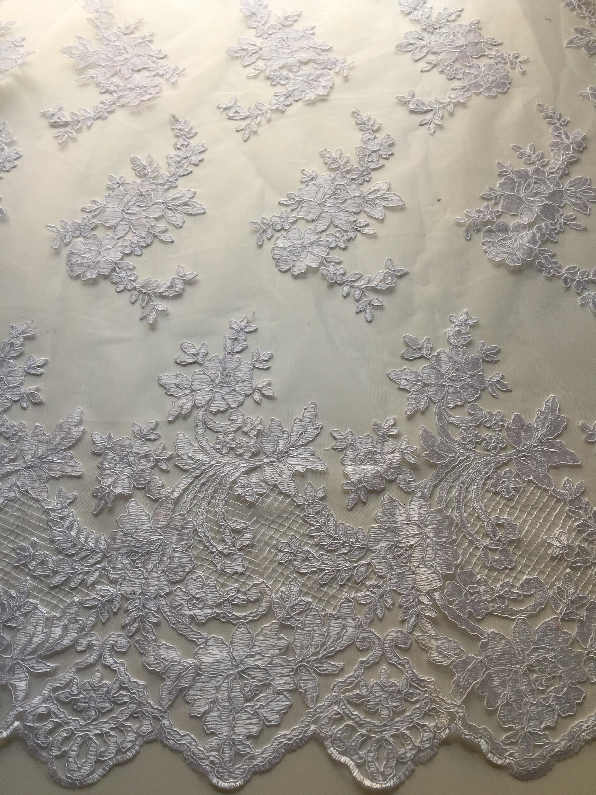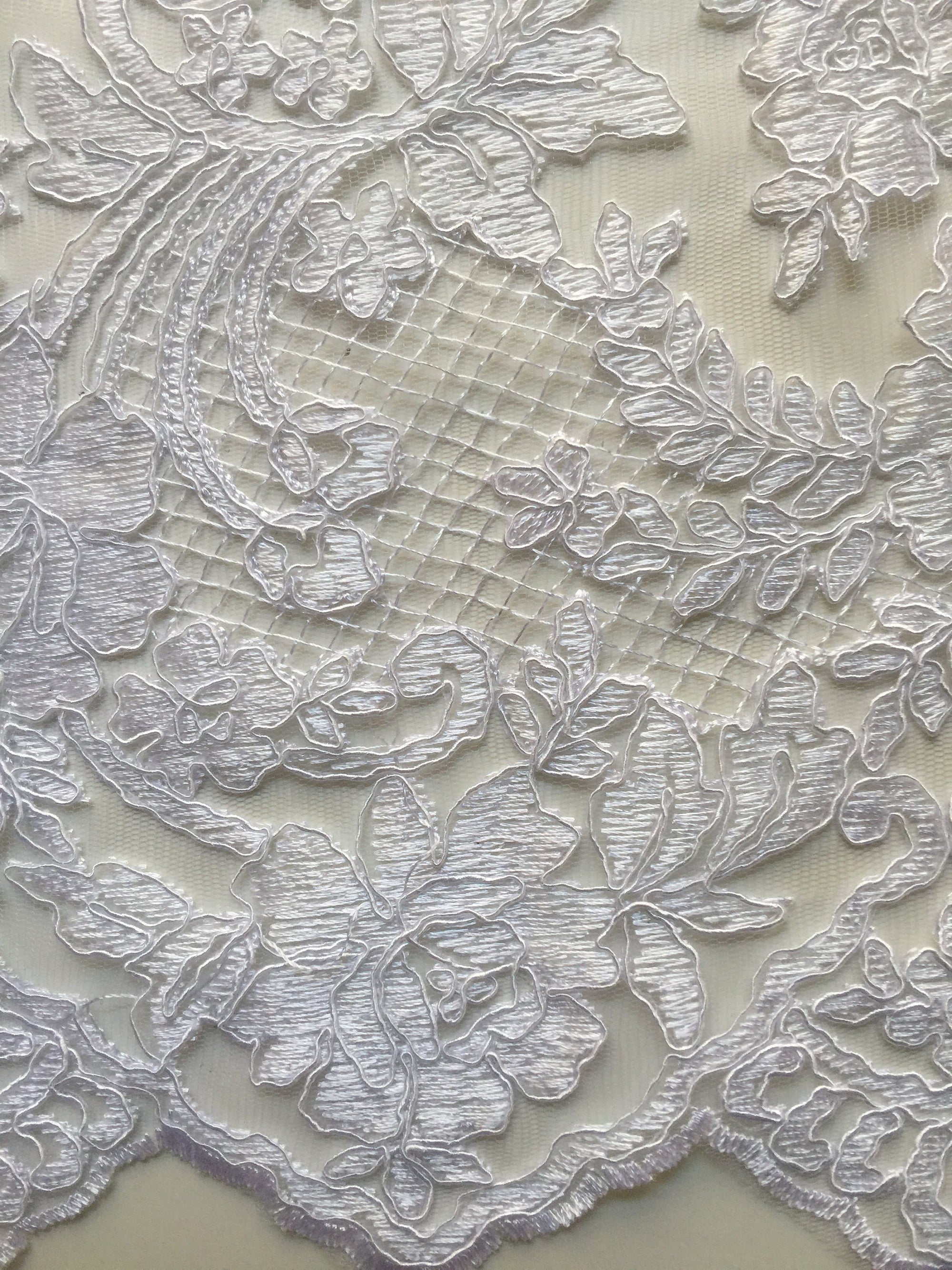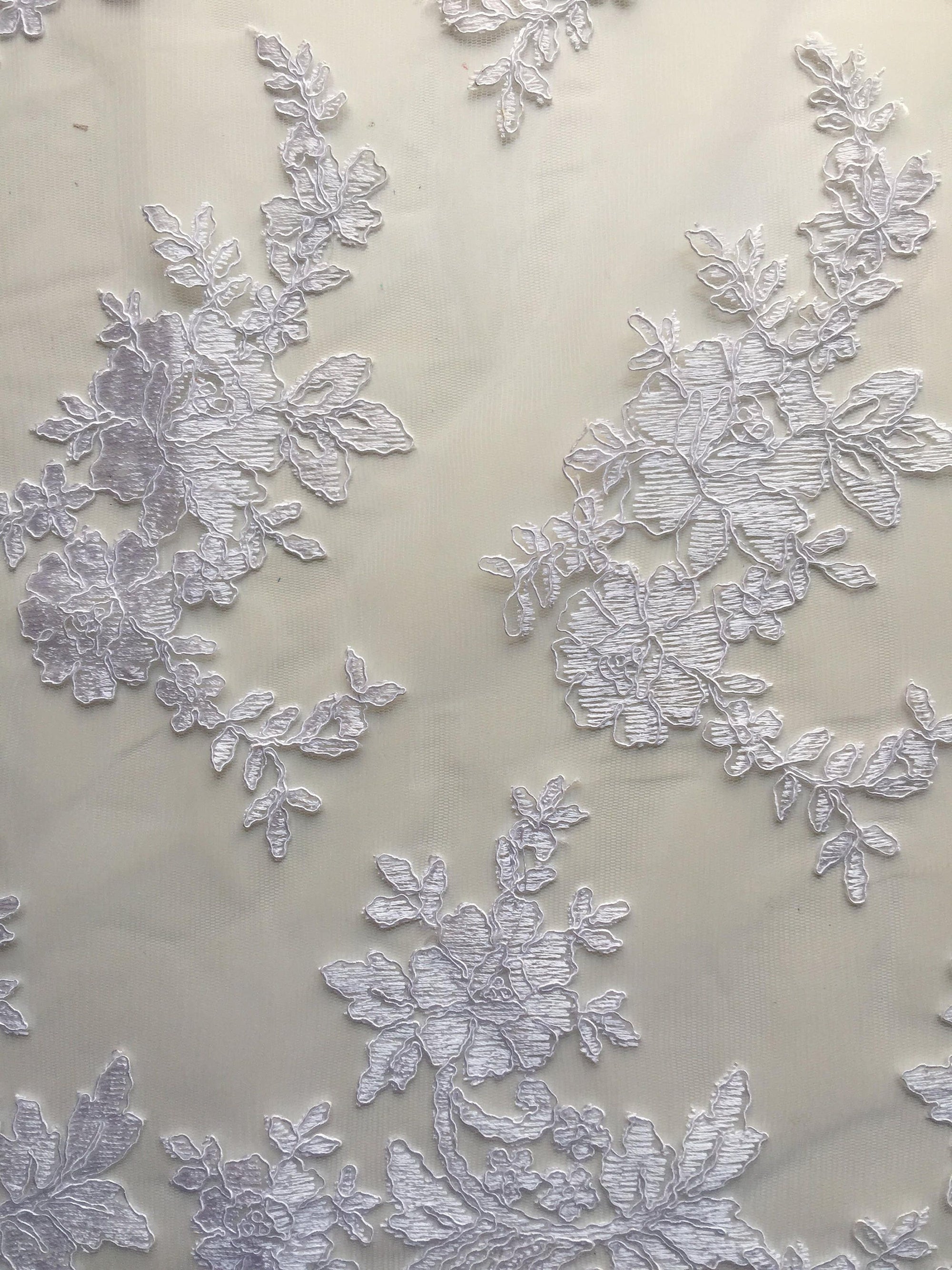 Diana WHITE Polyester Corded Floral Embroidery on Mesh Lace Fabric by the Yard - 10064