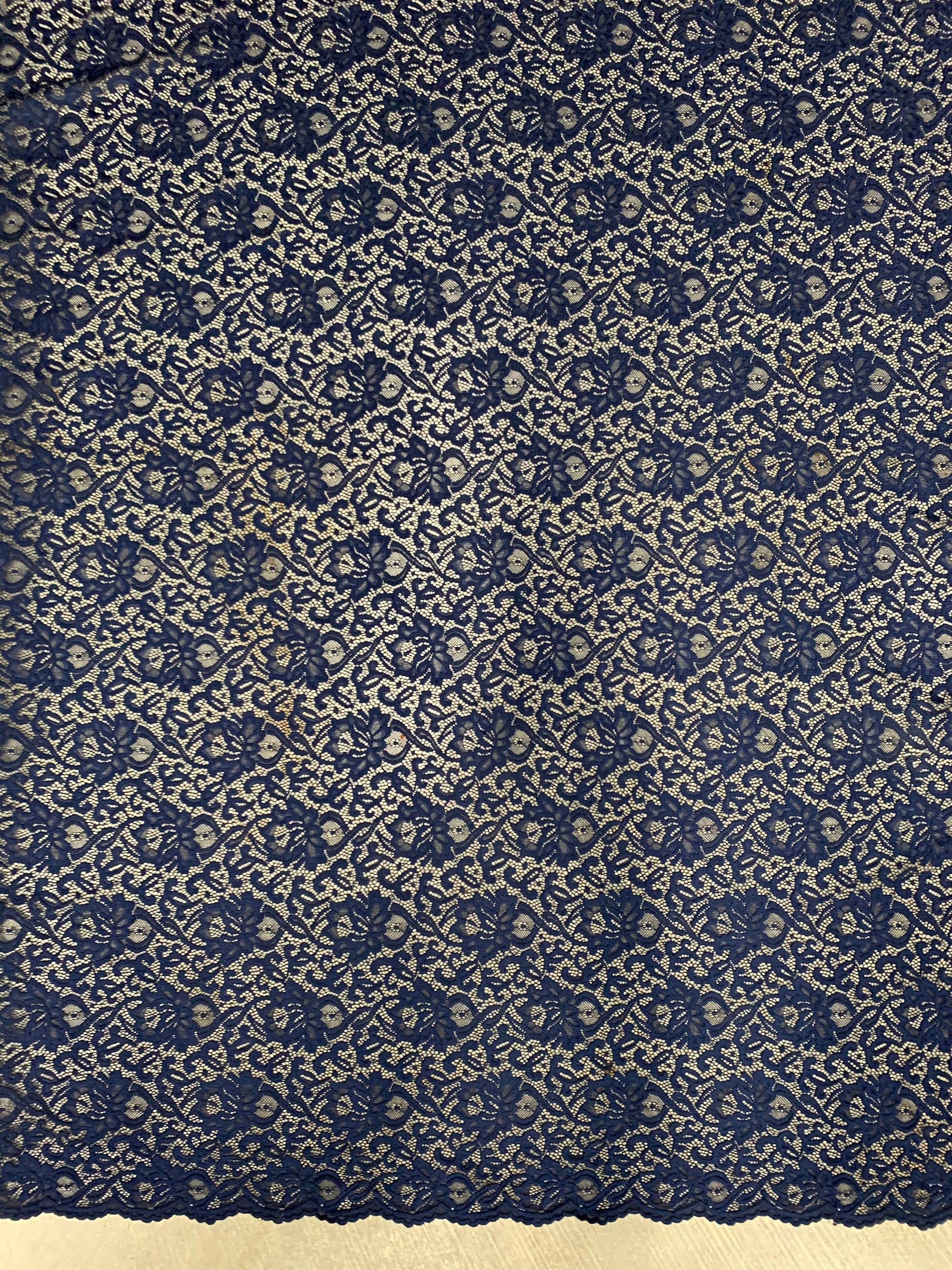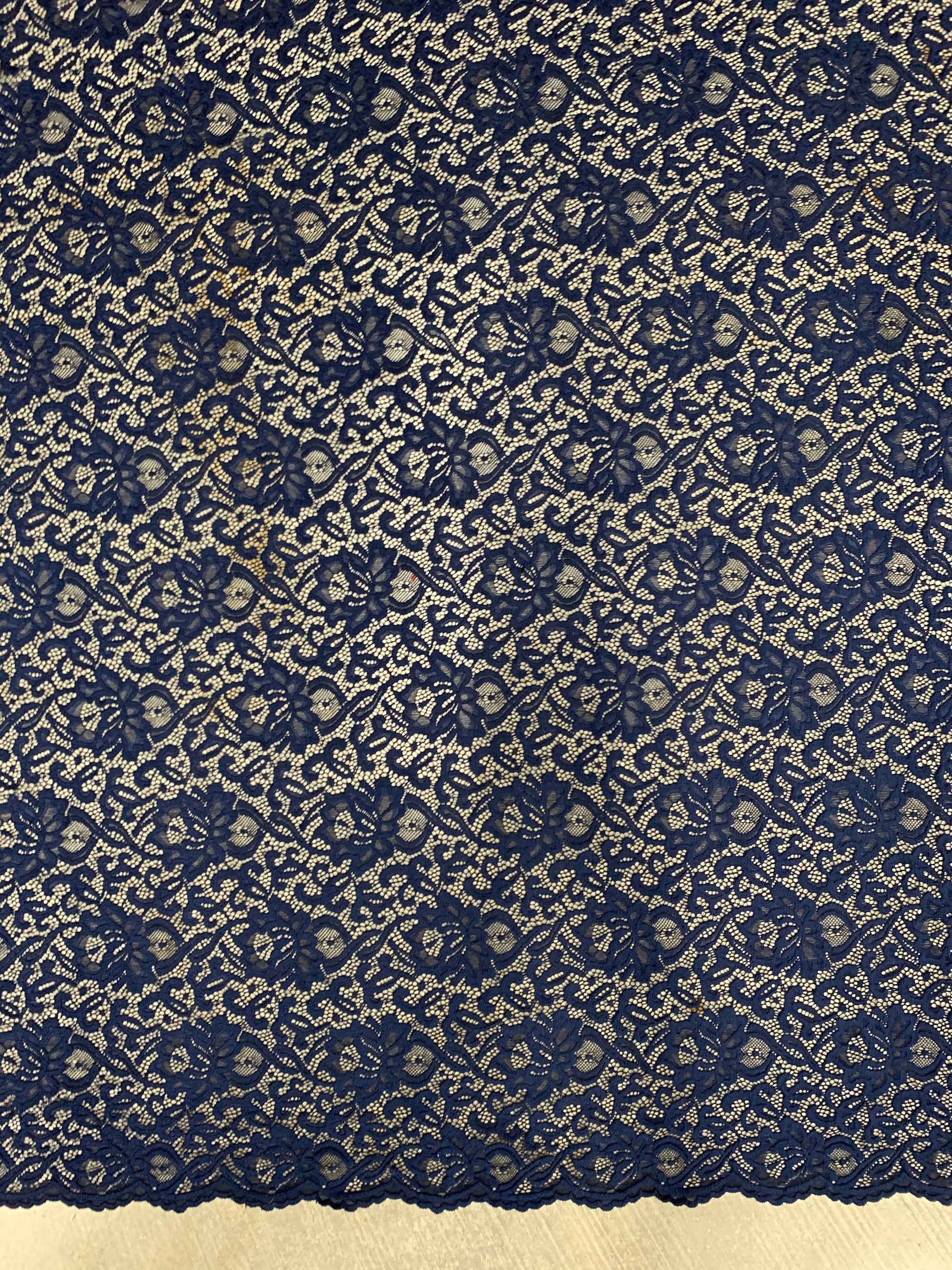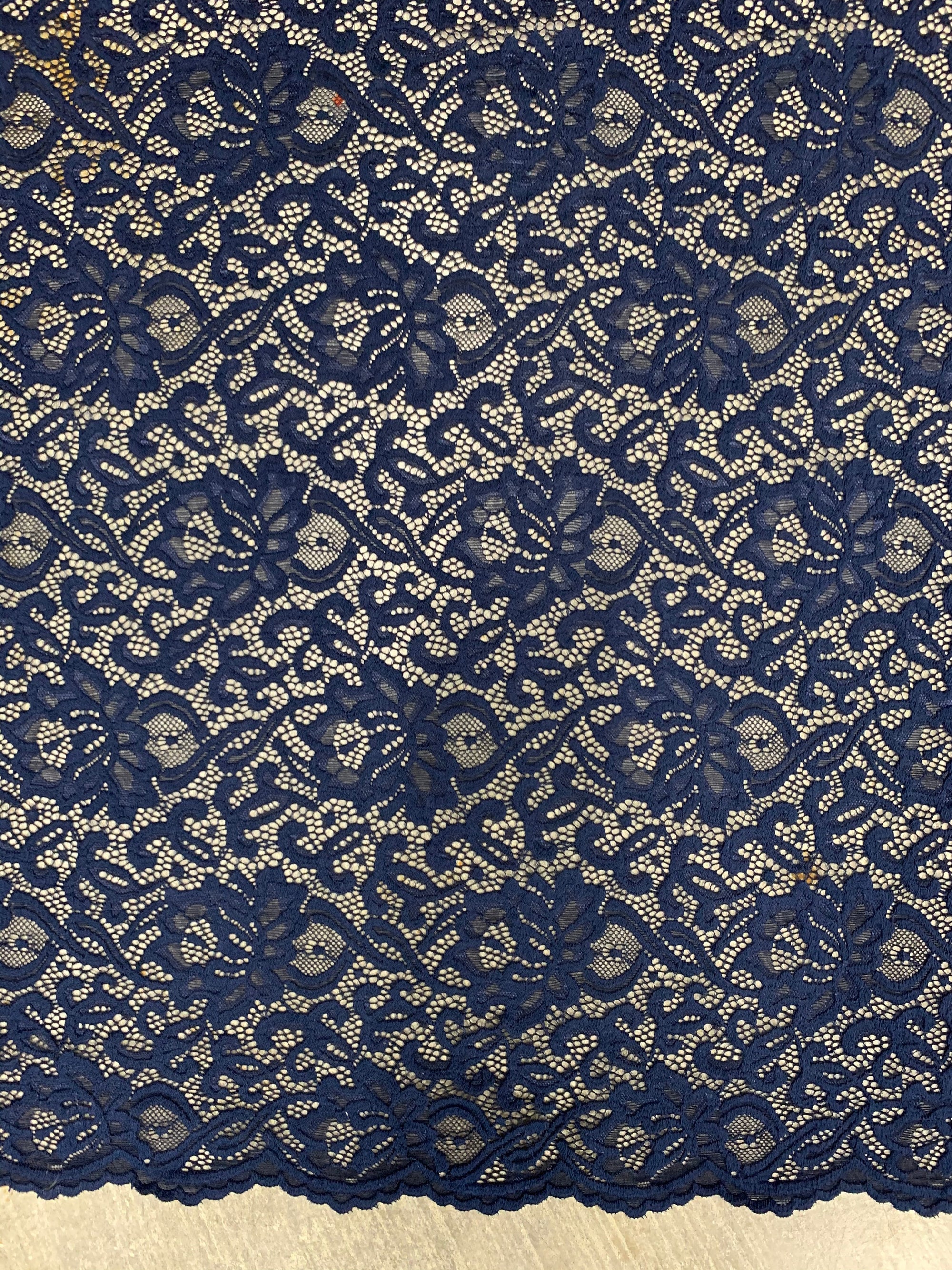 Elaine NAVY BLUE Floral Scalloped Nylon Spandex Stretch Lace Light Weight Fabric for Clothes, Lingerie, Costumes, Decorations, Crafts