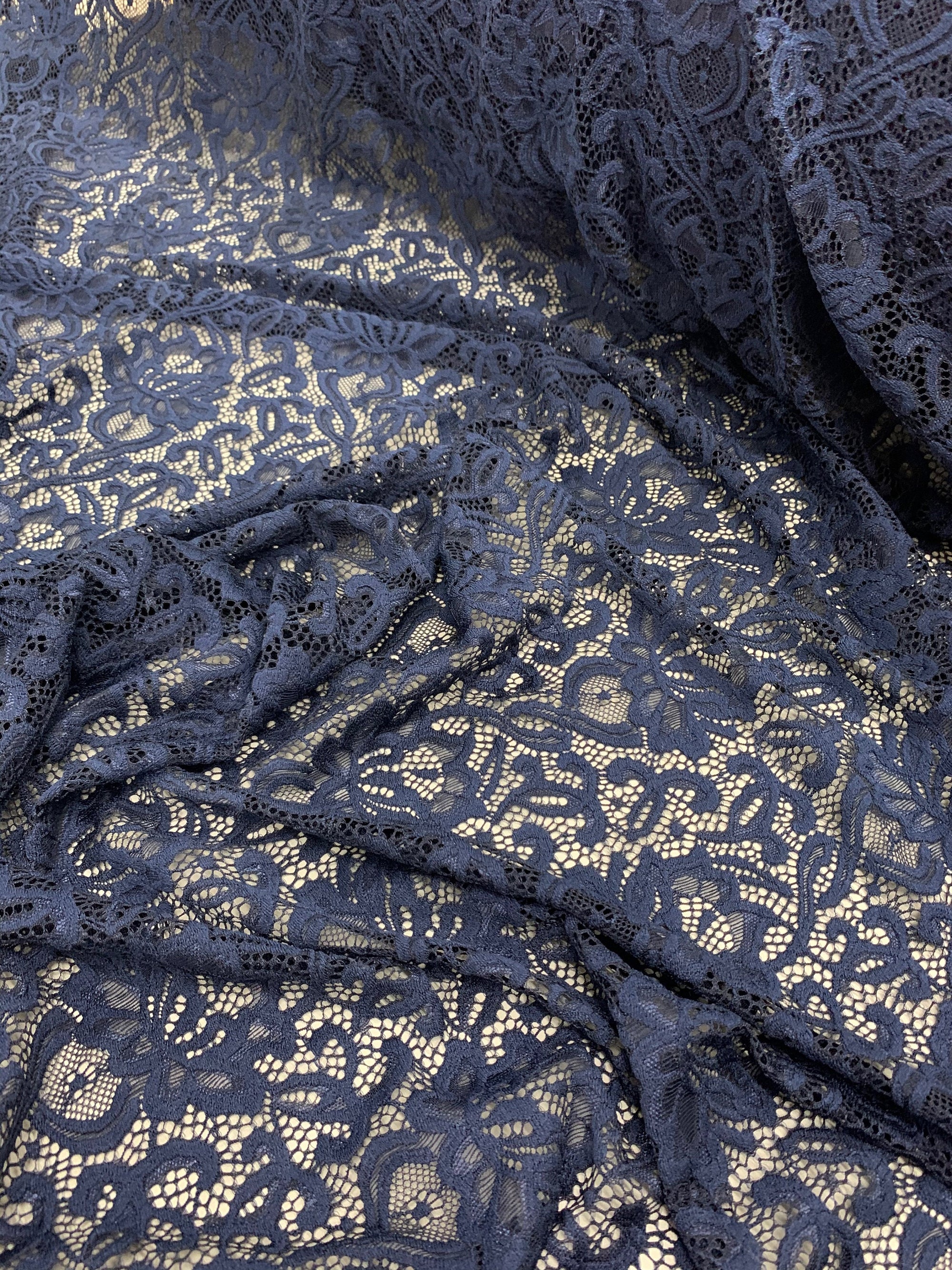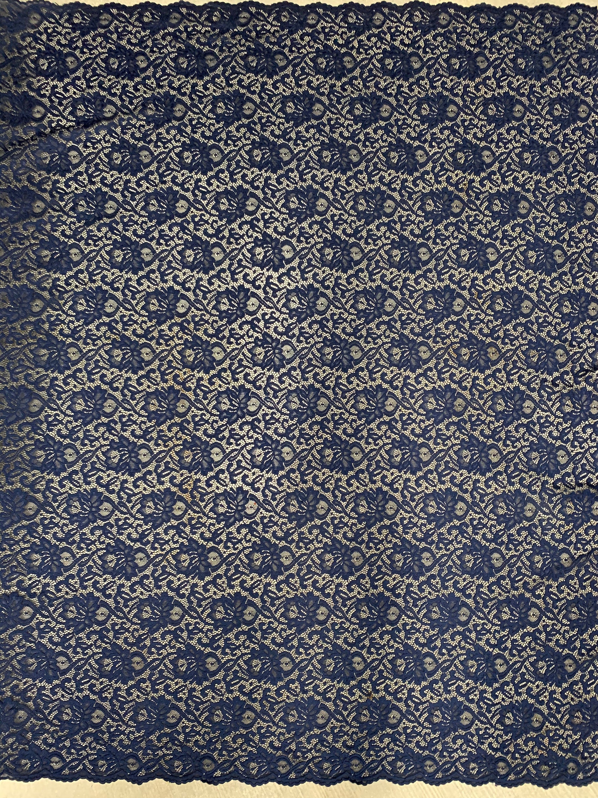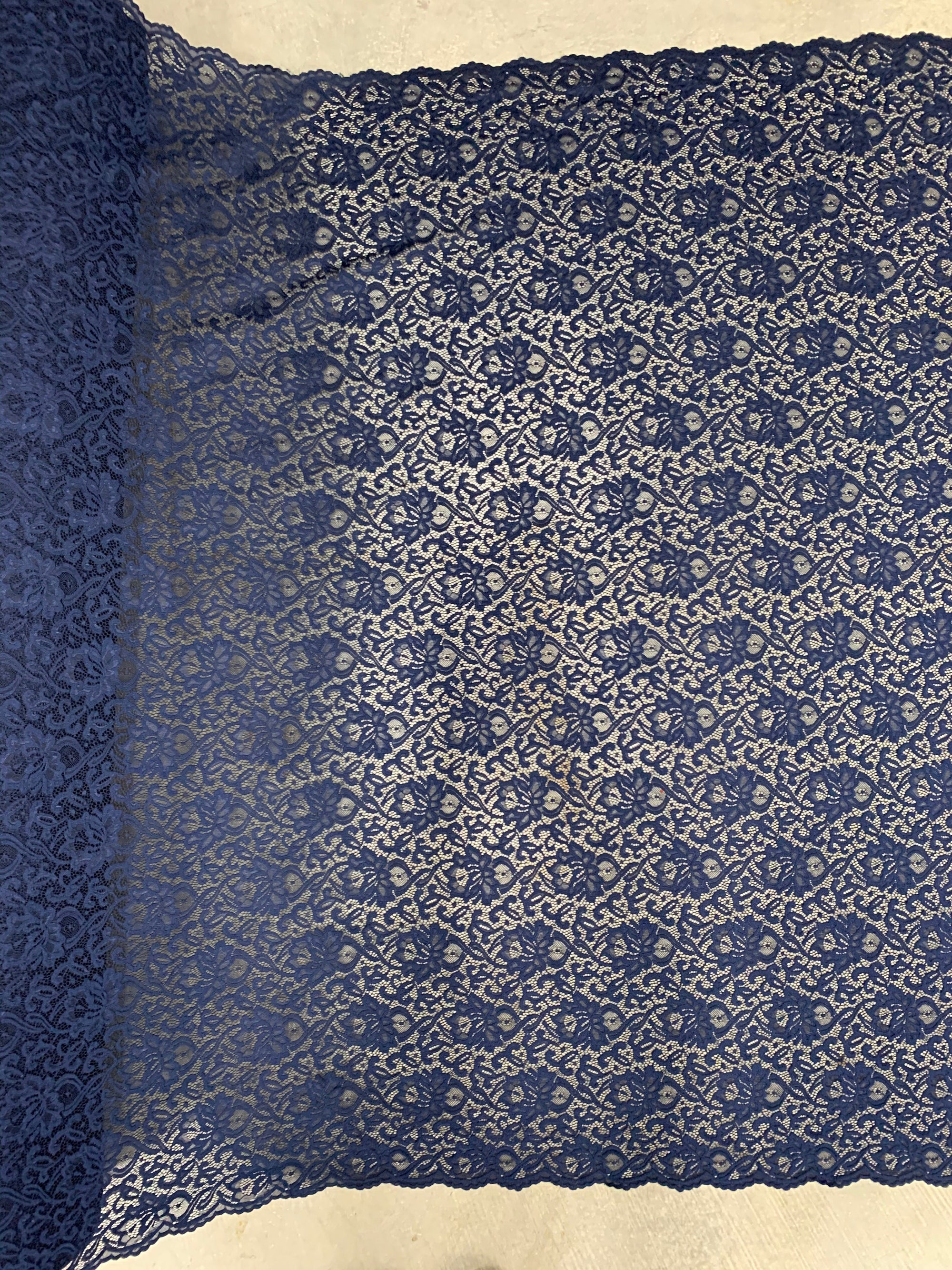 Elaine NAVY BLUE Floral Scalloped Nylon Spandex Stretch Lace Light Weight Fabric for Clothes, Lingerie, Costumes, Decorations, Crafts