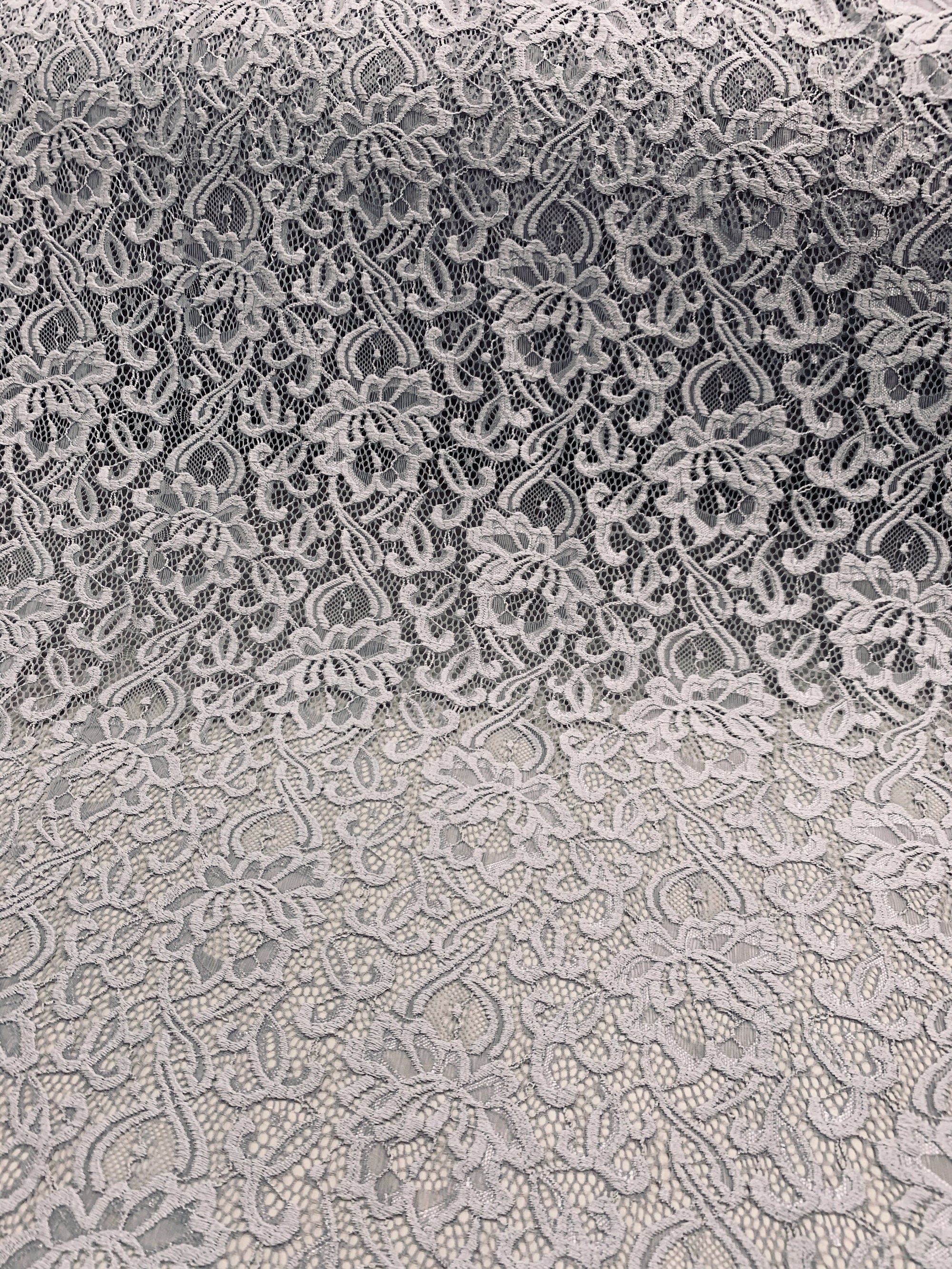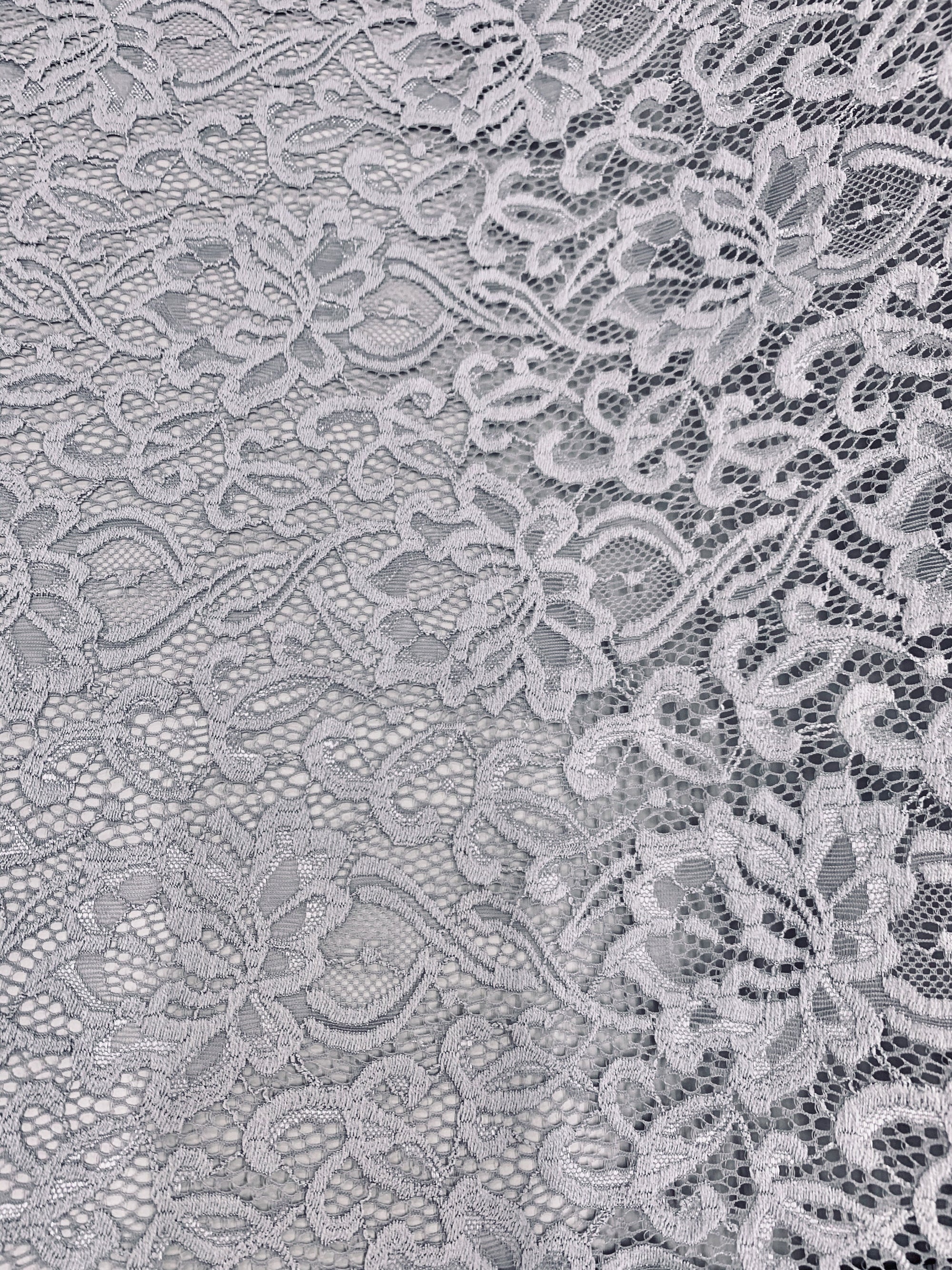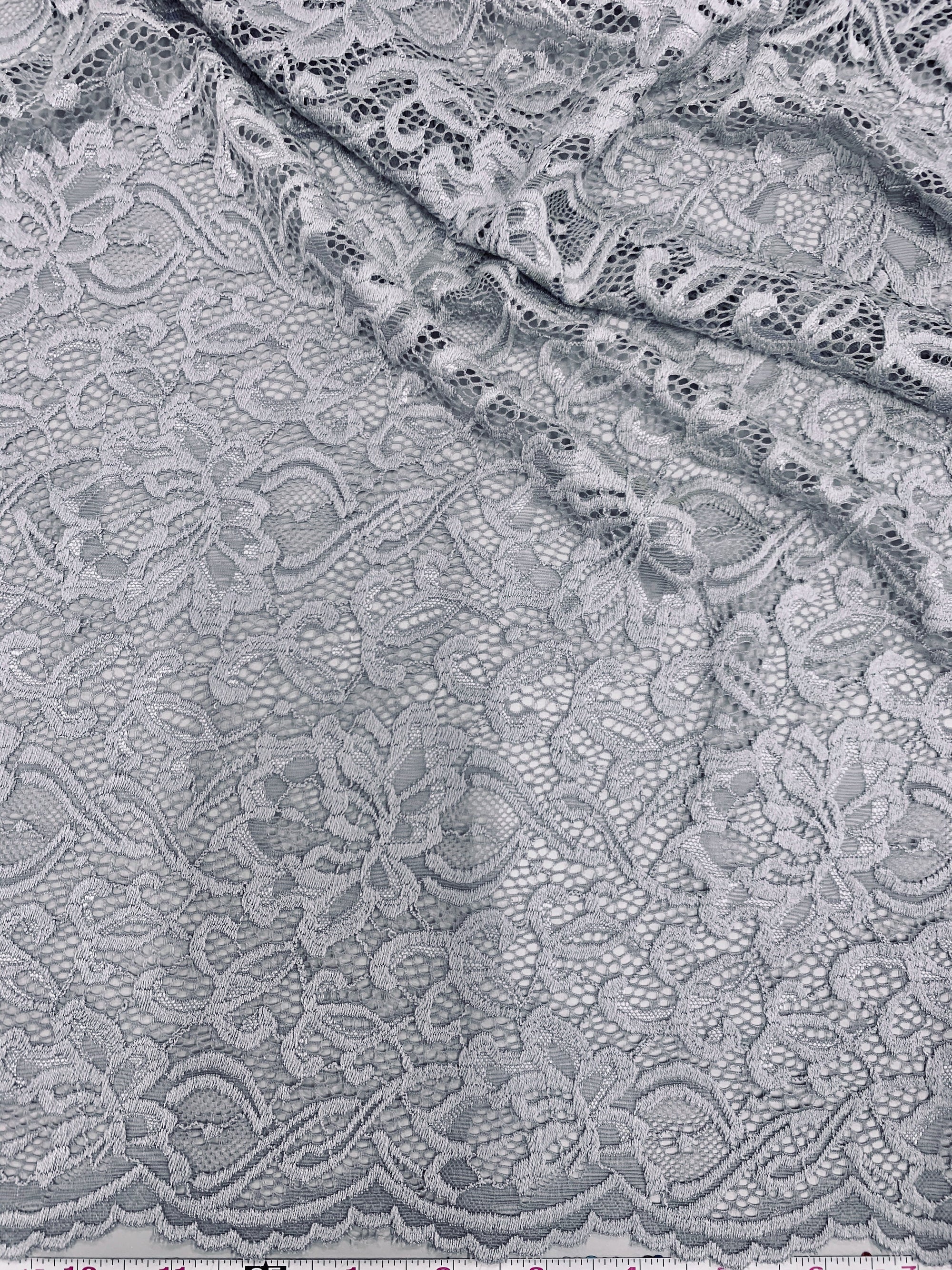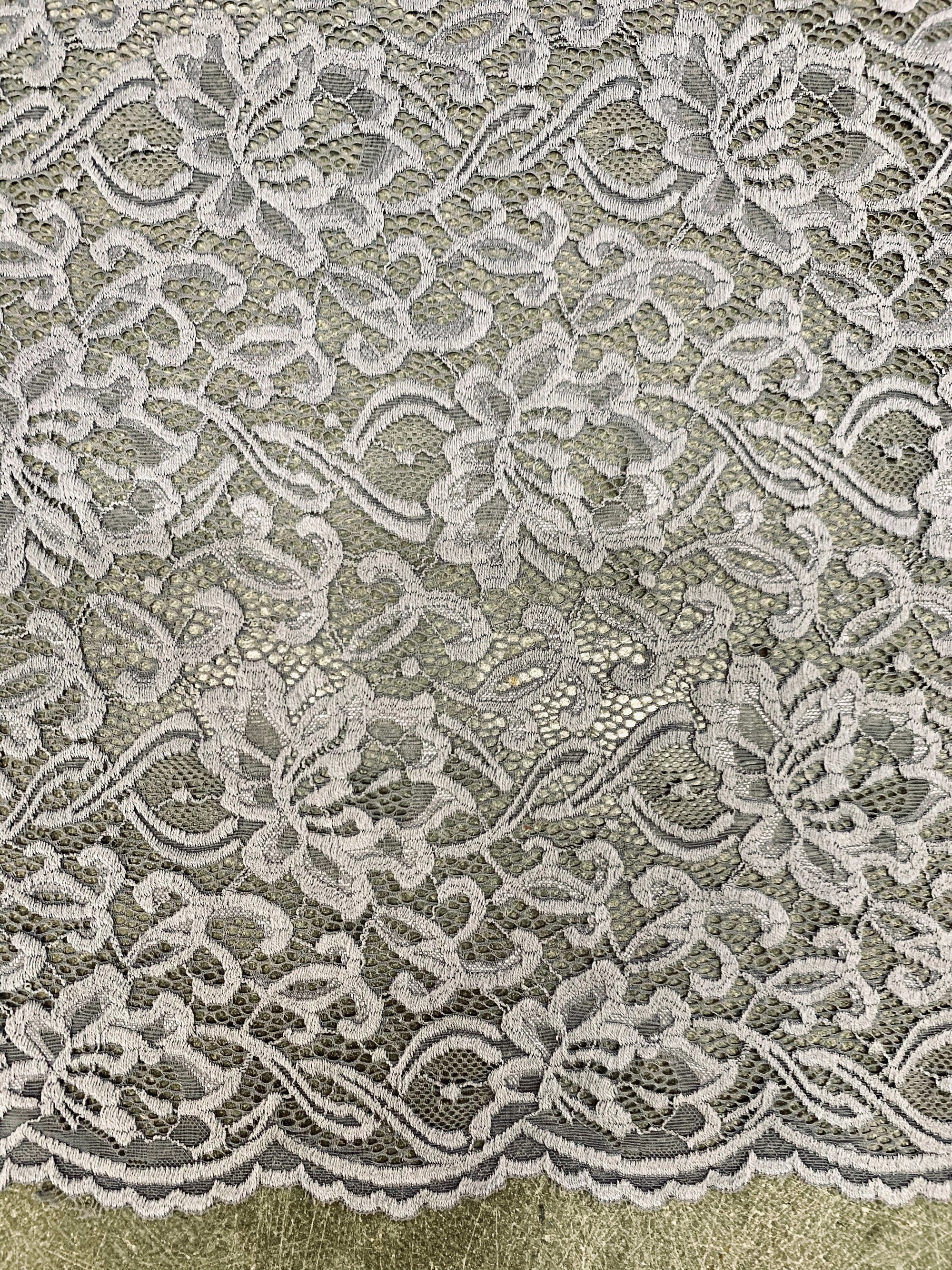 Elaine SILVER GREY Floral Scalloped Nylon Spandex Stretch Lace Light Weight Fabric for Clothes, Lingerie, Costumes, Decorations, Crafts - 10195