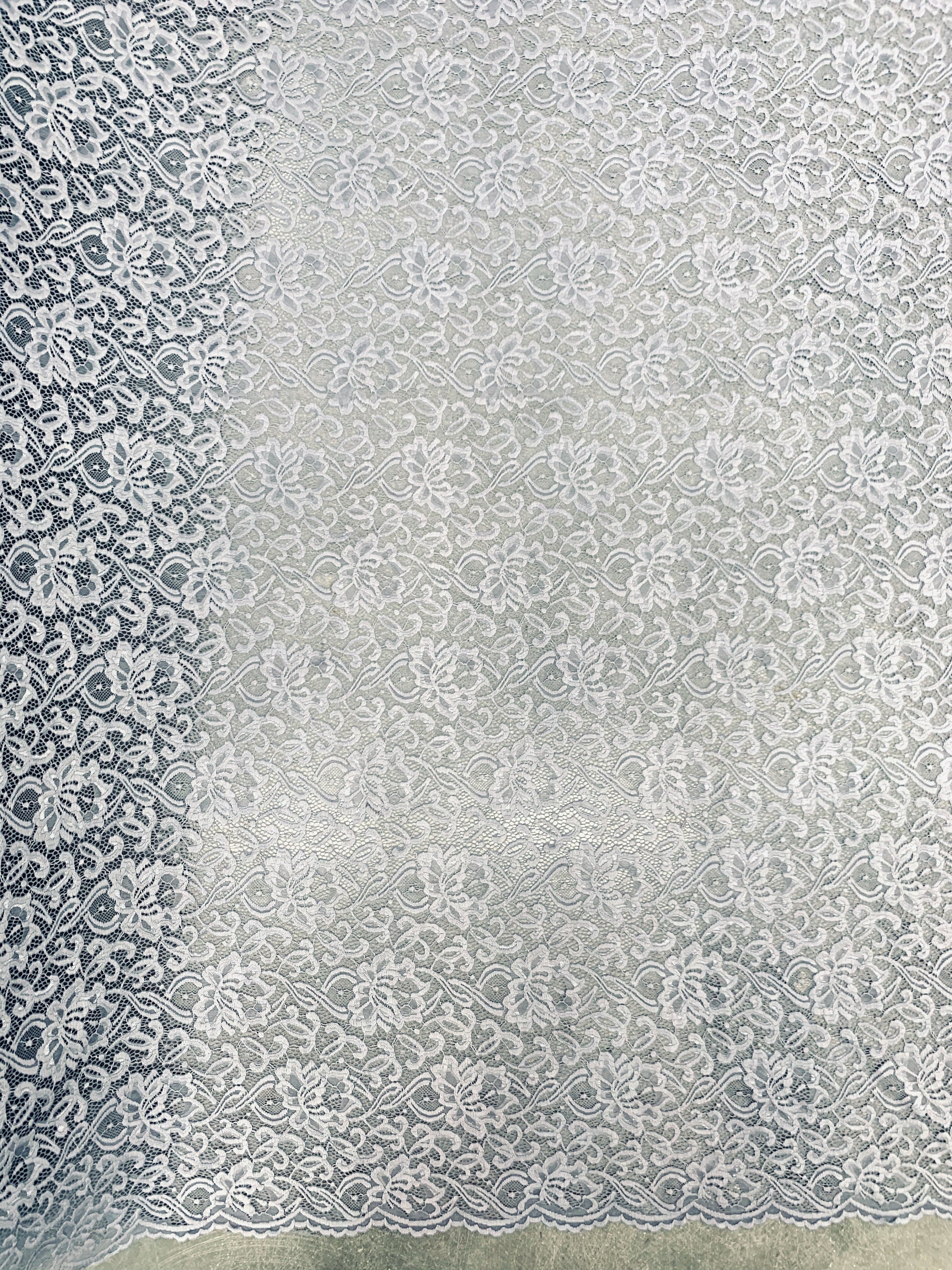 Elaine SILVER GREY Floral Scalloped Nylon Spandex Stretch Lace Light Weight Fabric for Clothes, Lingerie, Costumes, Decorations, Crafts